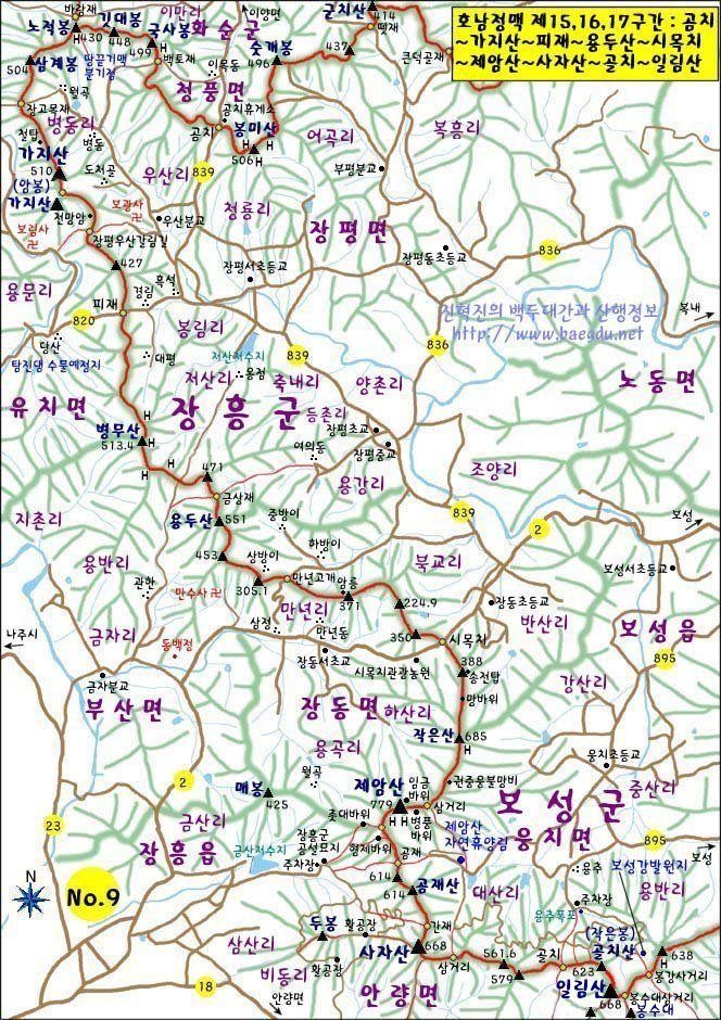 북동쪽 경계능선을 넘어 장흥(장동면)에서 끝이난다. 그런데 지난구간인 화순군은 산길을 마치 庶子
