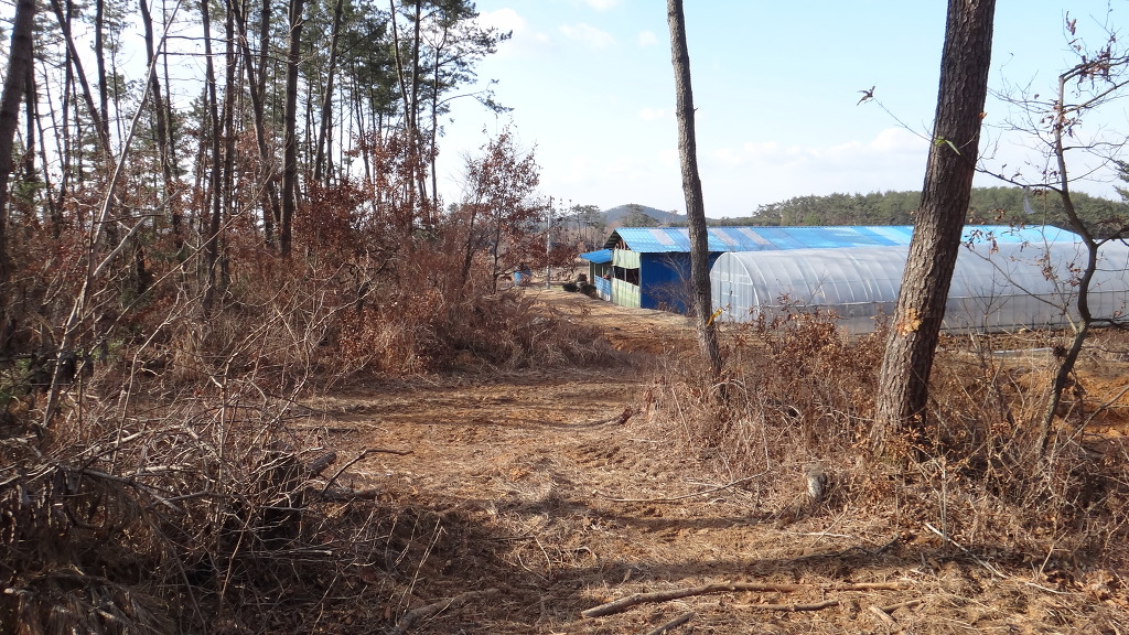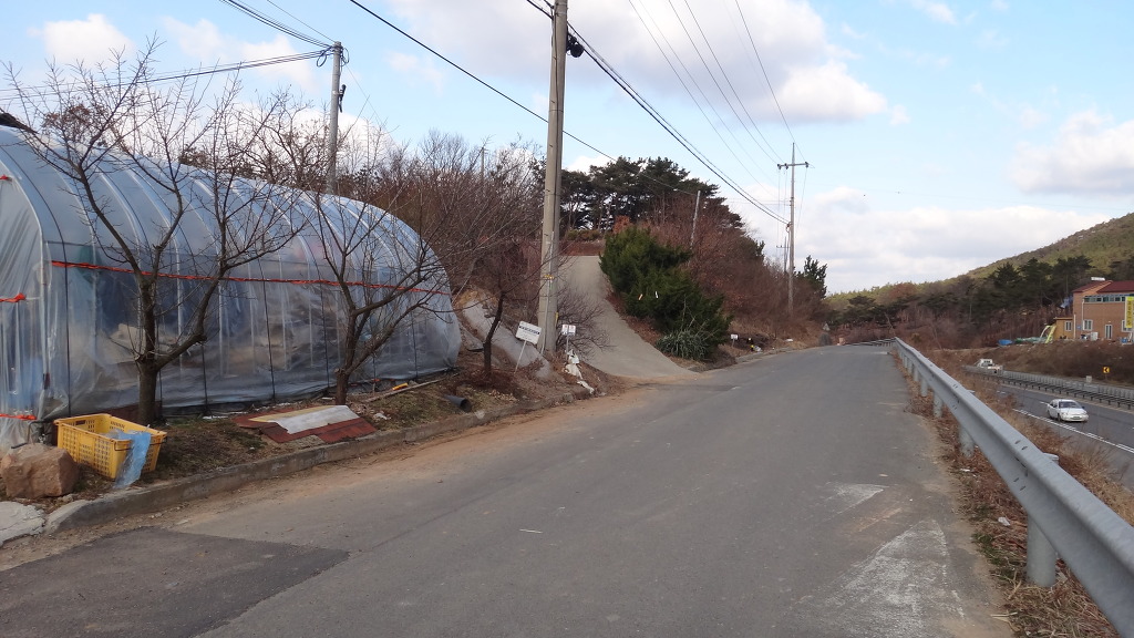 송림씽크 공장을 지나서 비닐하우스를 끼고 좌측 콘크리트 임도로 올라선다.