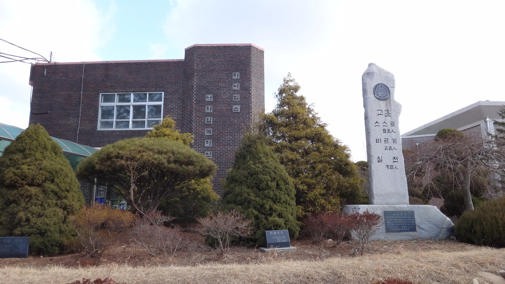 미션계의 학교인 모양이다. 팔봉중학교 운동장을 거쳐서 이 건물을 끼고 우측으로 돈다.