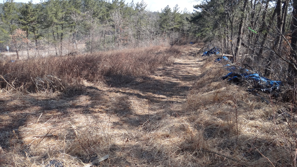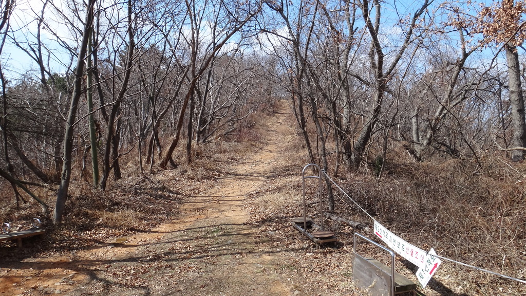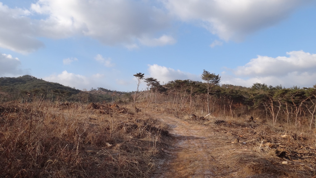 왼쪽으로 철조망을 넘은 흔적이 있는 곳에서 산으로 든다.
