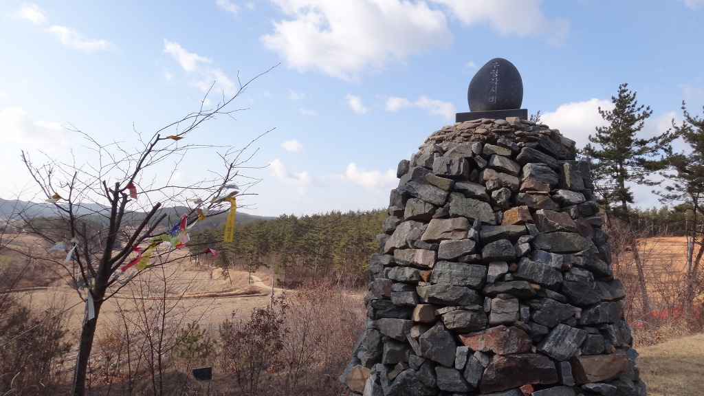 전원주택 뒷능선 길가운데 주먹만한 이정표 하나가 박혀있고 시그널에