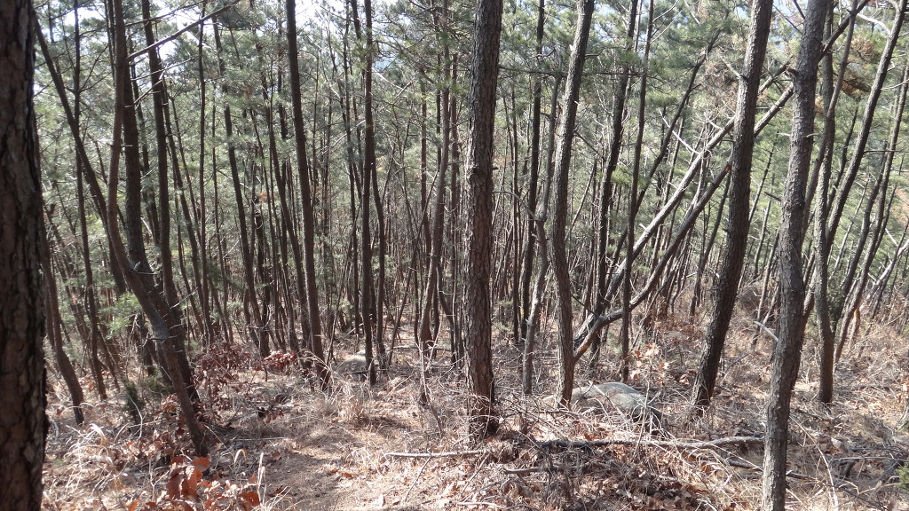 능선으로 올라서니 사유지인 밤나무 단지가 나타나고 한차례 능선 마루금에 오르고