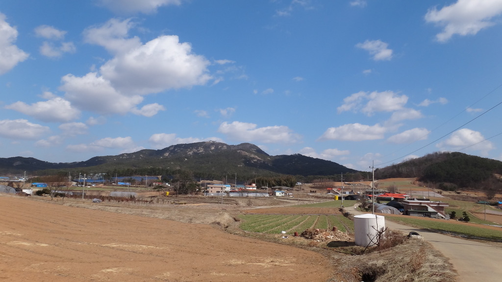 저 멀리 백화산이 보이고 태안군 소원면의 농촌마을 모습이 한가롭다.