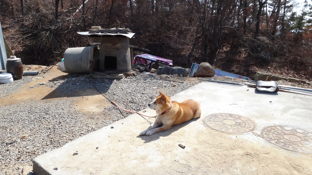 개쉬끼 3마리가 산꾼을 보고 짖어대며 난리부루스를 친다.