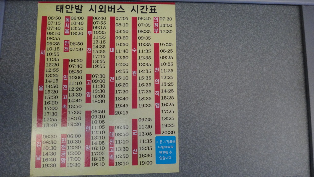산행후에 태안에서 서울로 올라갈 버스시간표를 확인하고...