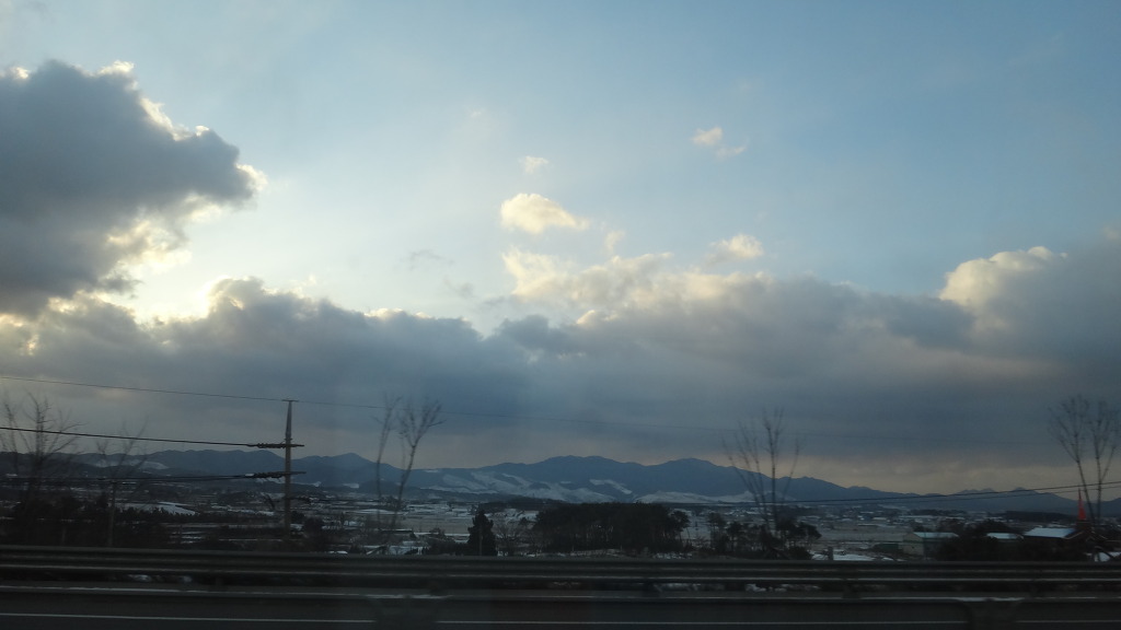 차창밖의 논밭에는 밤에 내린 눈으로 인해 하얀 세상으로 변해있고