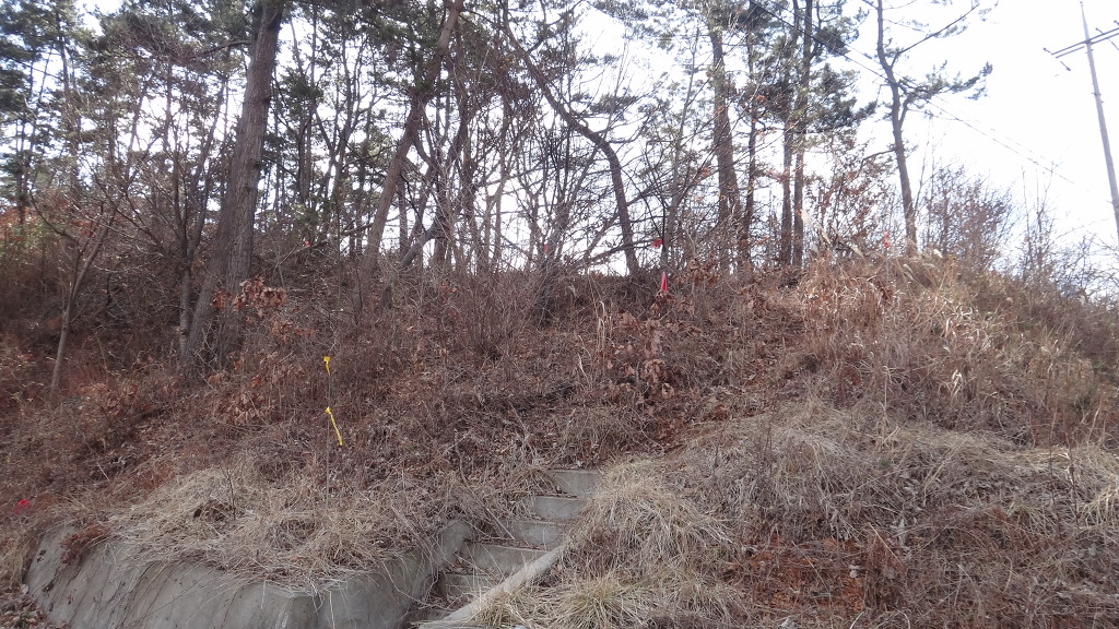 배수장을 지나고 간벌지역을 넘어 올라서니 물래산이 나타난다.