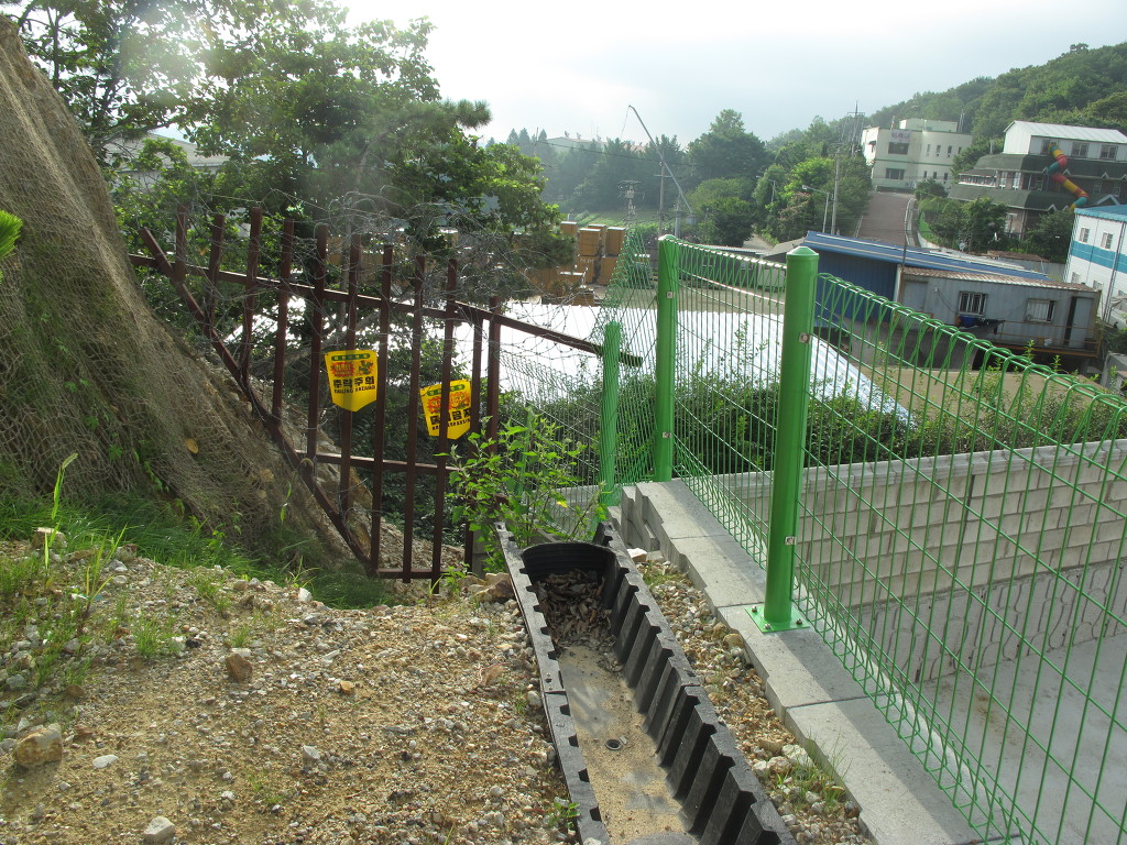 설치해놔서 갈 수 없게 만들었고 그 아래 절개지에는 공장이 있다.