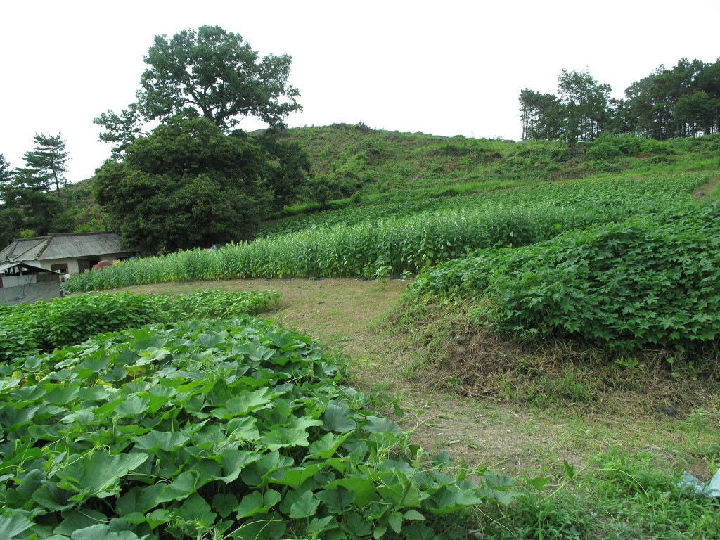 공장 능선을 지나니 이번에는 콩밭이 정맥길을 짤라먹고 있다.