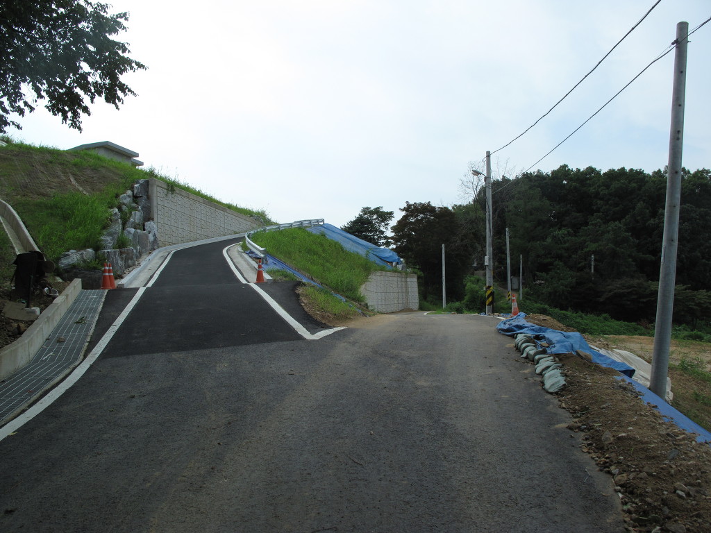 학원을 지나자 주택들이 나오고 주택을 지나자 조그만 도로가 나온다.