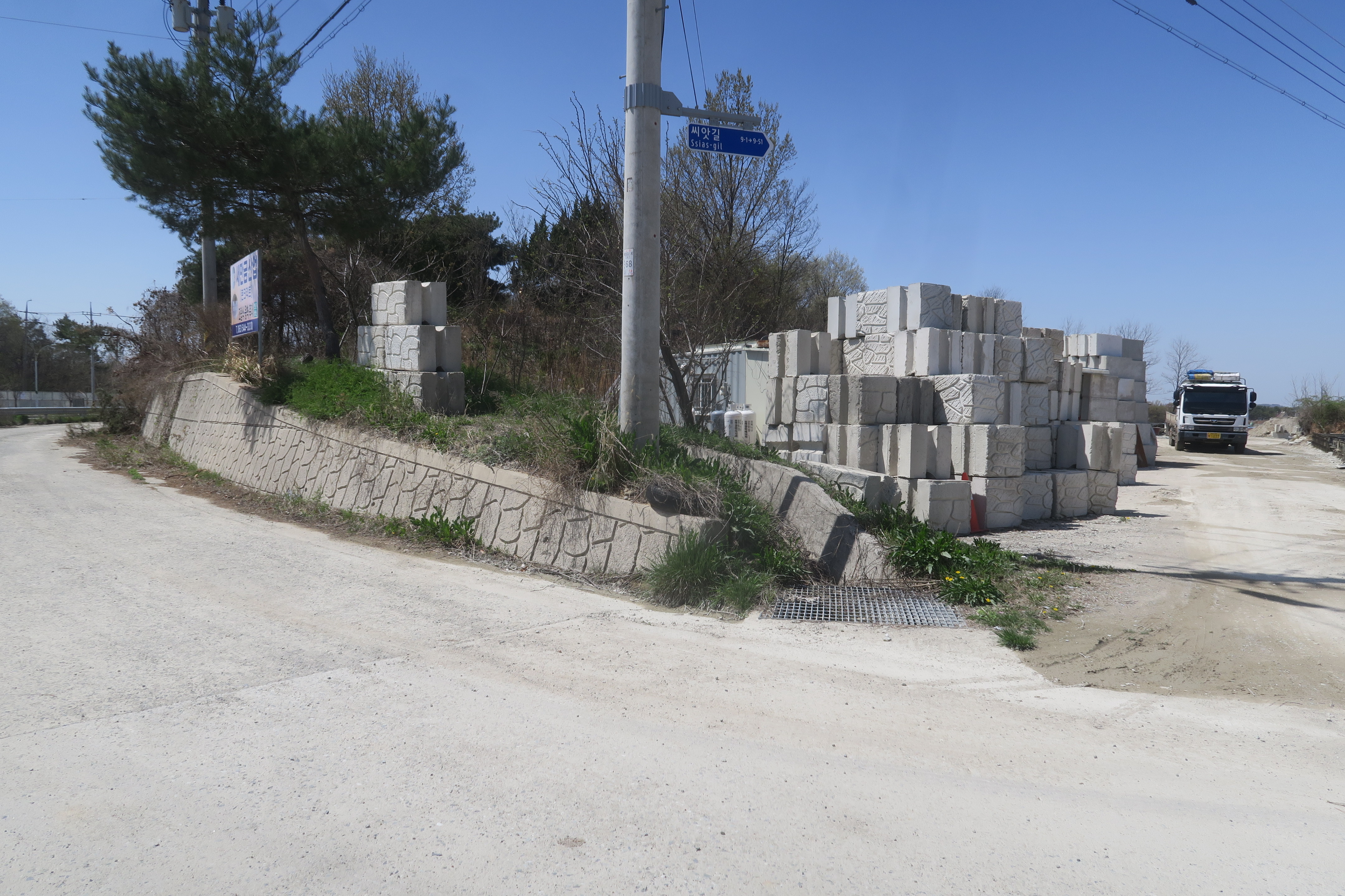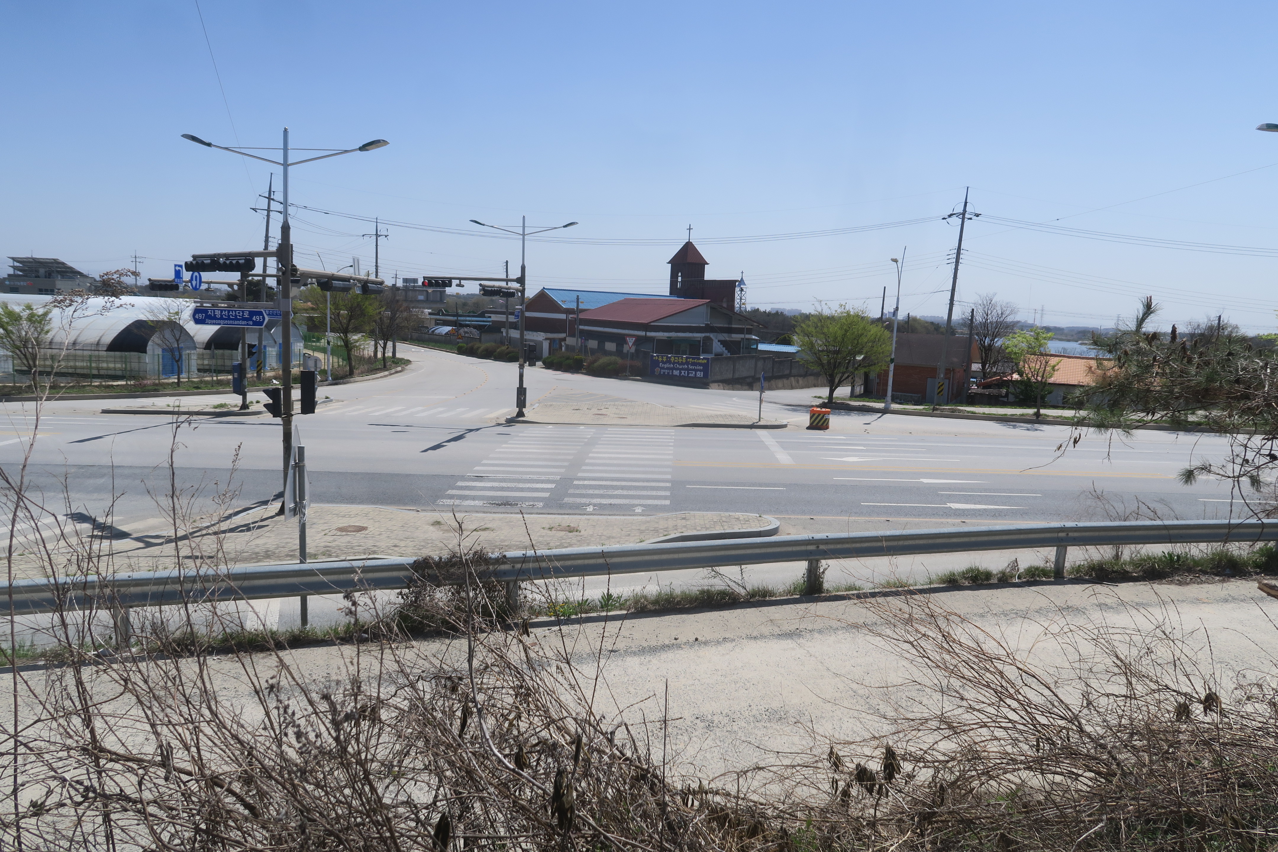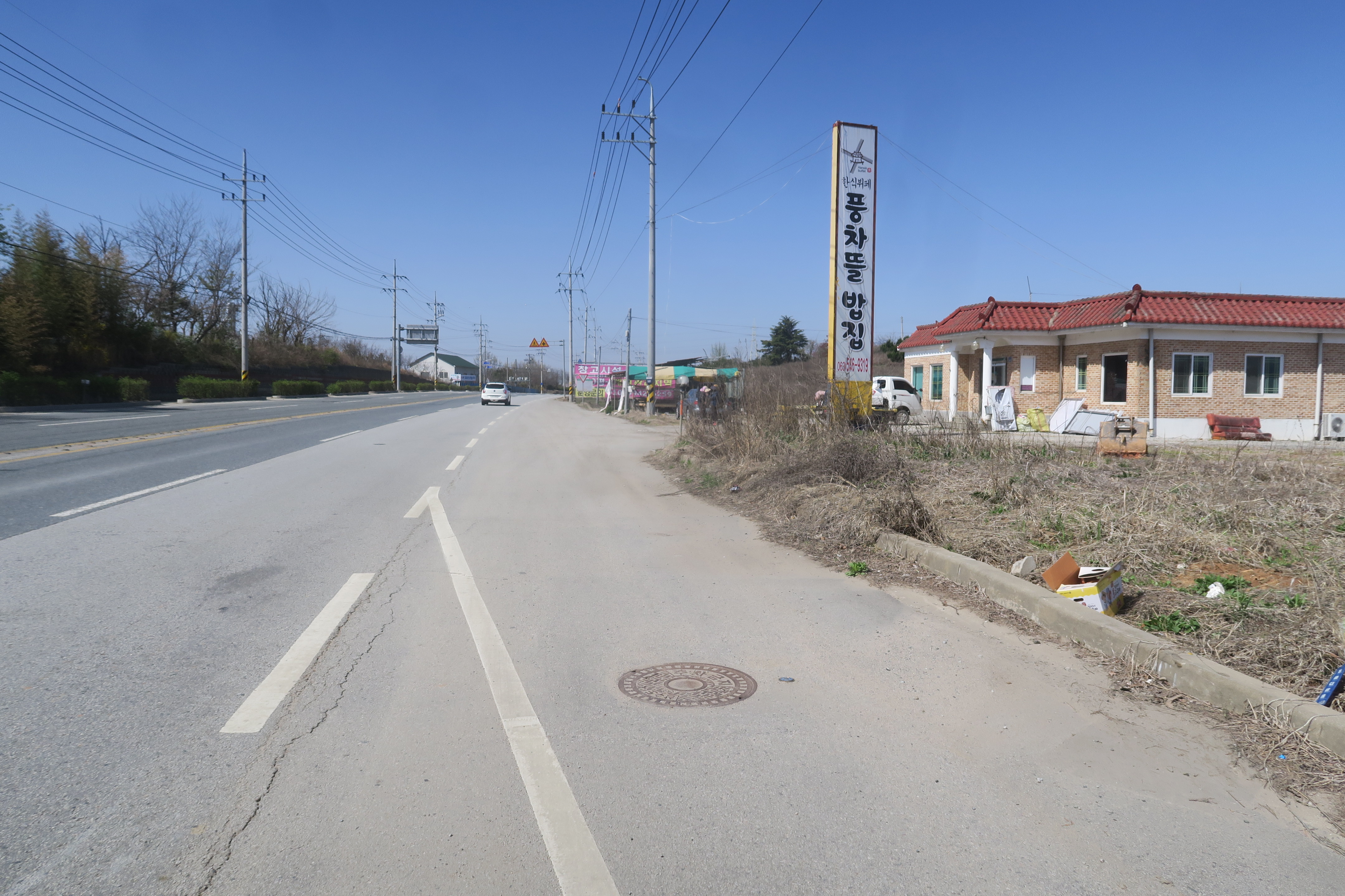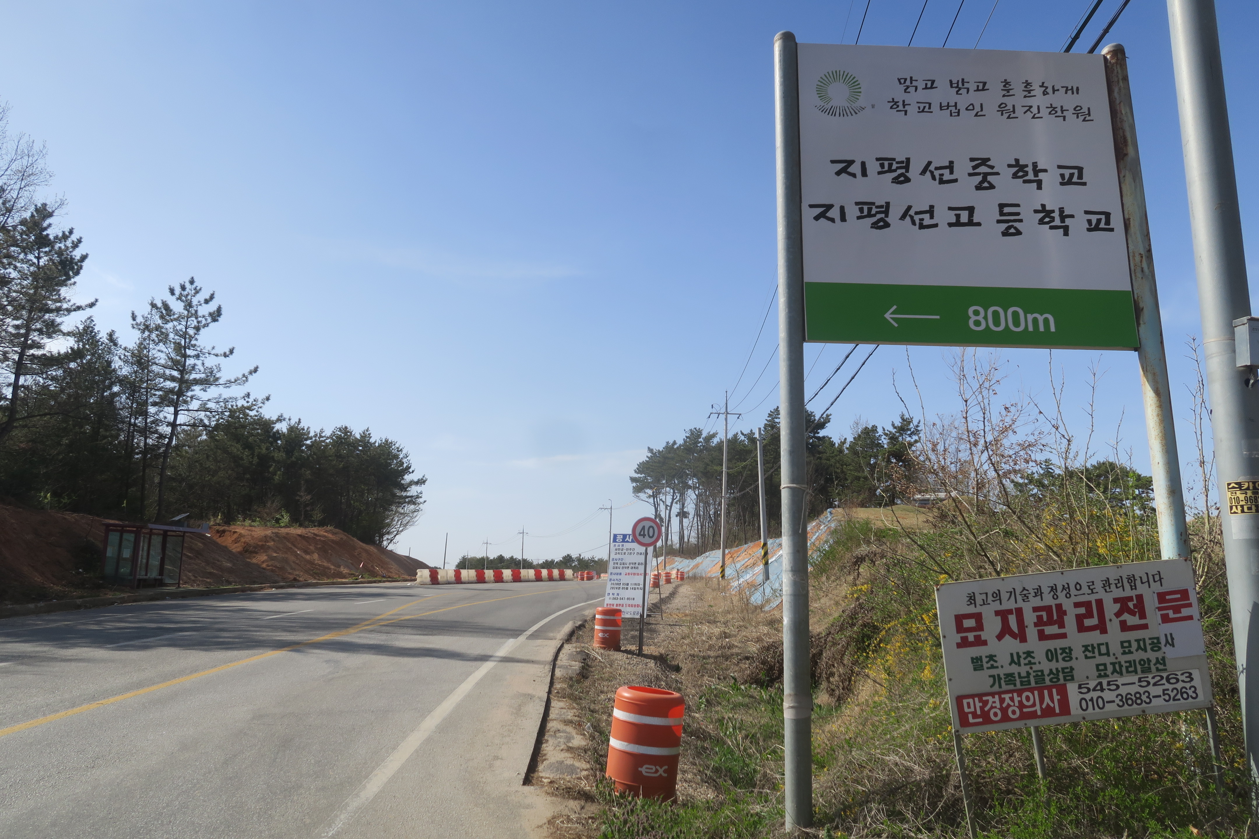 직진으로 이어지는 좁은 도로 방향으로는 지평선 중.고등학교 방향이고,