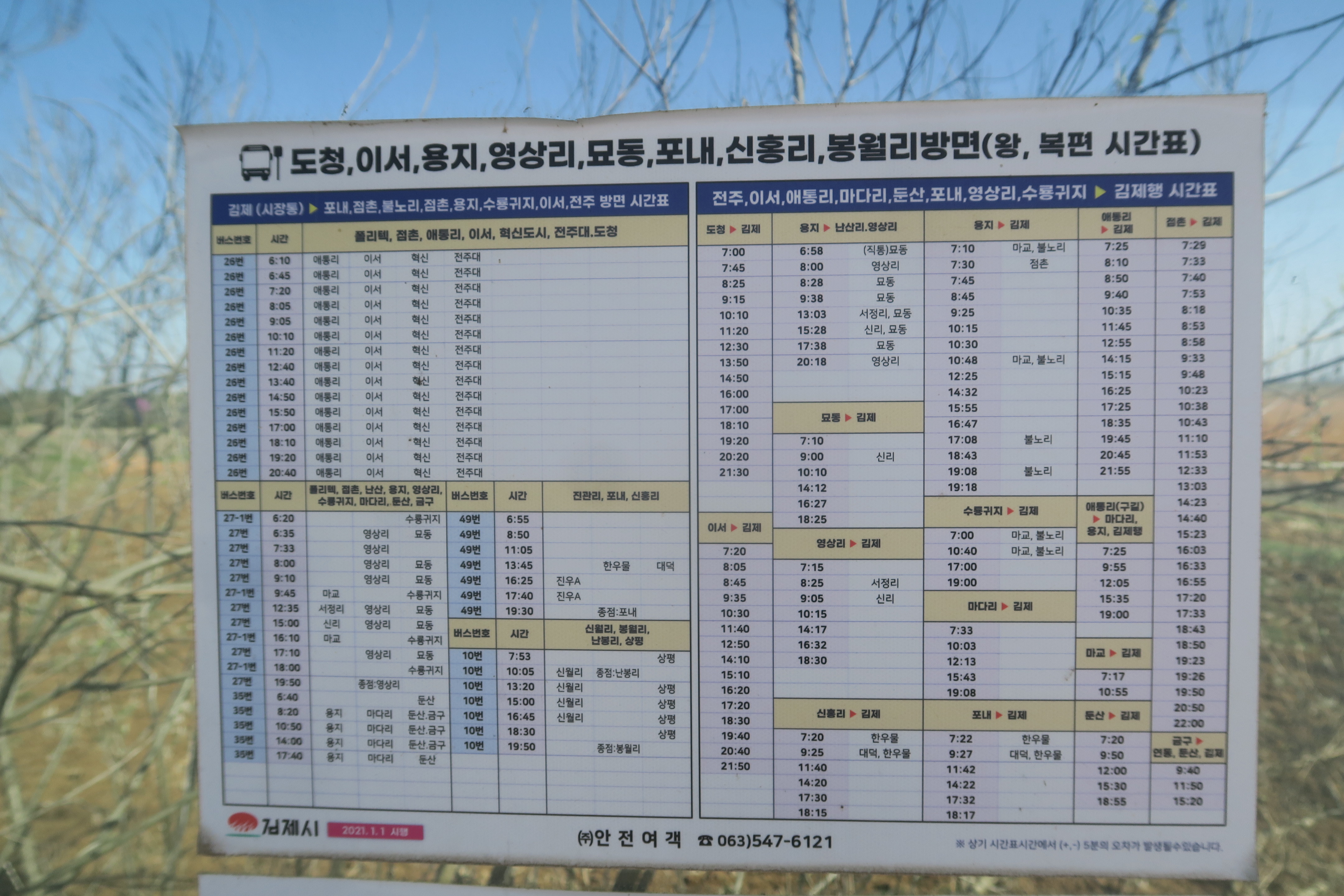 김제버스 터미널 시간표
