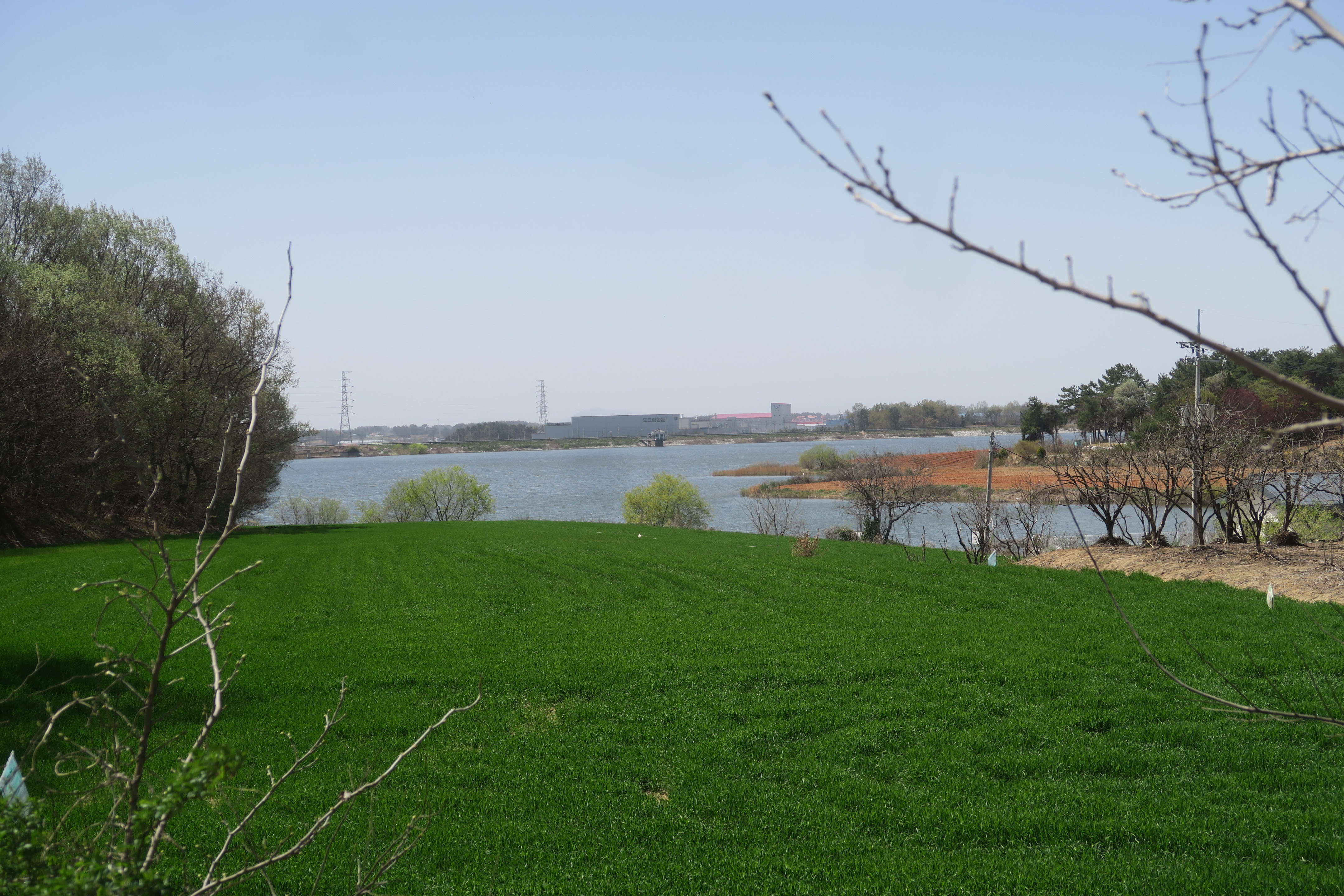 있고, 그 뒷쪽으로는 능제저수지 위로 조금전에 헛짓거리하면서 갔던 장산마을이 보인다