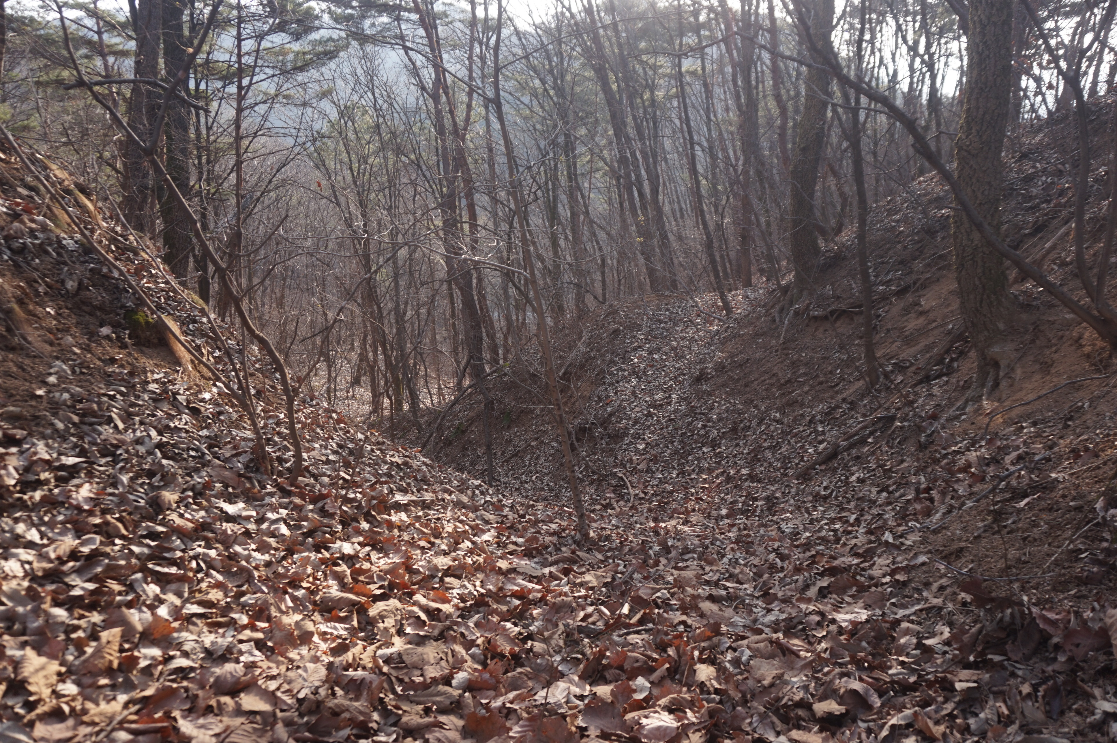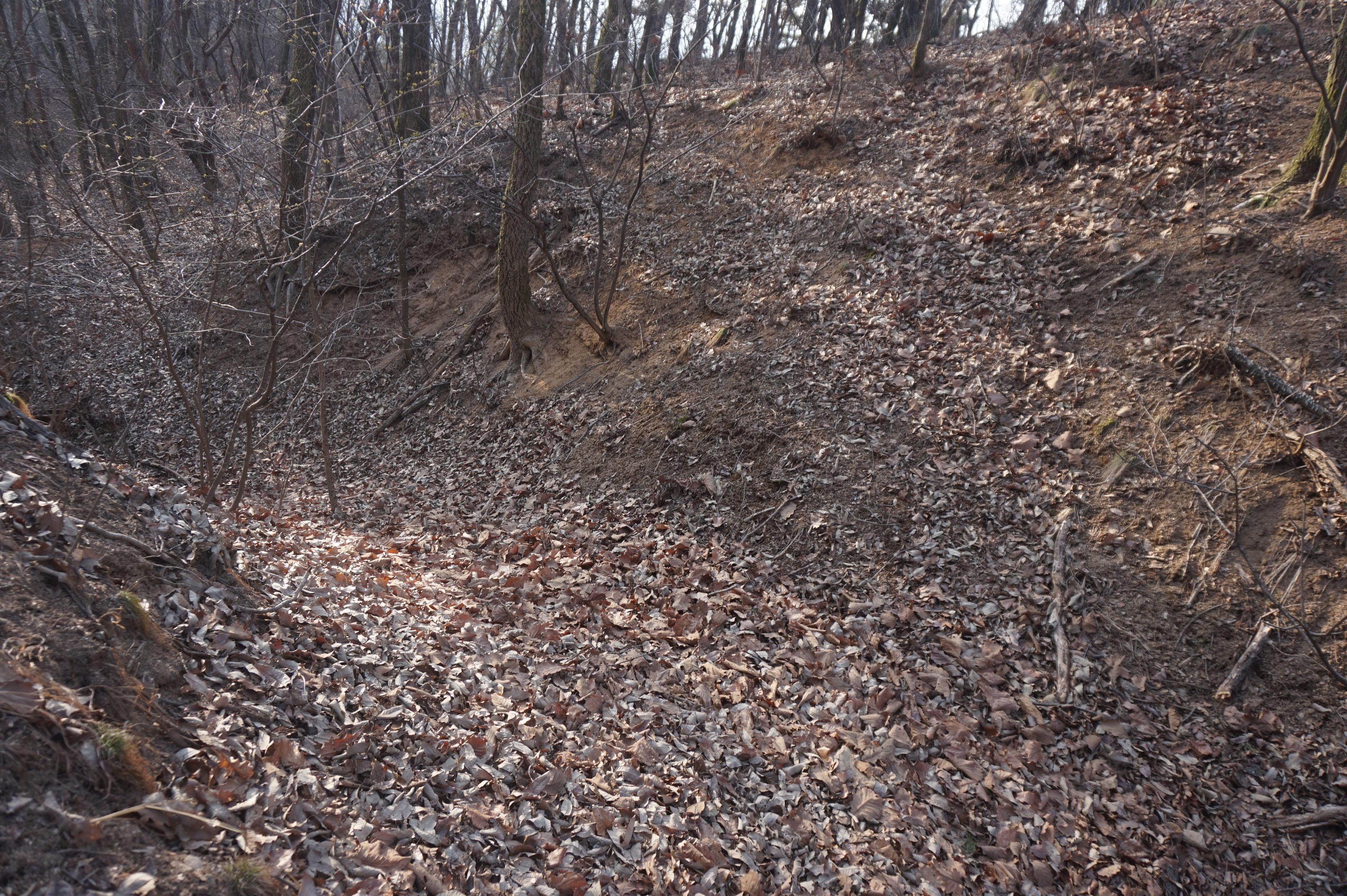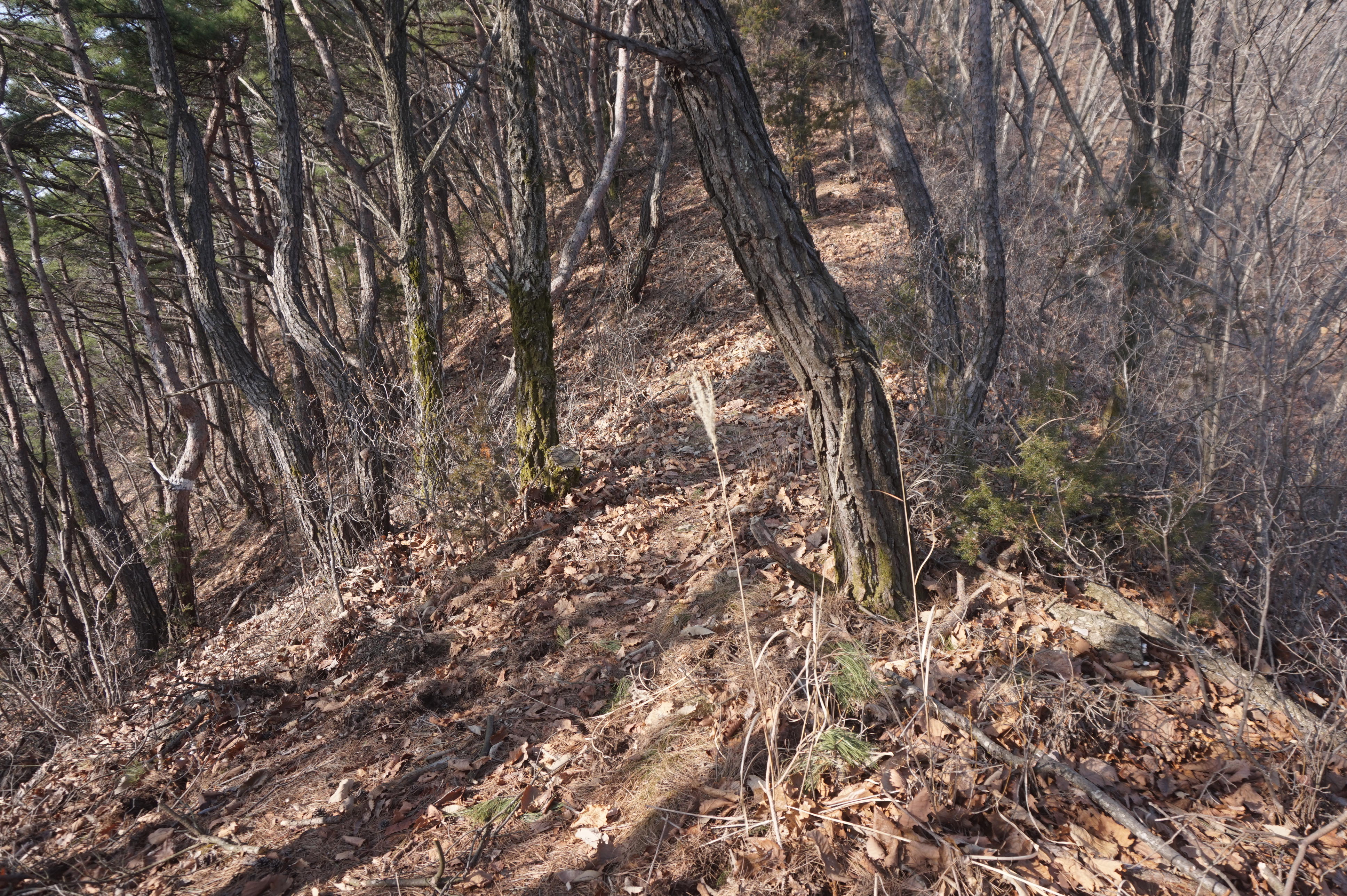 좌측으로 확 꺽어져 내려가는 길...낙엽으로 인해 등로는 상당히 미끄럽다