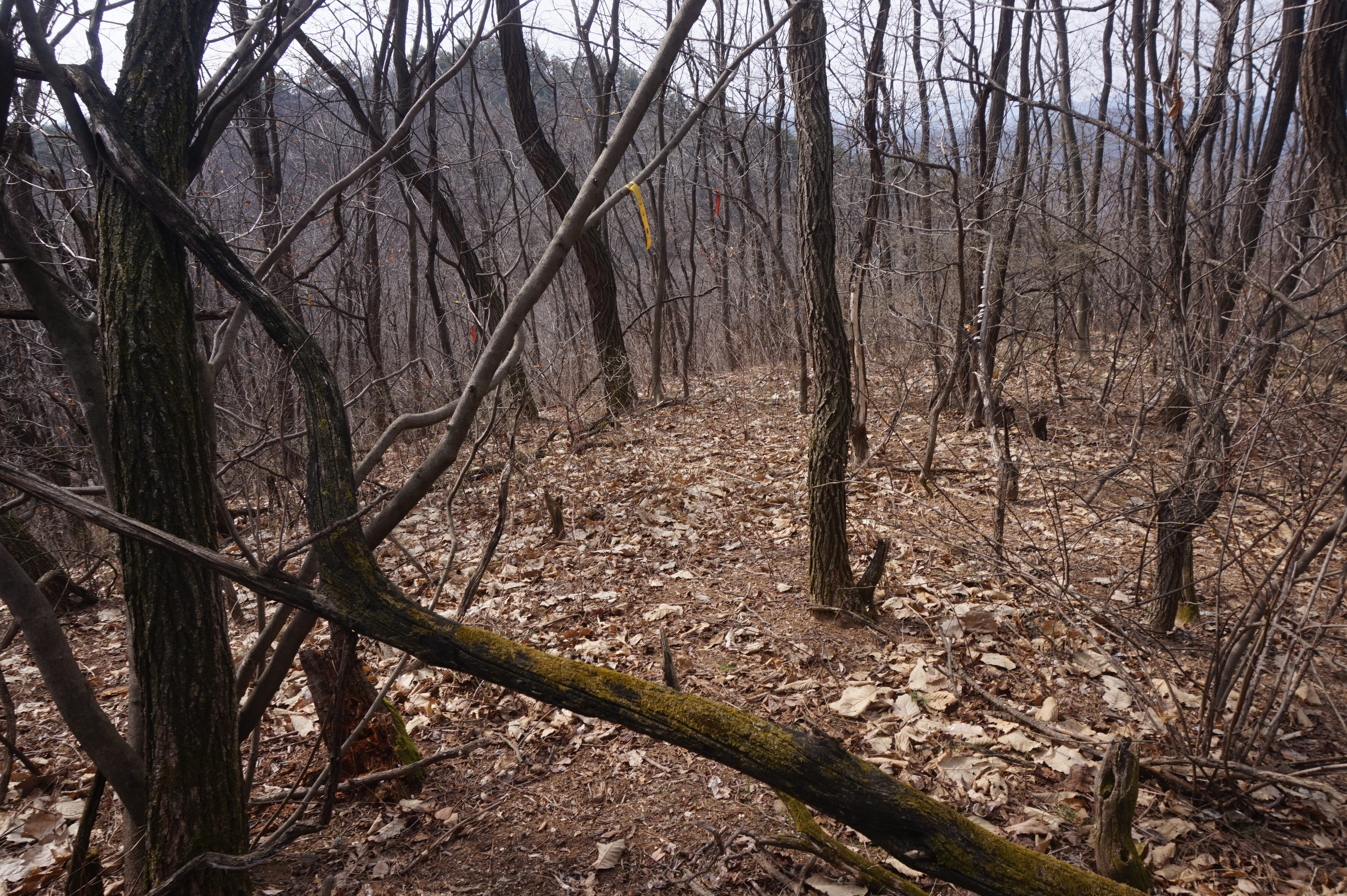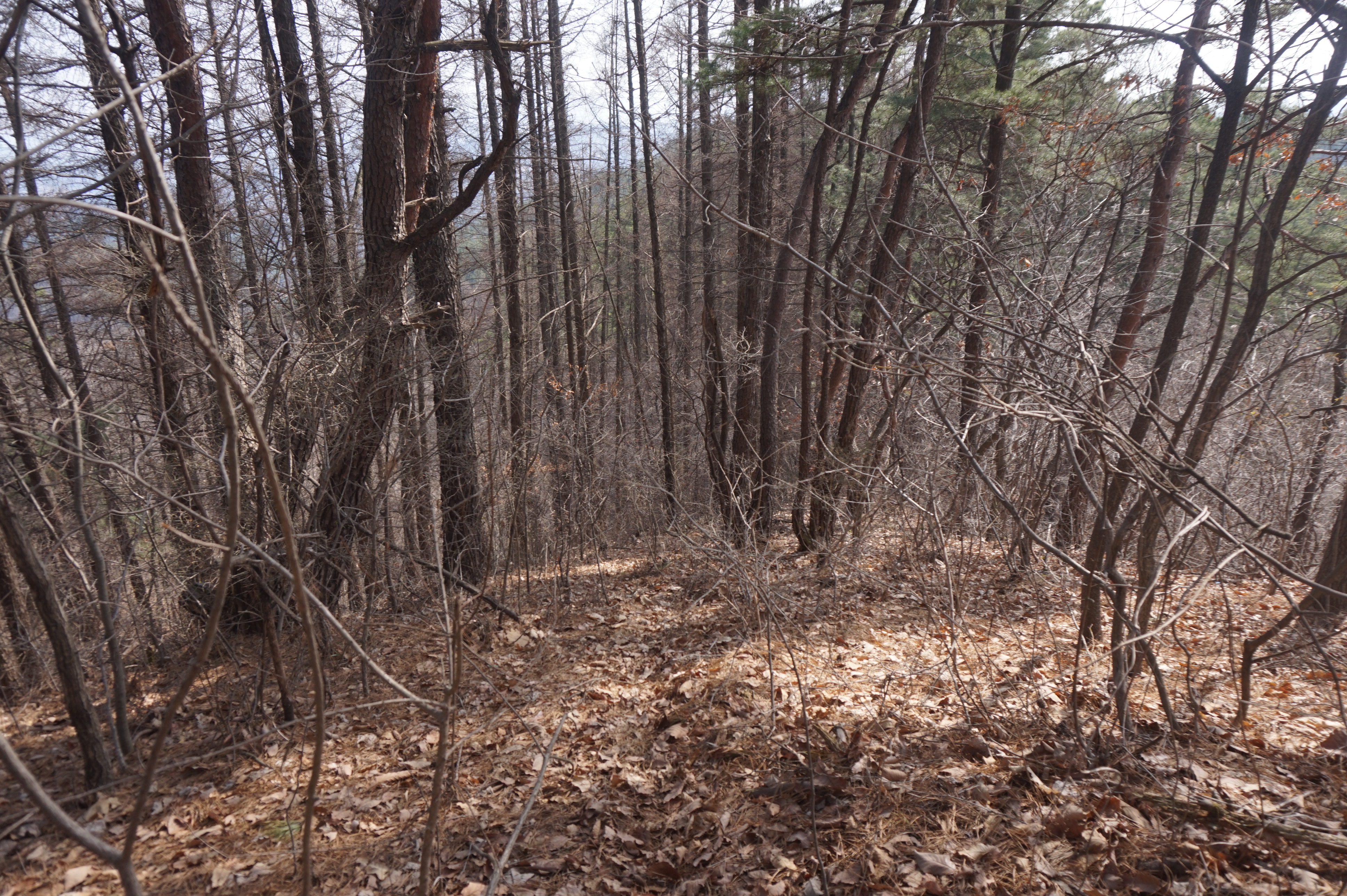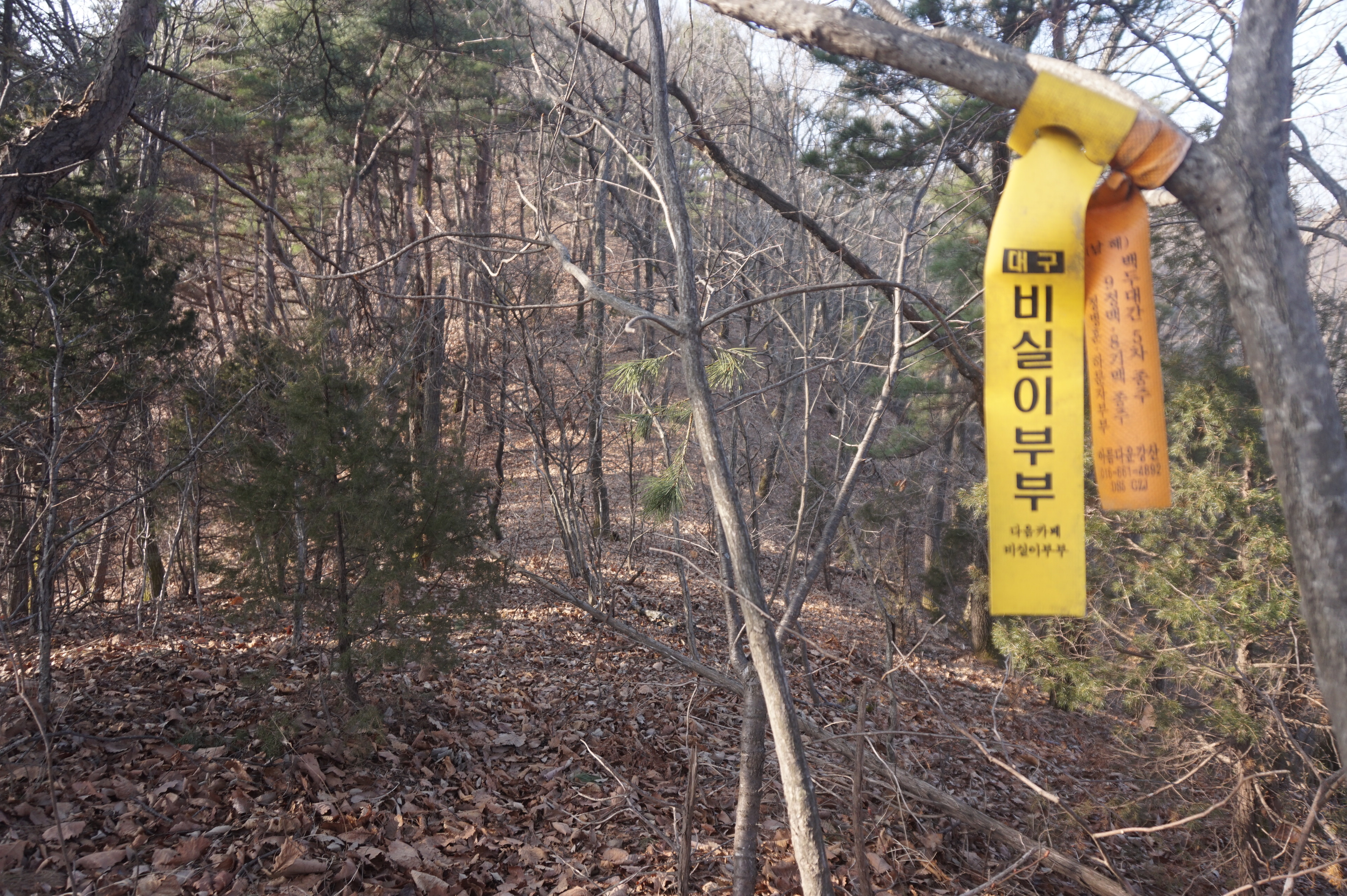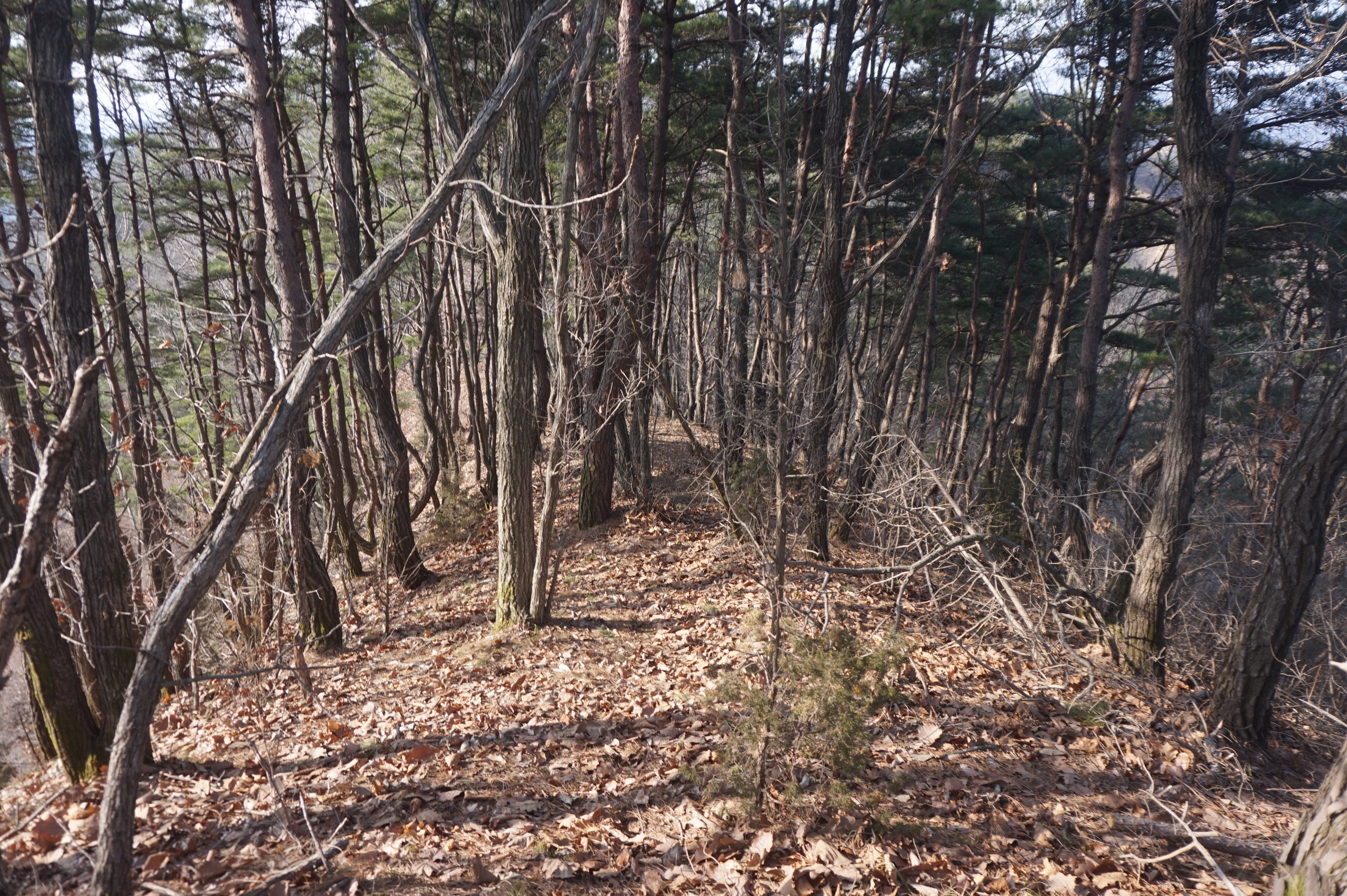 좌측으로 확 꺽어져 내려가는 길...낙엽으로 인해 등로는 상당히 미끄럽다