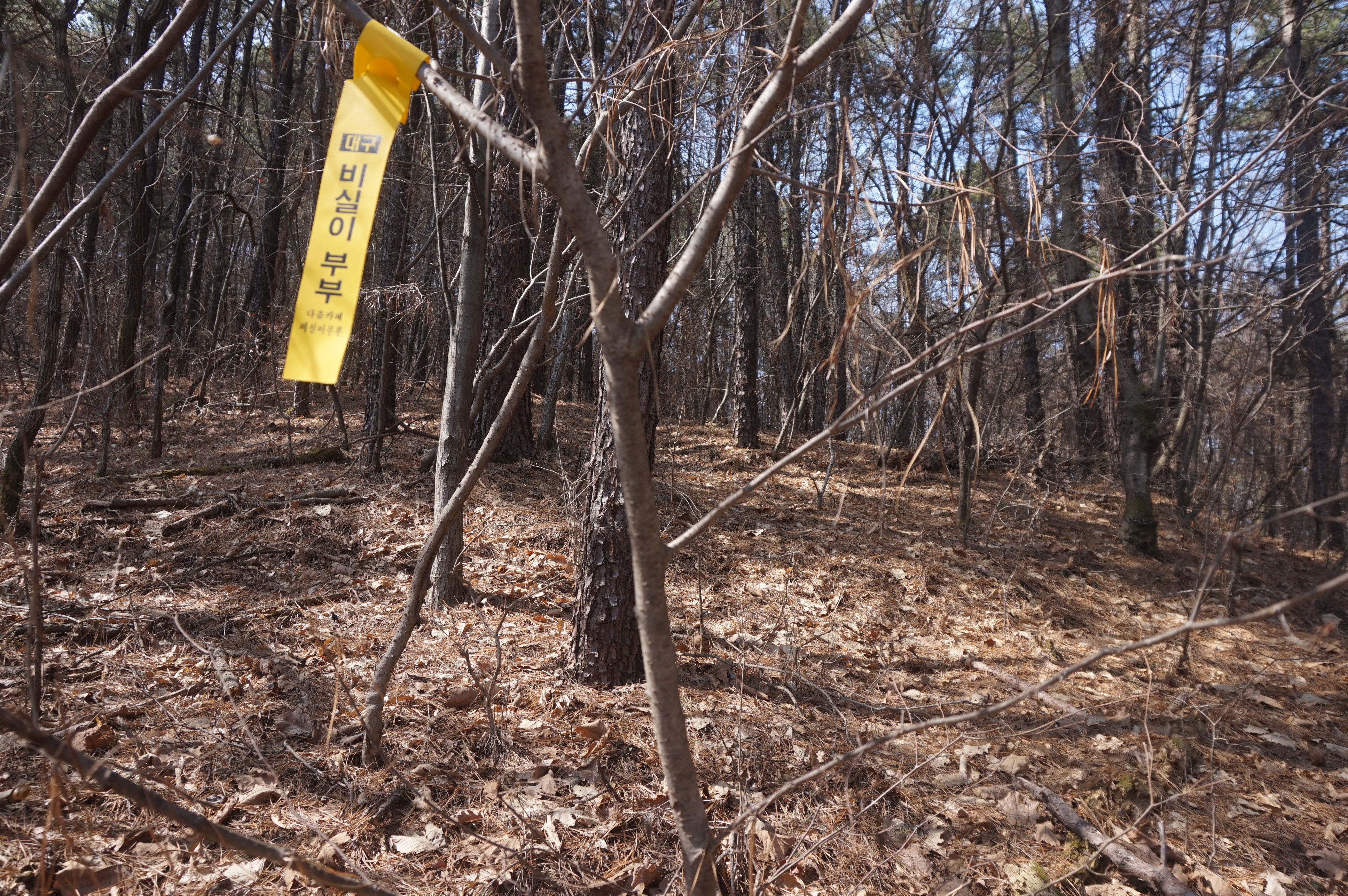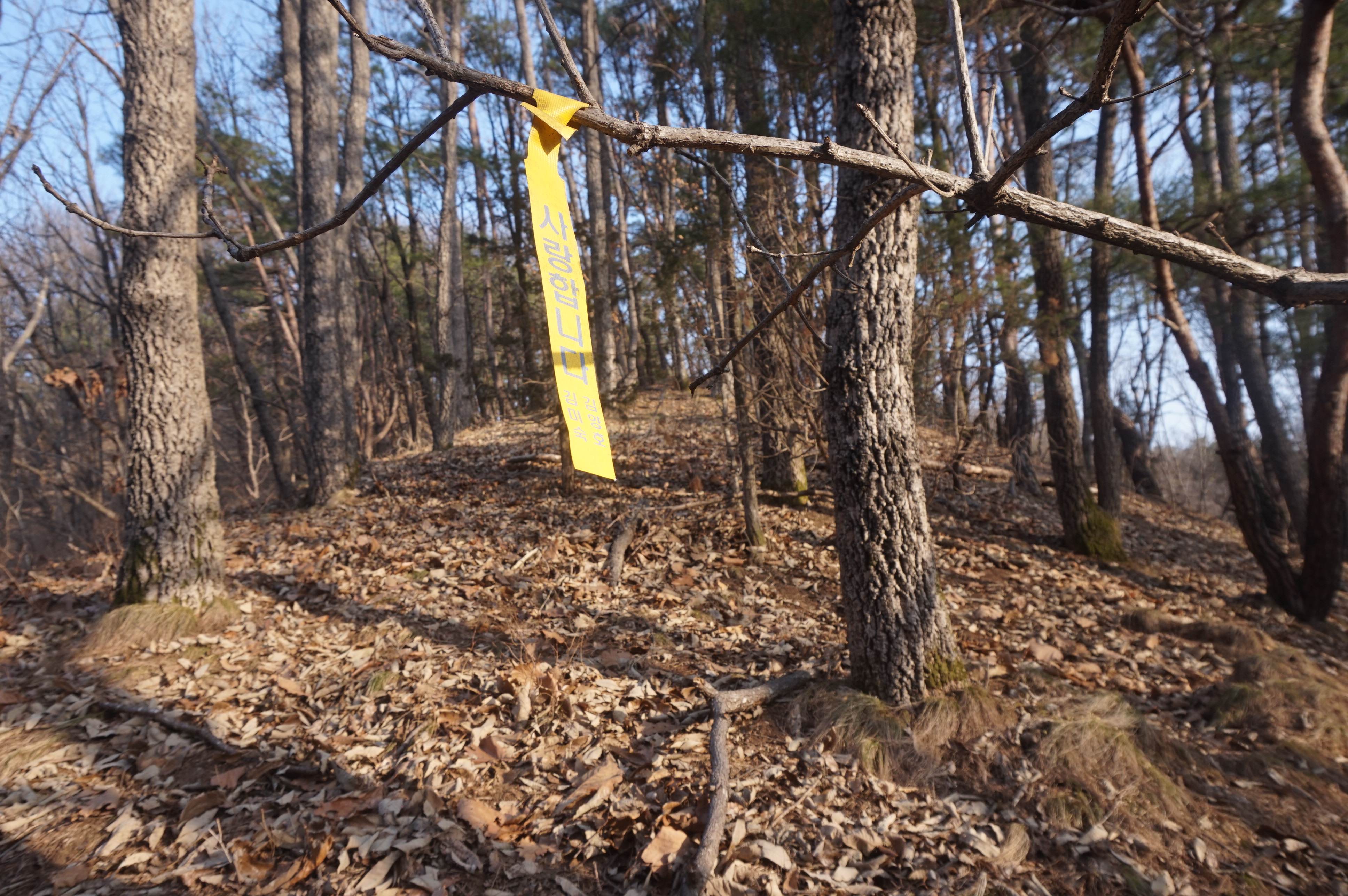 편안한 산줄기를 걷다가 완만한 오르막으로 올라서니 후손들이 돌보지
