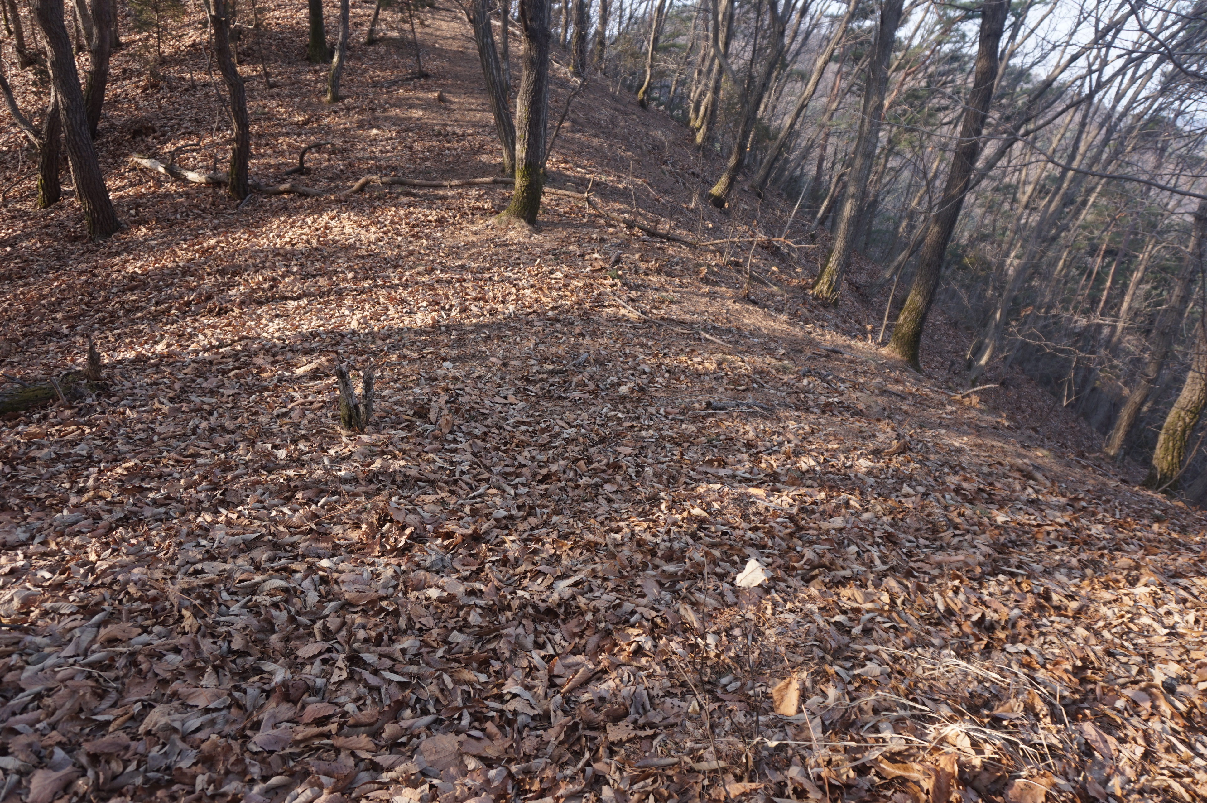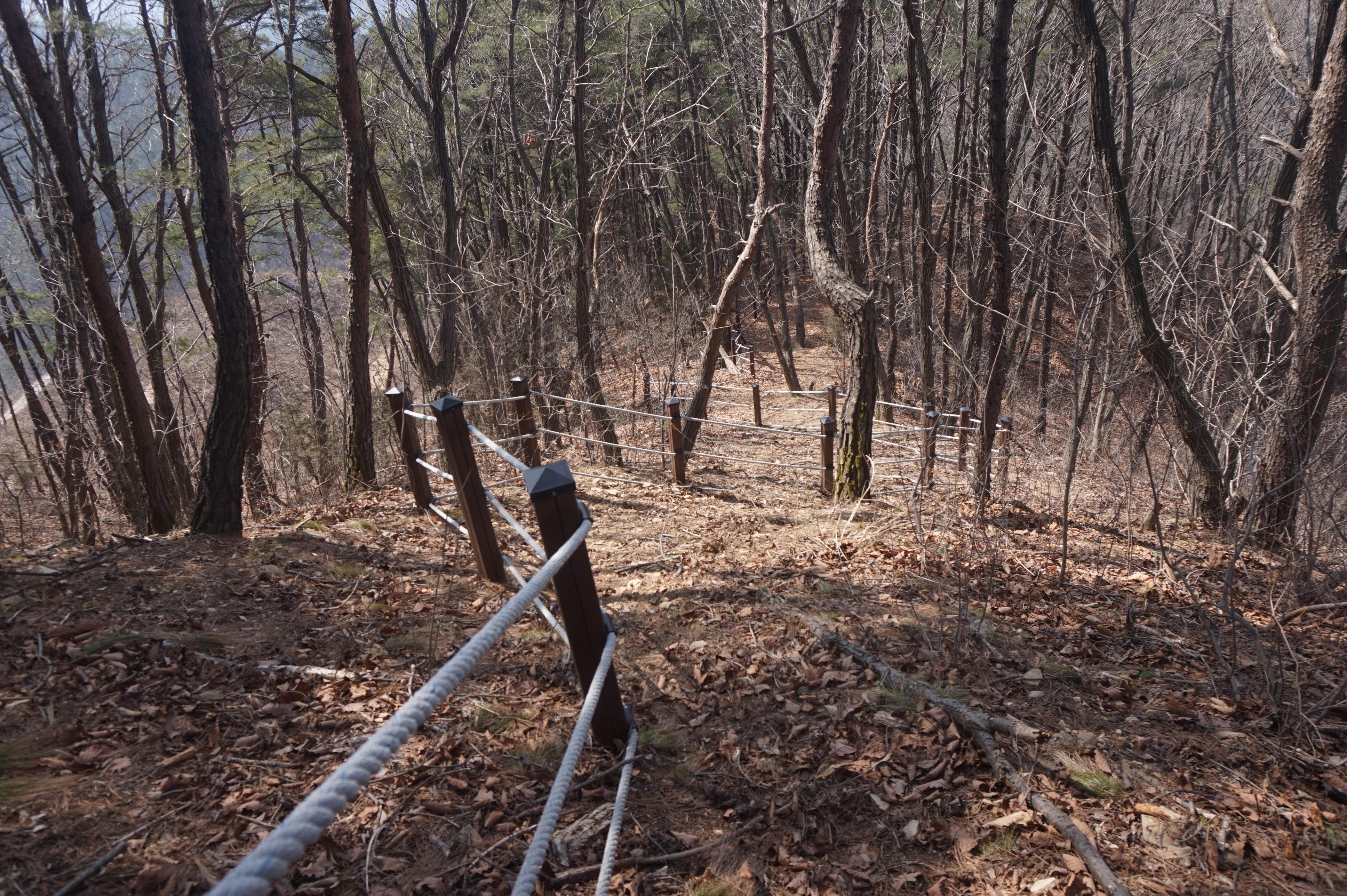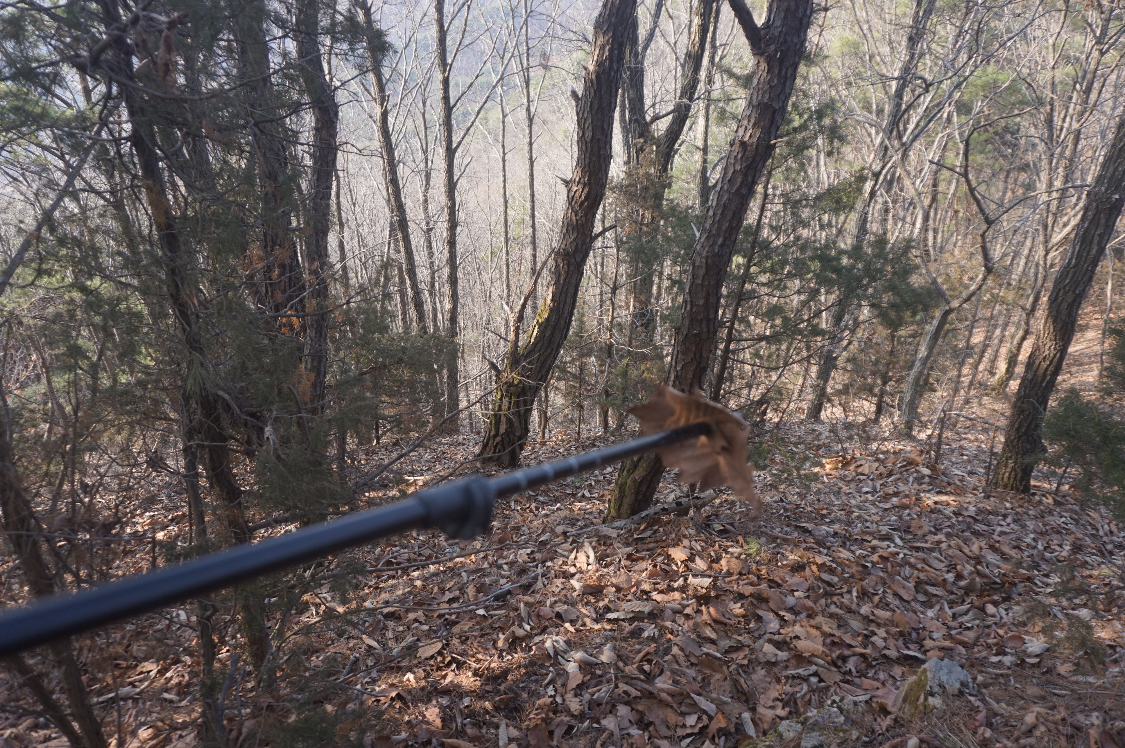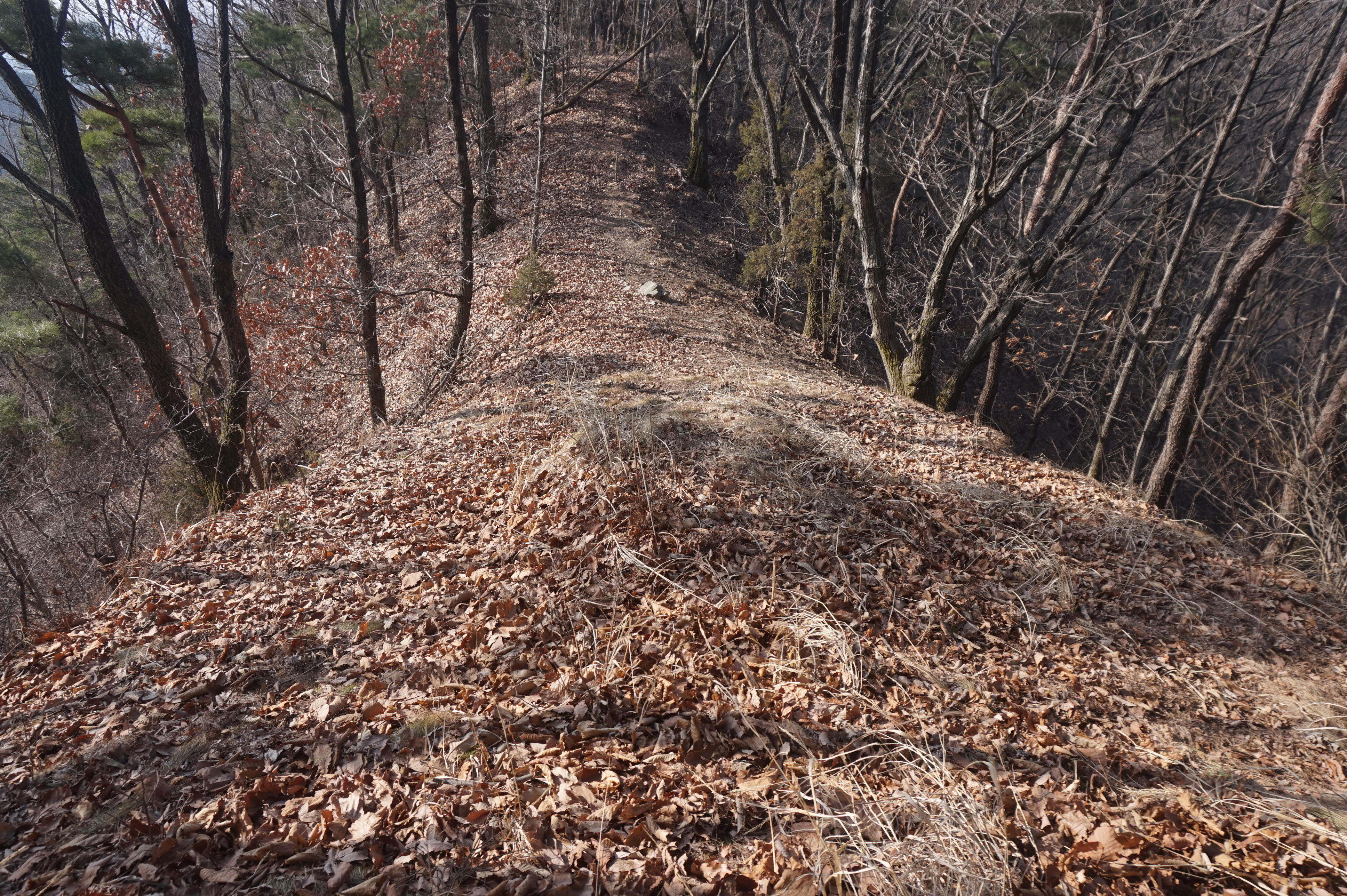 내리막길은 생각보다 급경사이고, 낙엽으로 인해서 상당히 미끄럽다.