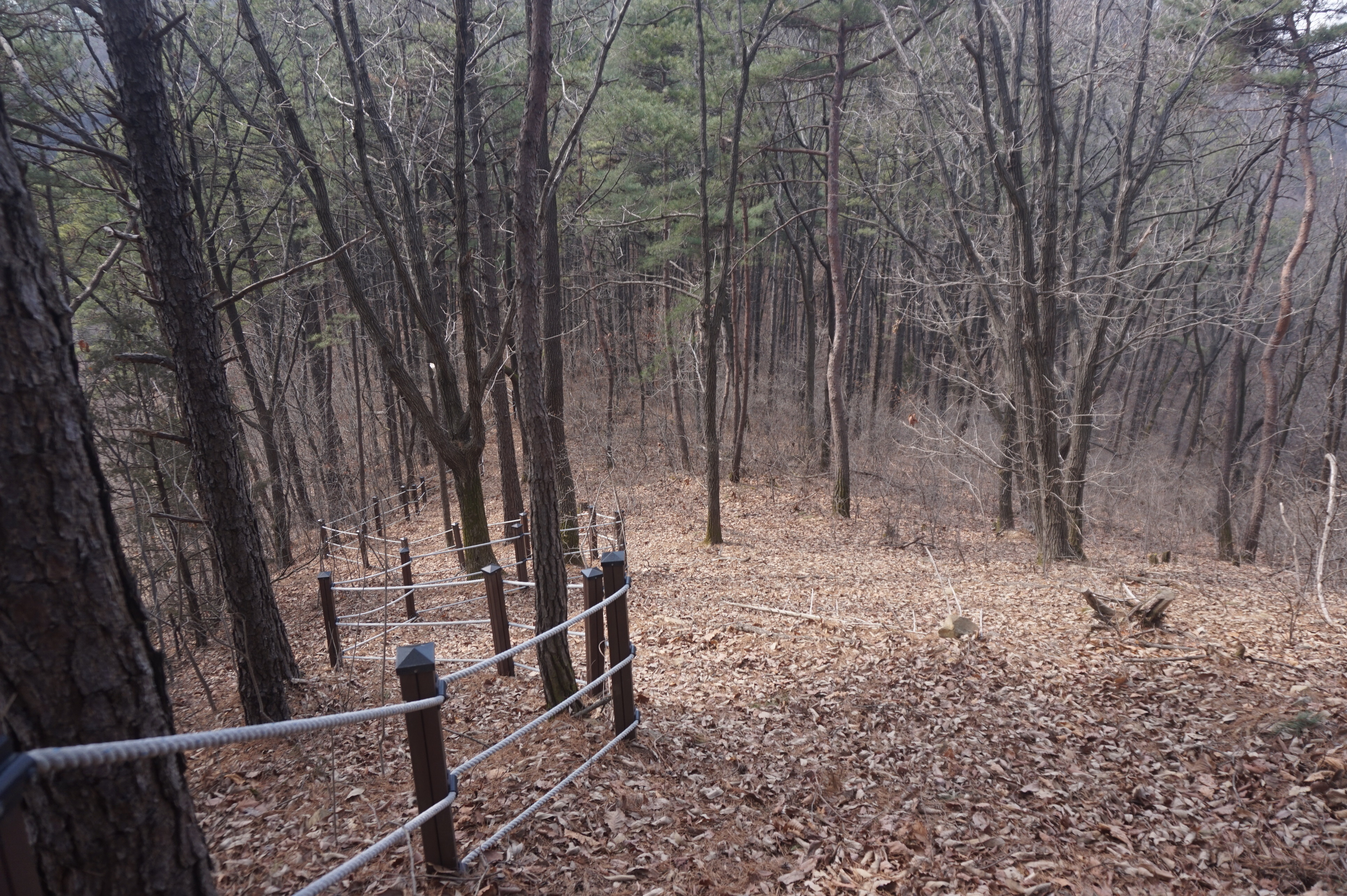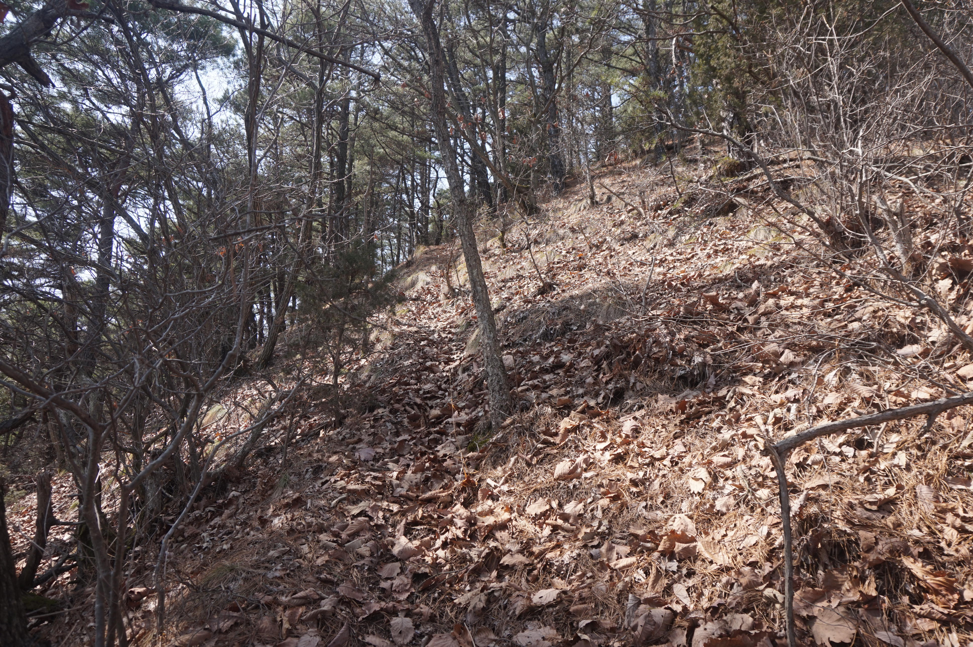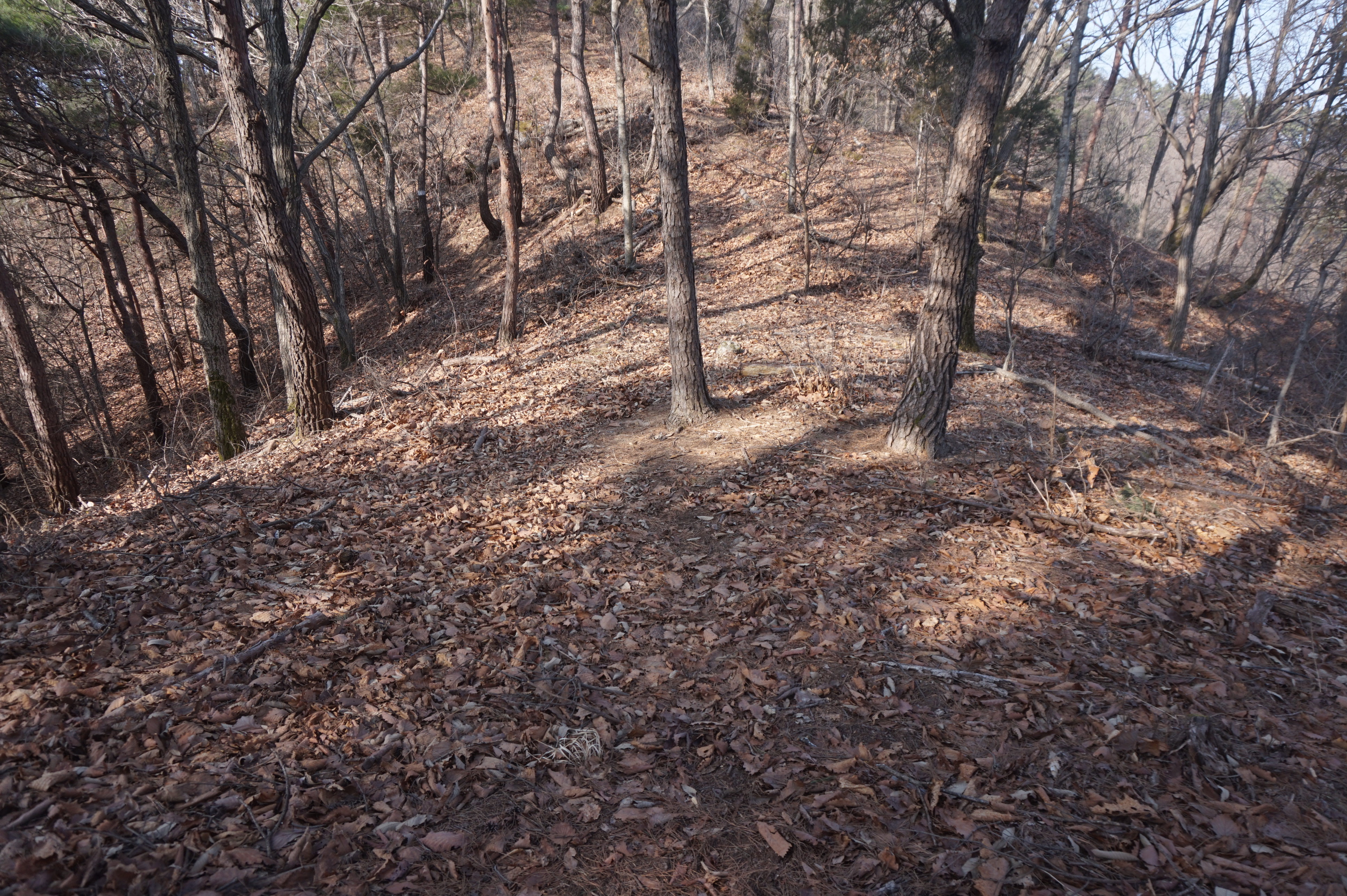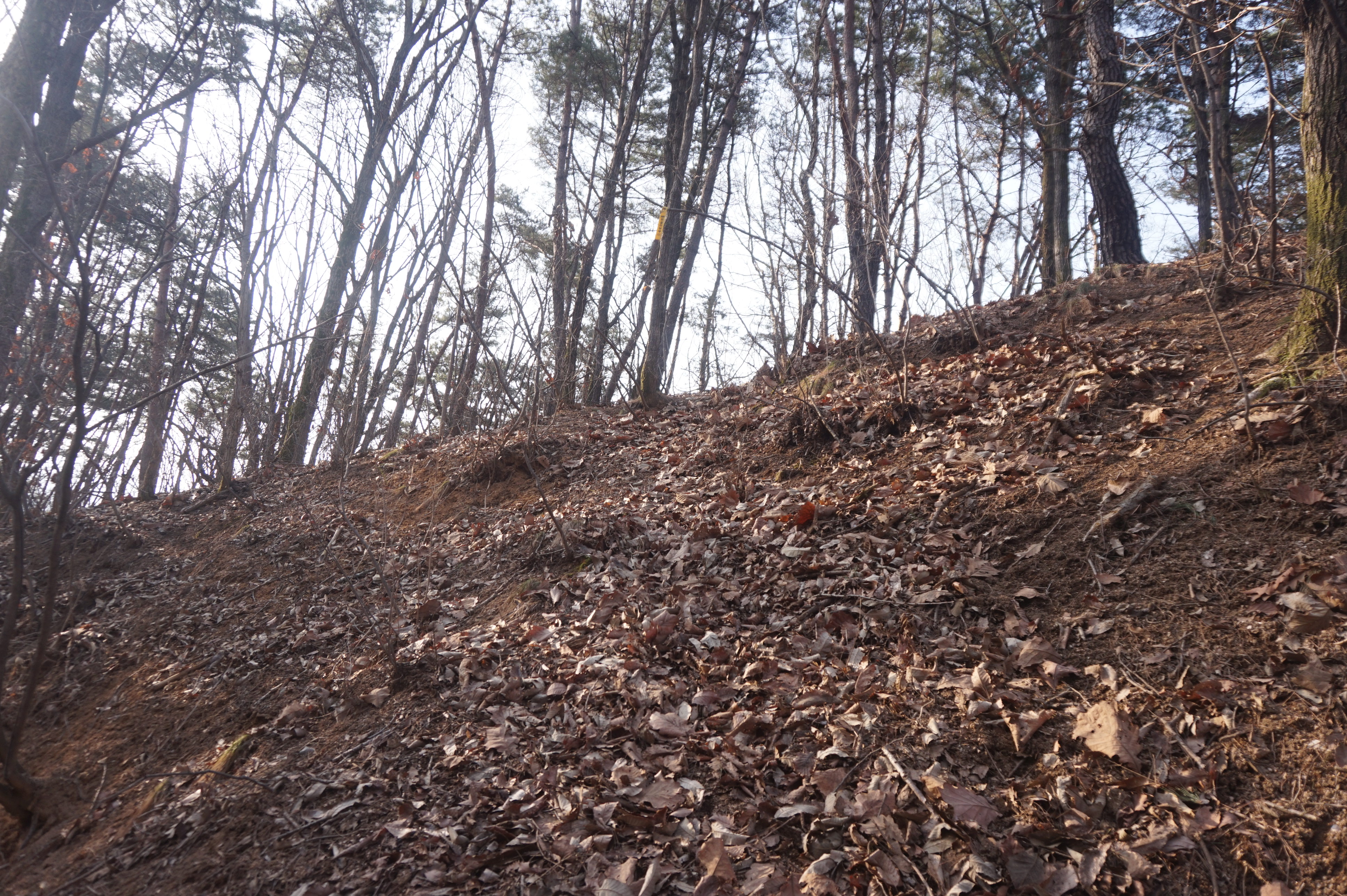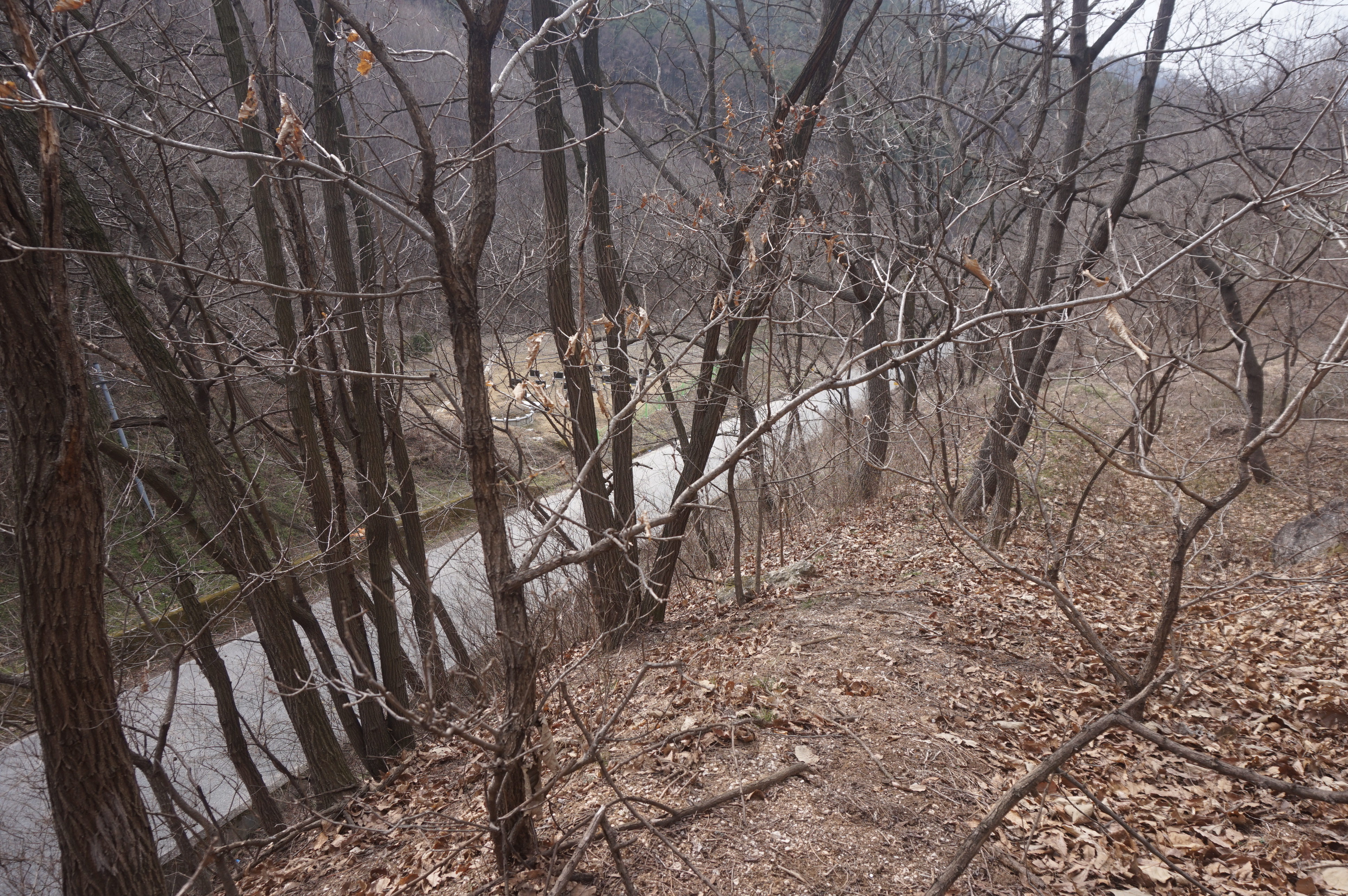 내리막길은 생각보다 급경사이고, 낙엽으로 인해서 상당히 미끄럽다.