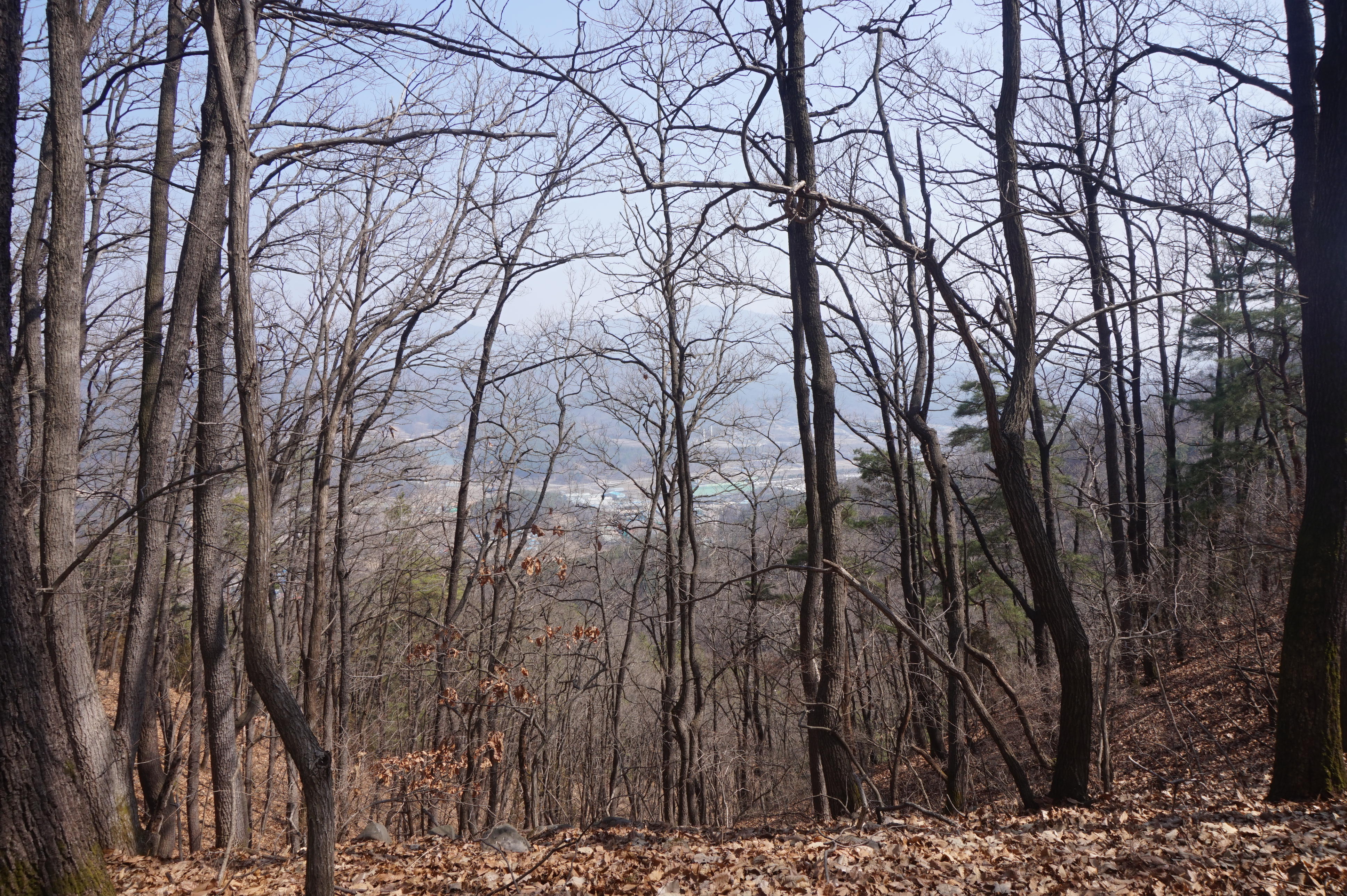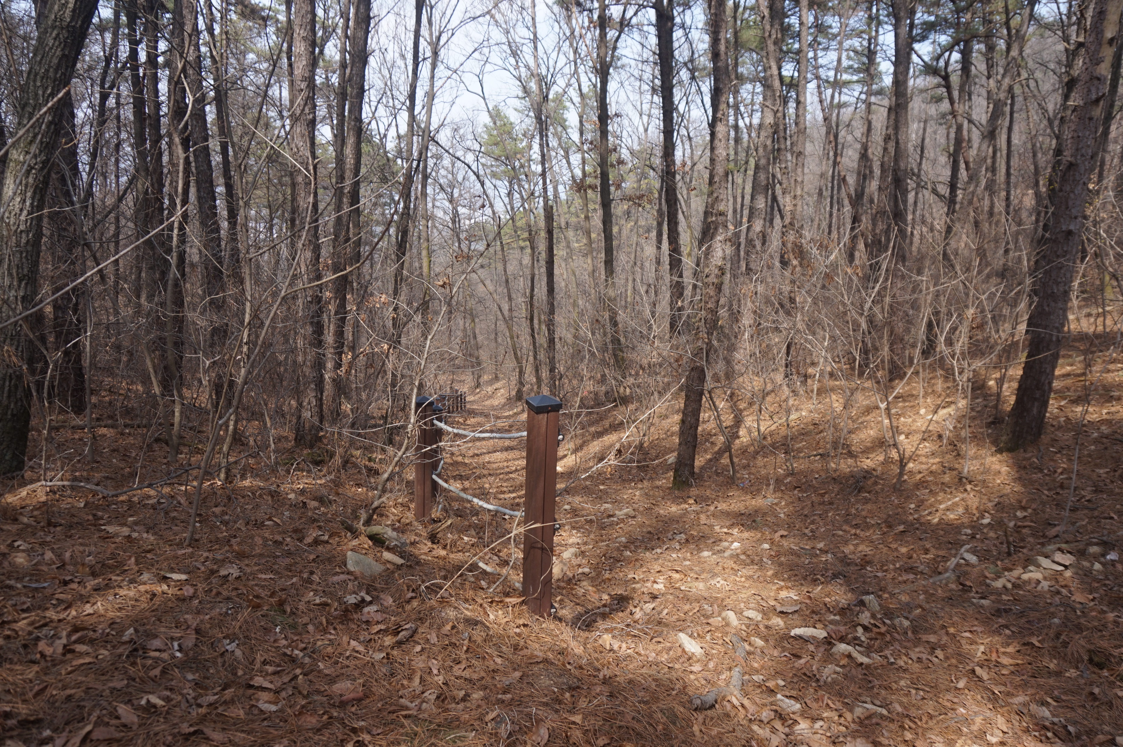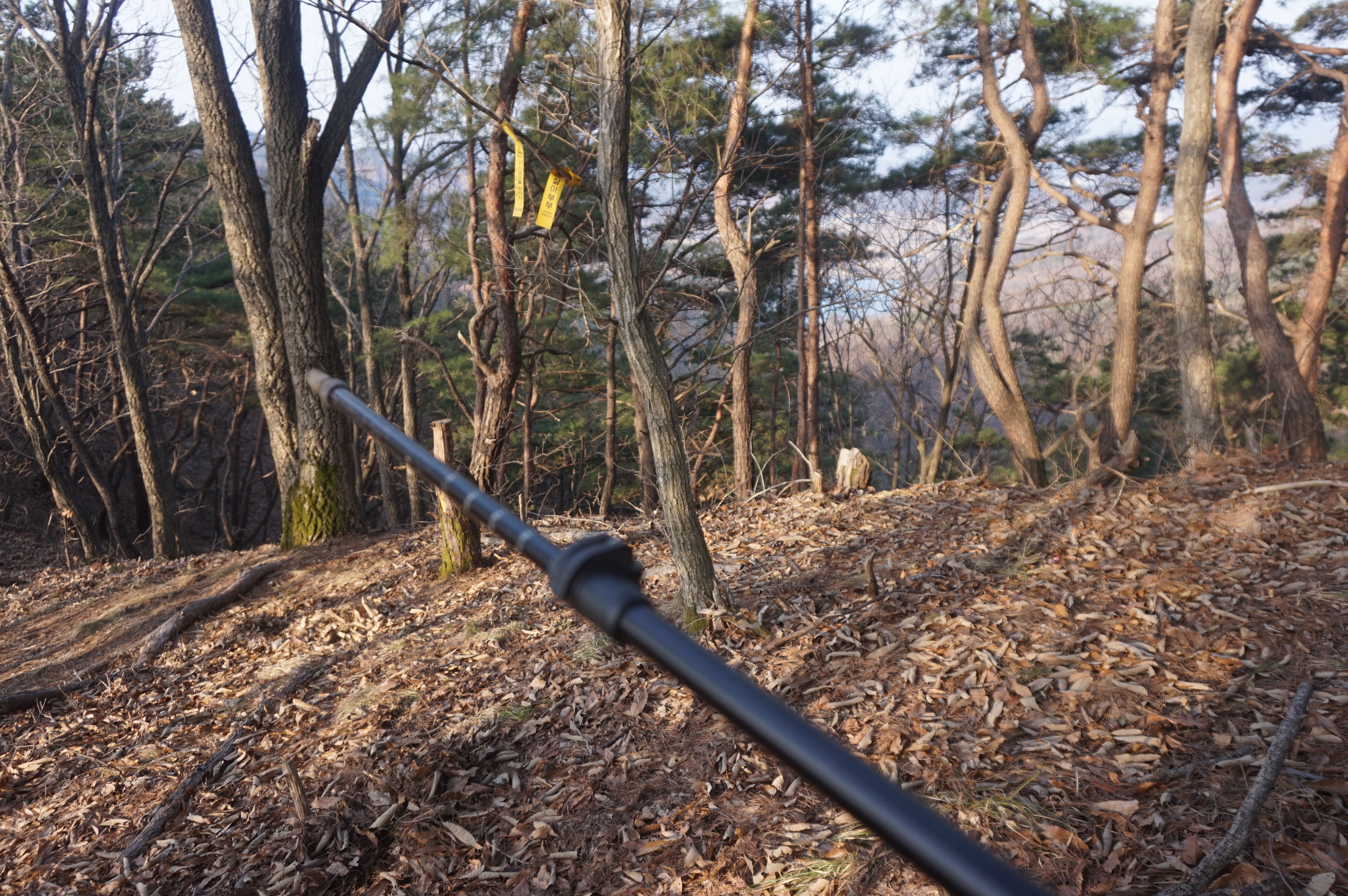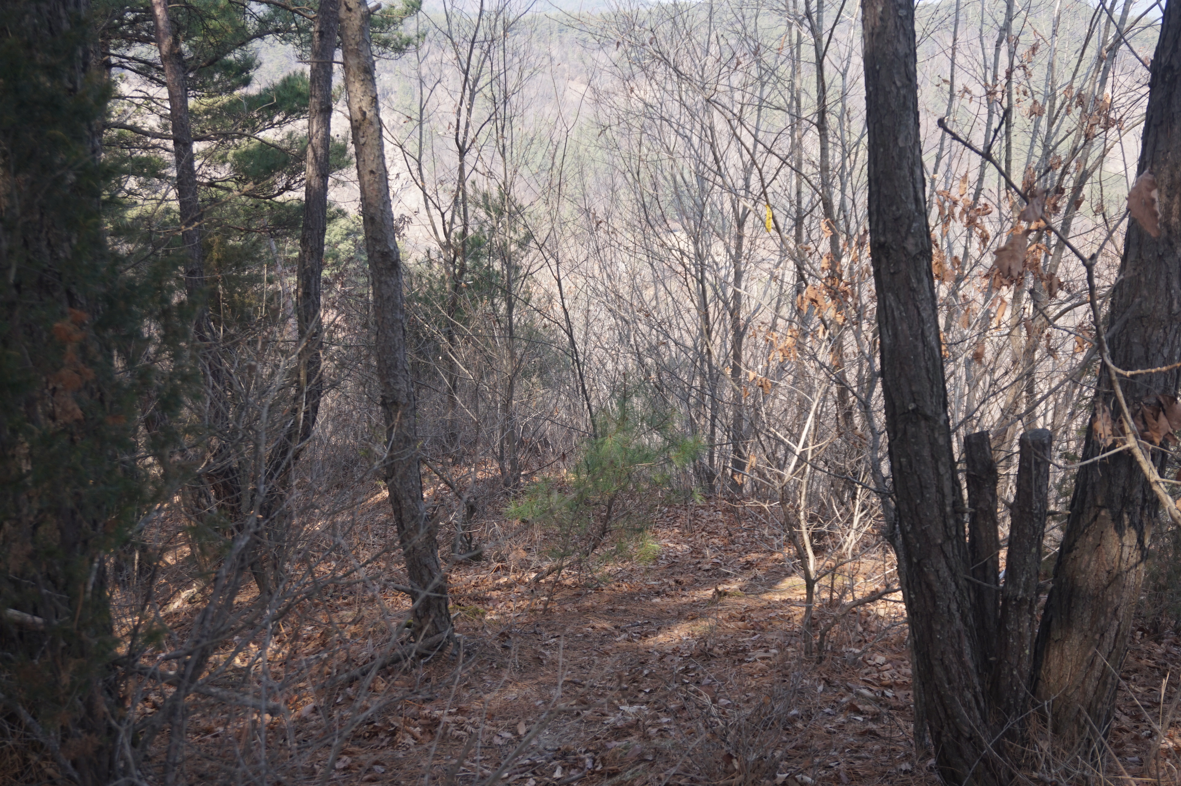 내리막길은 생각보다 급경사이고, 낙엽으로 인해서 상당히 미끄럽다.