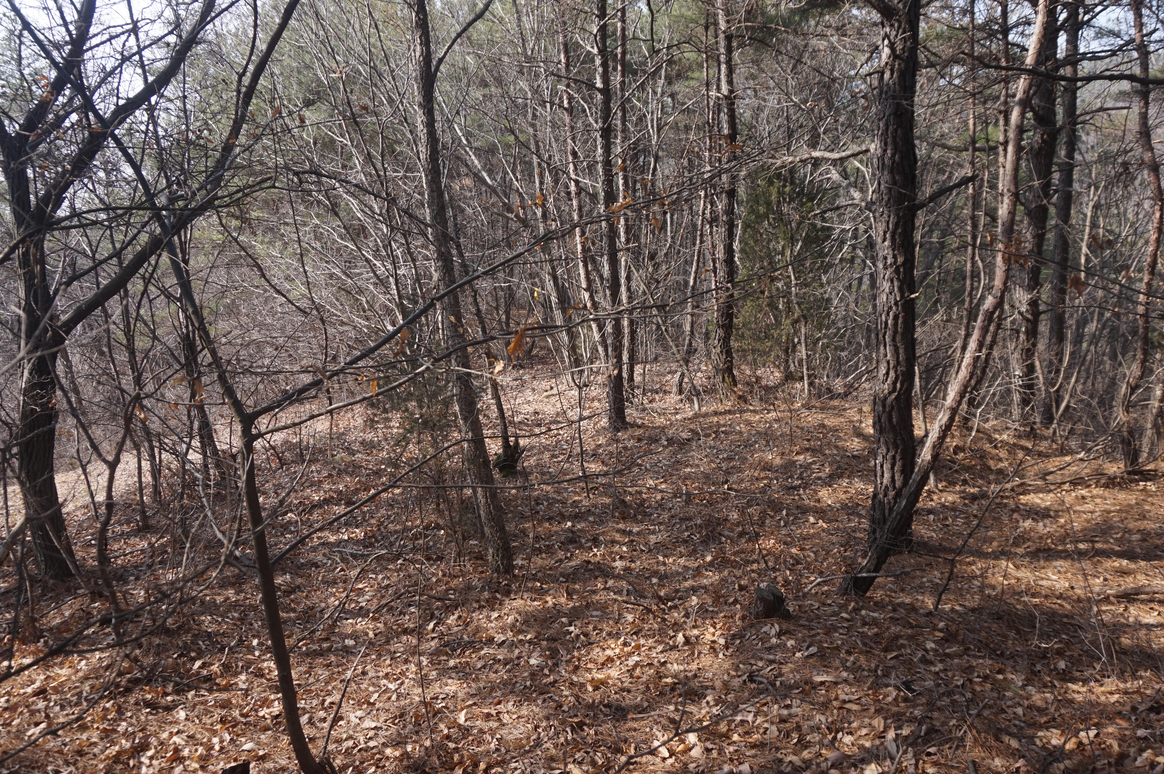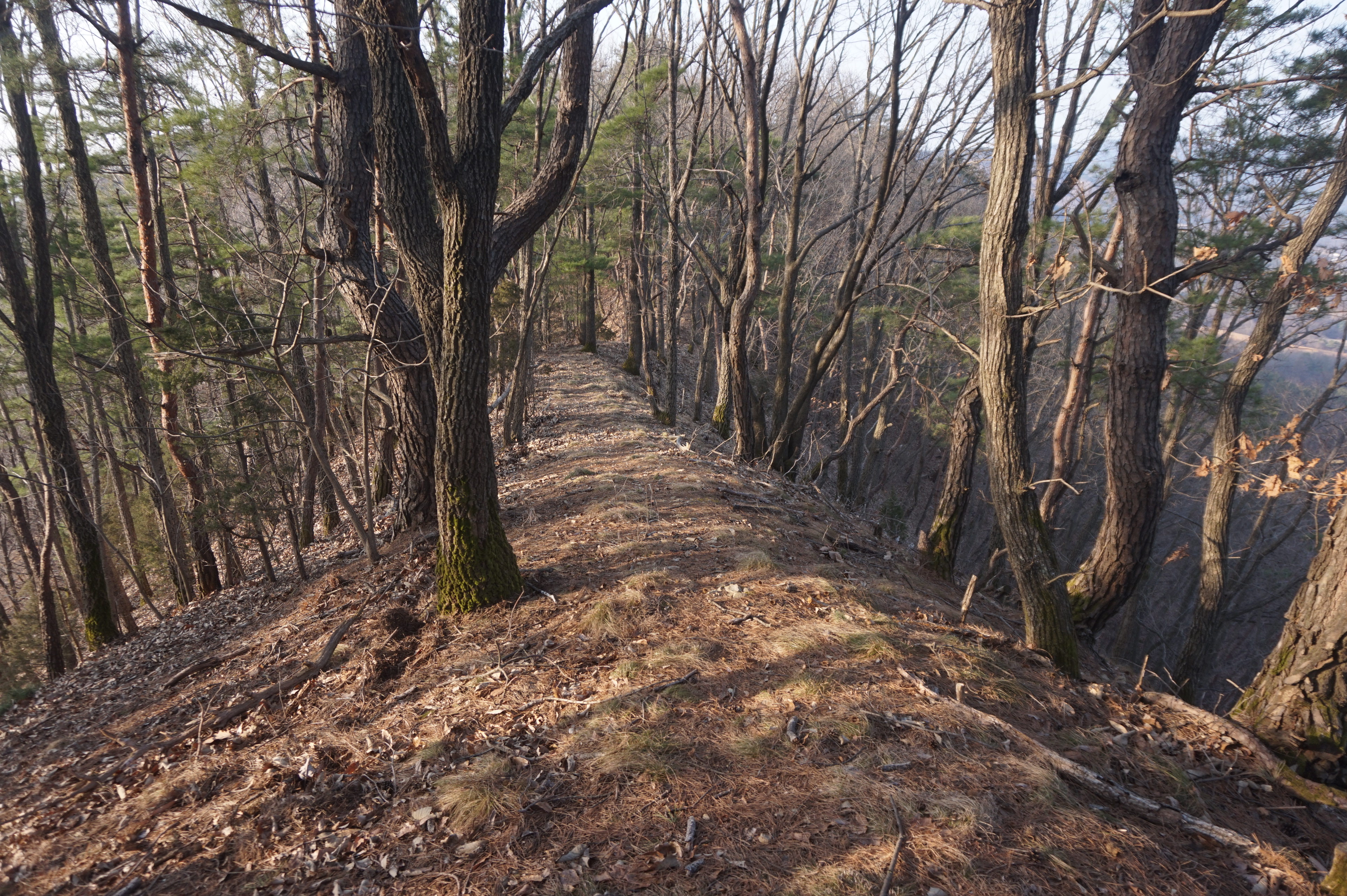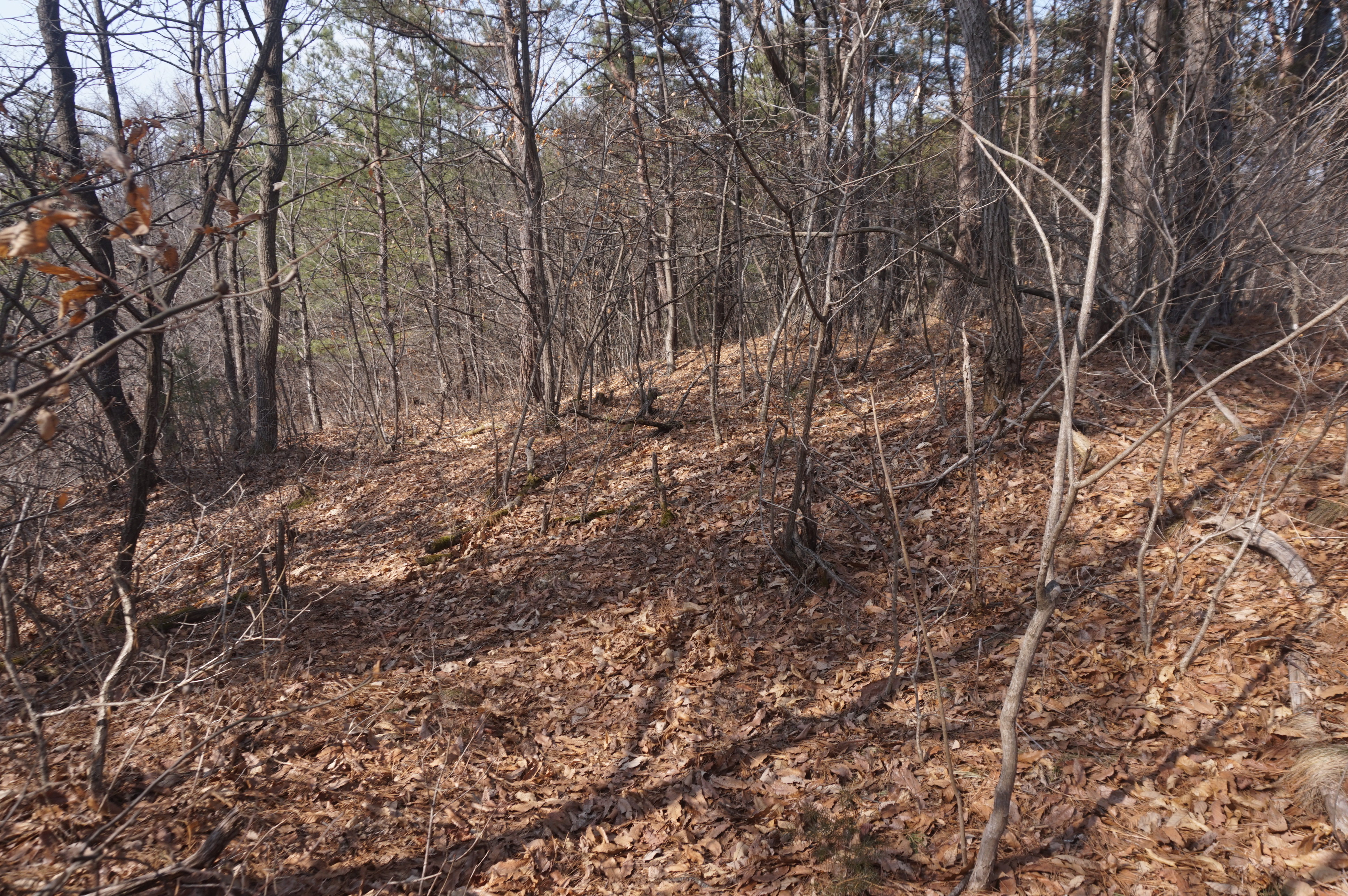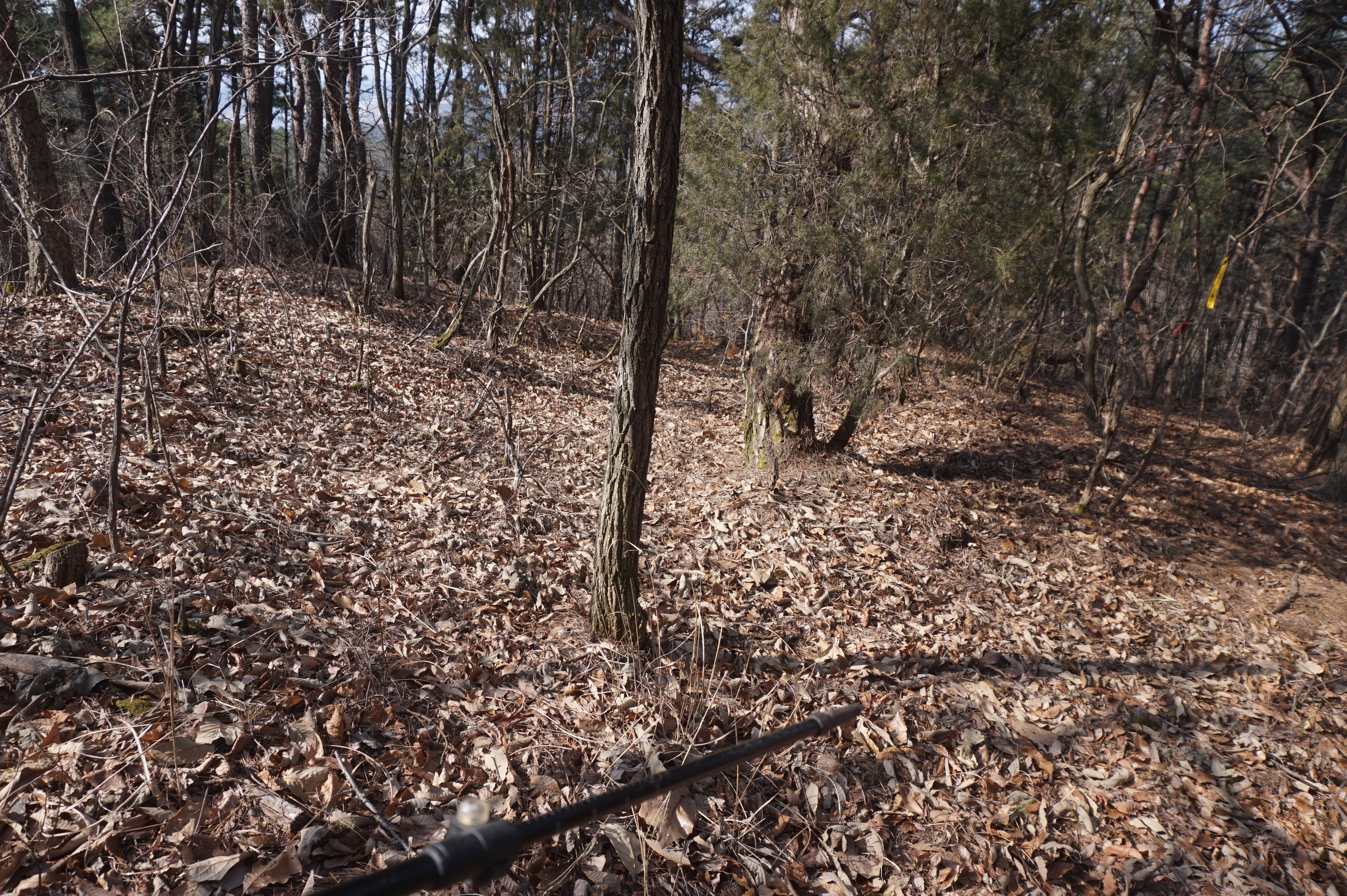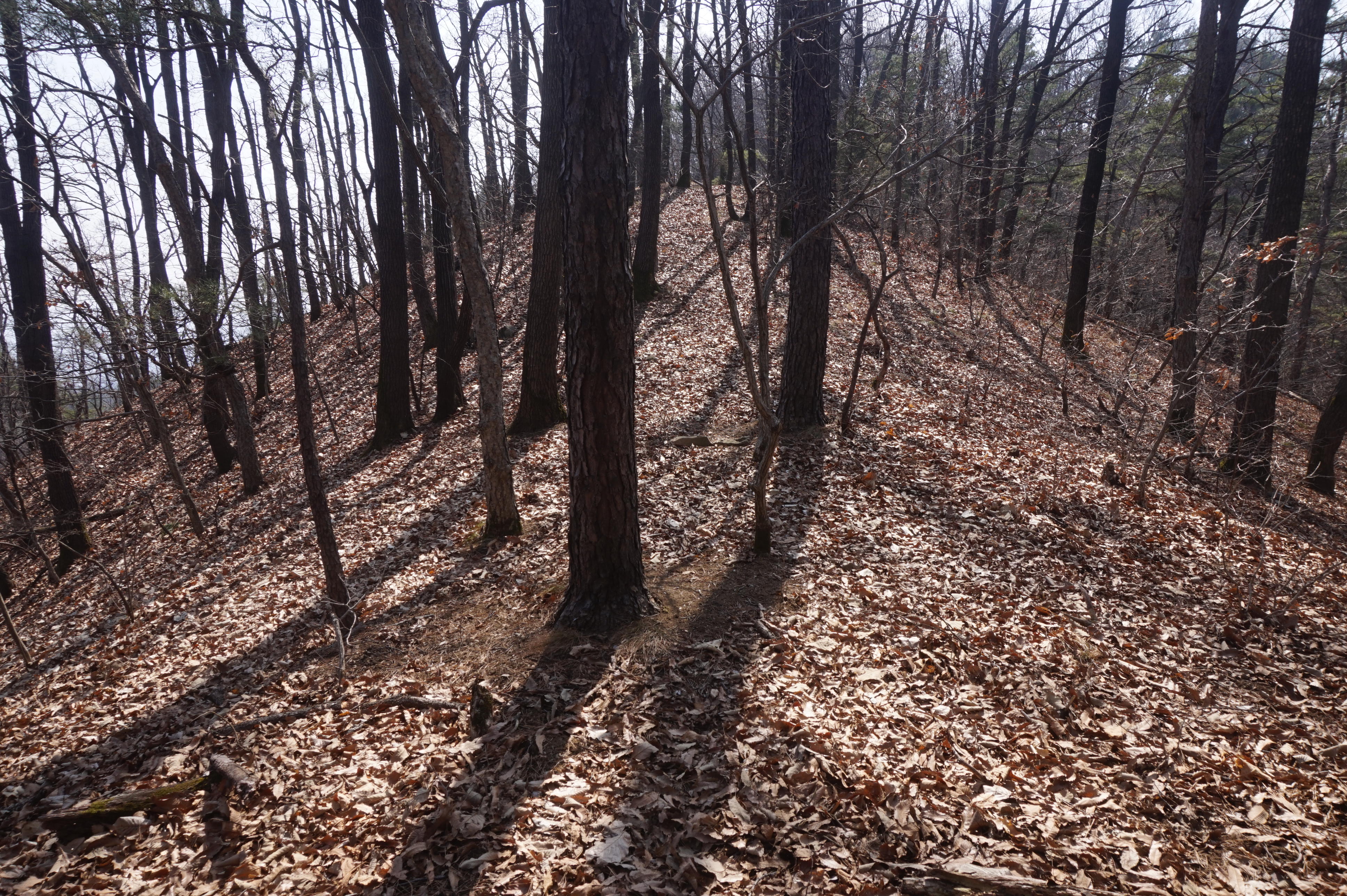 내리막길은 생각보다 급경사이고, 낙엽으로 인해서 상당히 미끄럽다.
