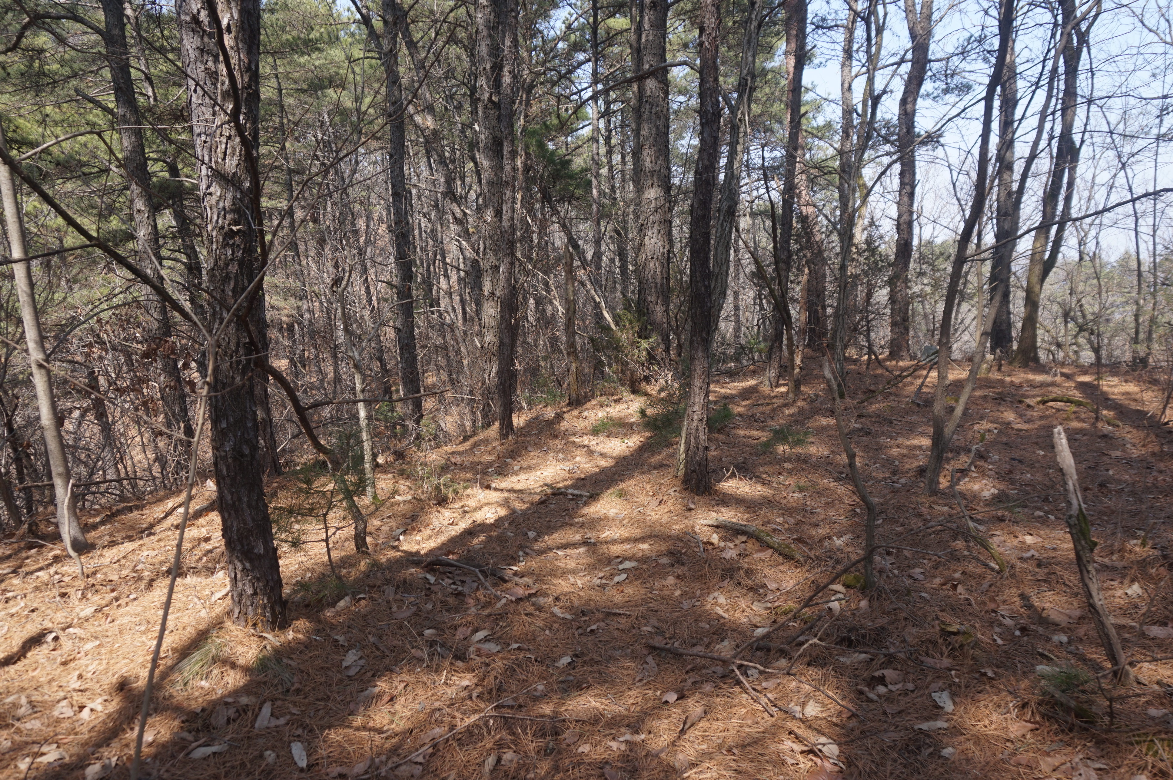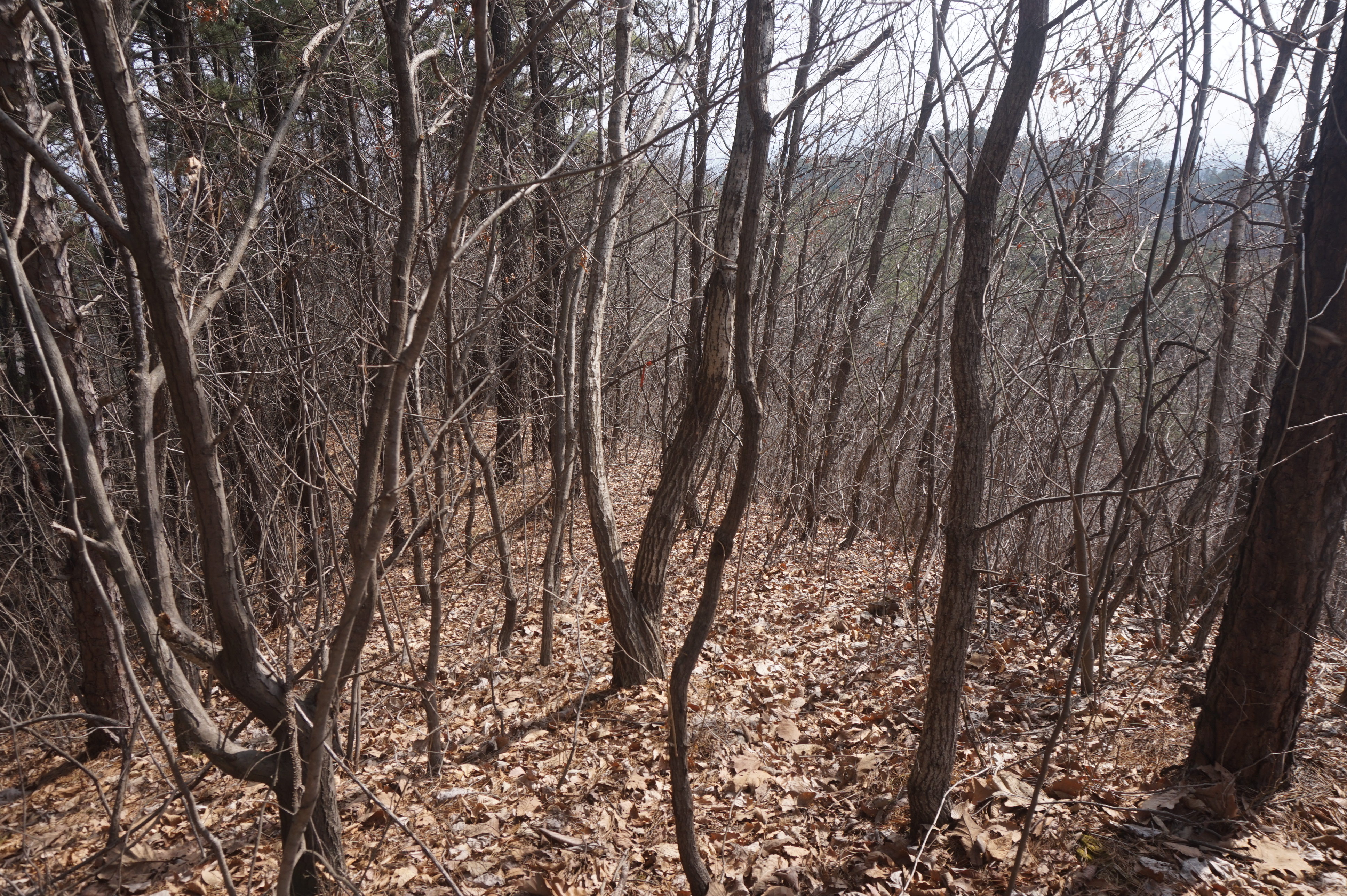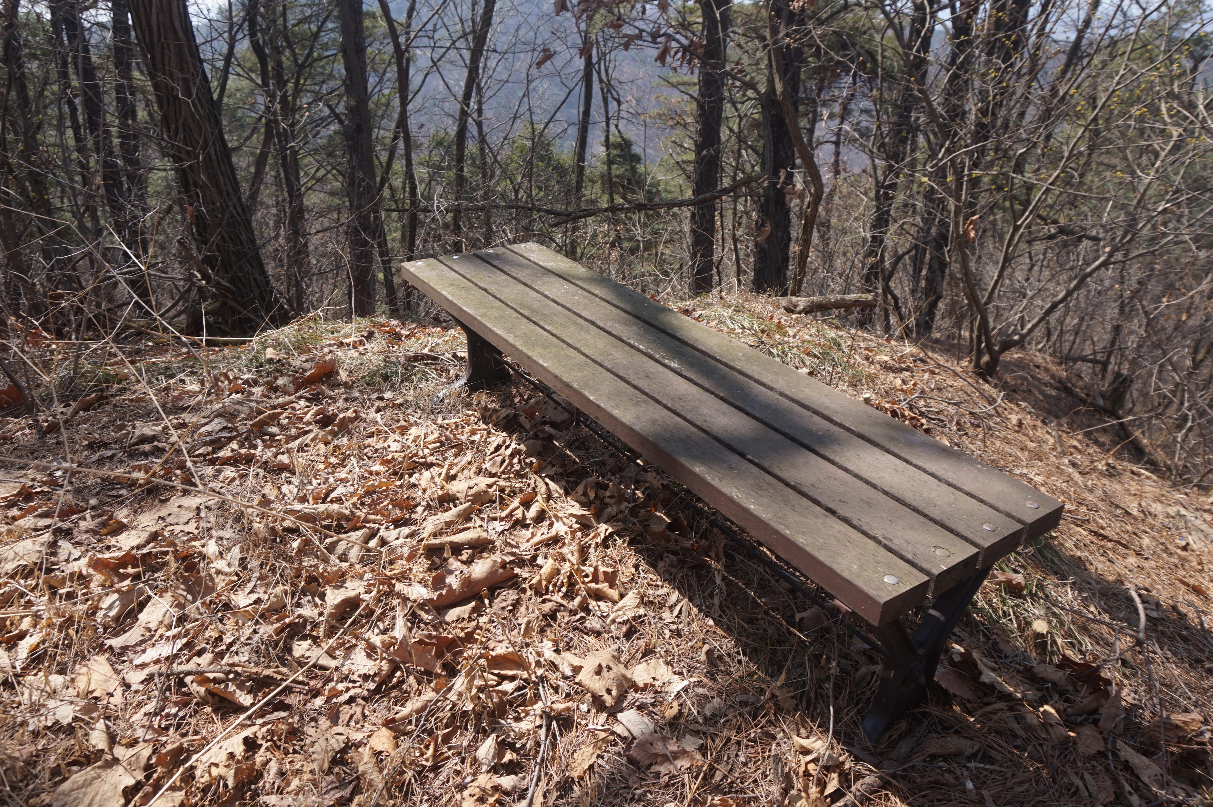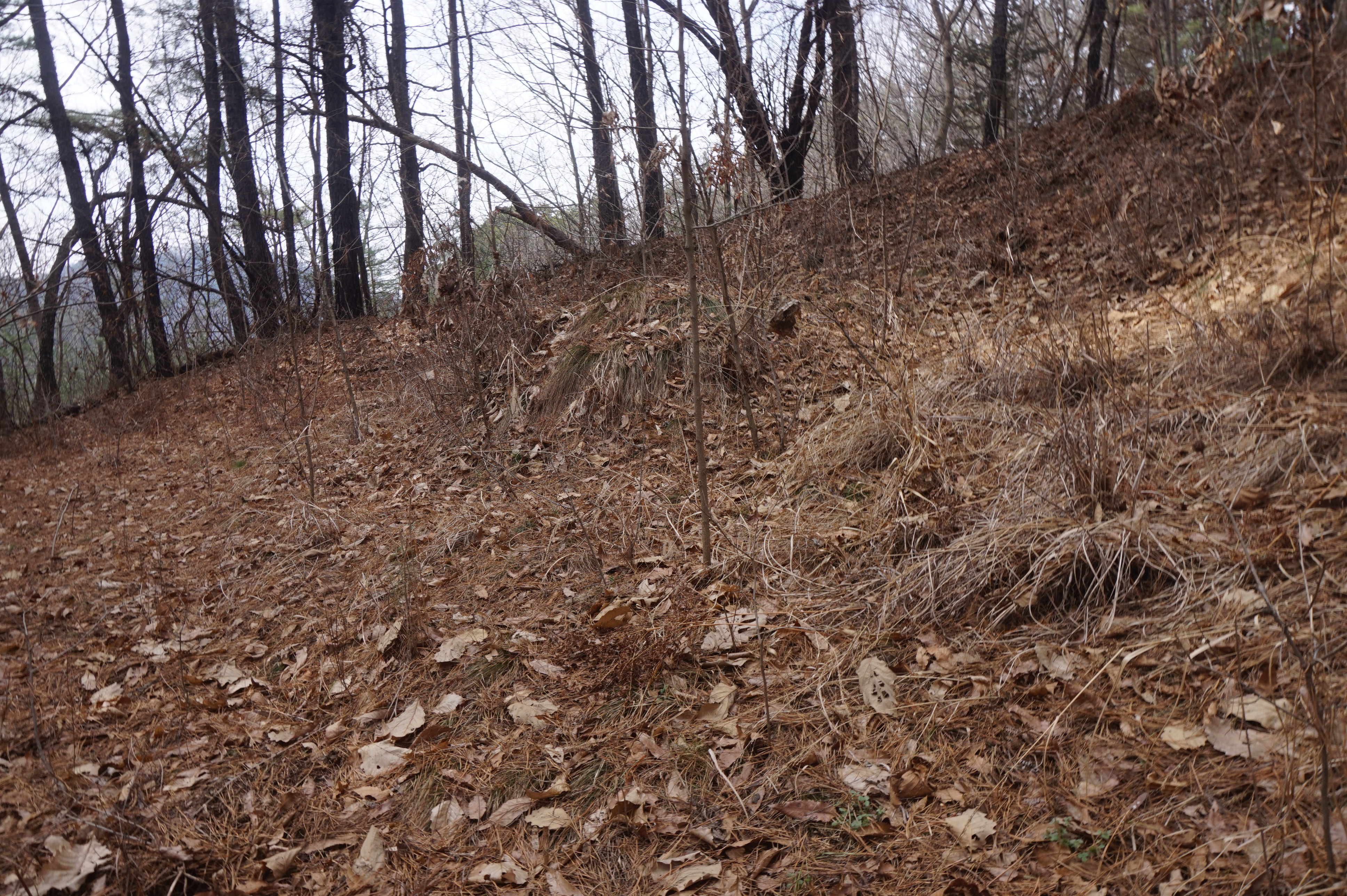 내리막길은 생각보다 급경사이고, 낙엽으로 인해서 상당히 미끄럽다.