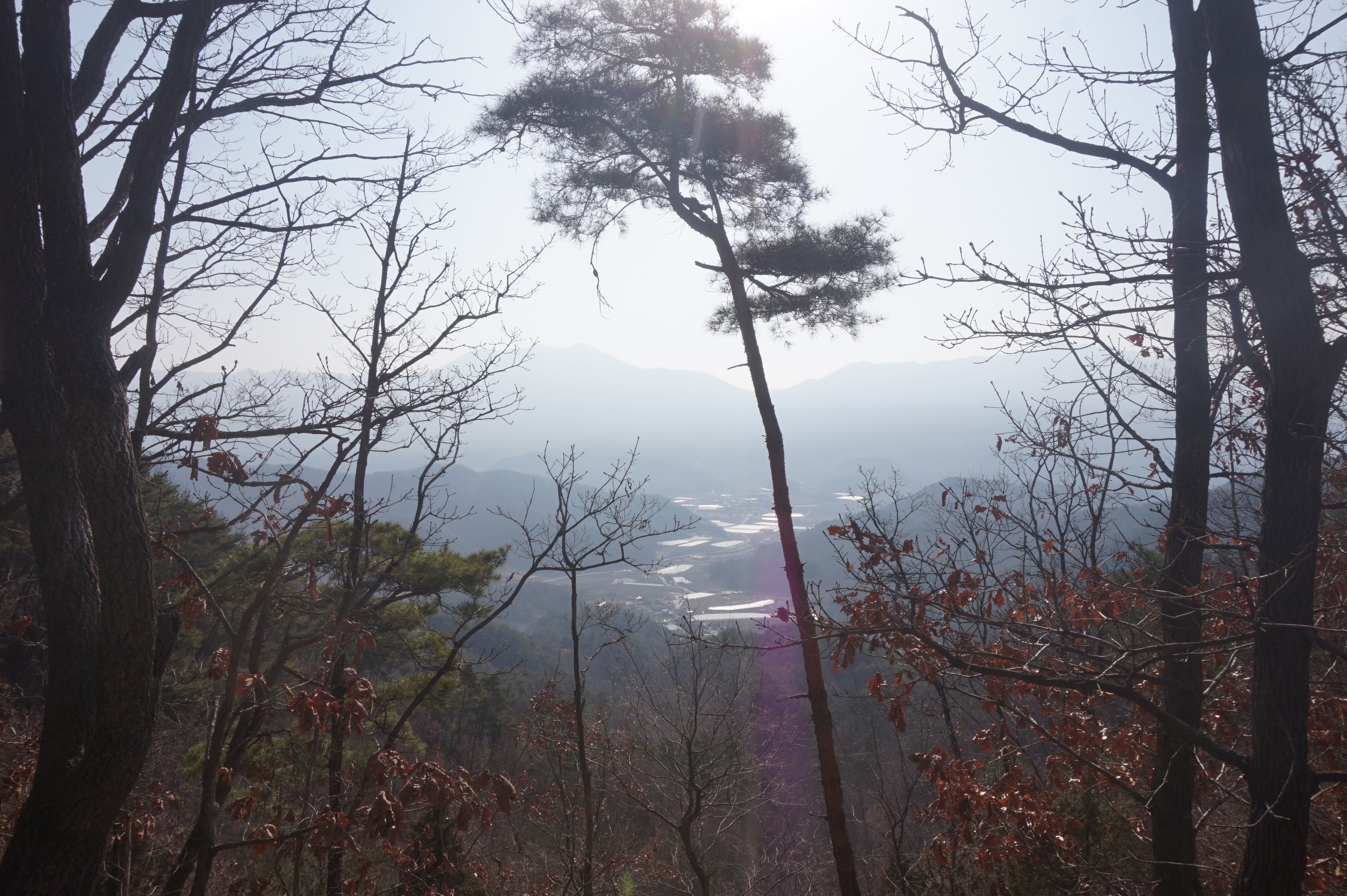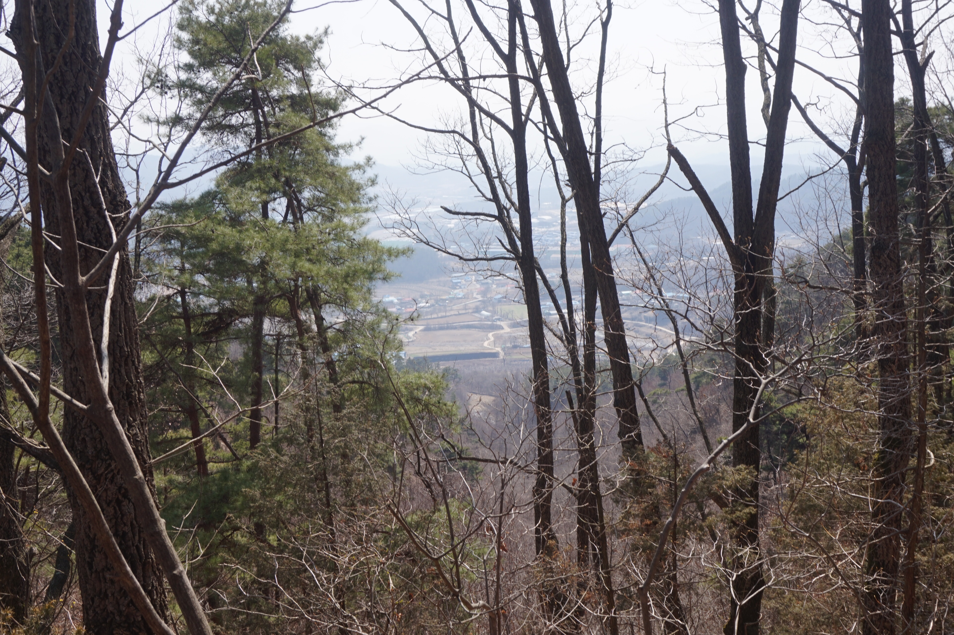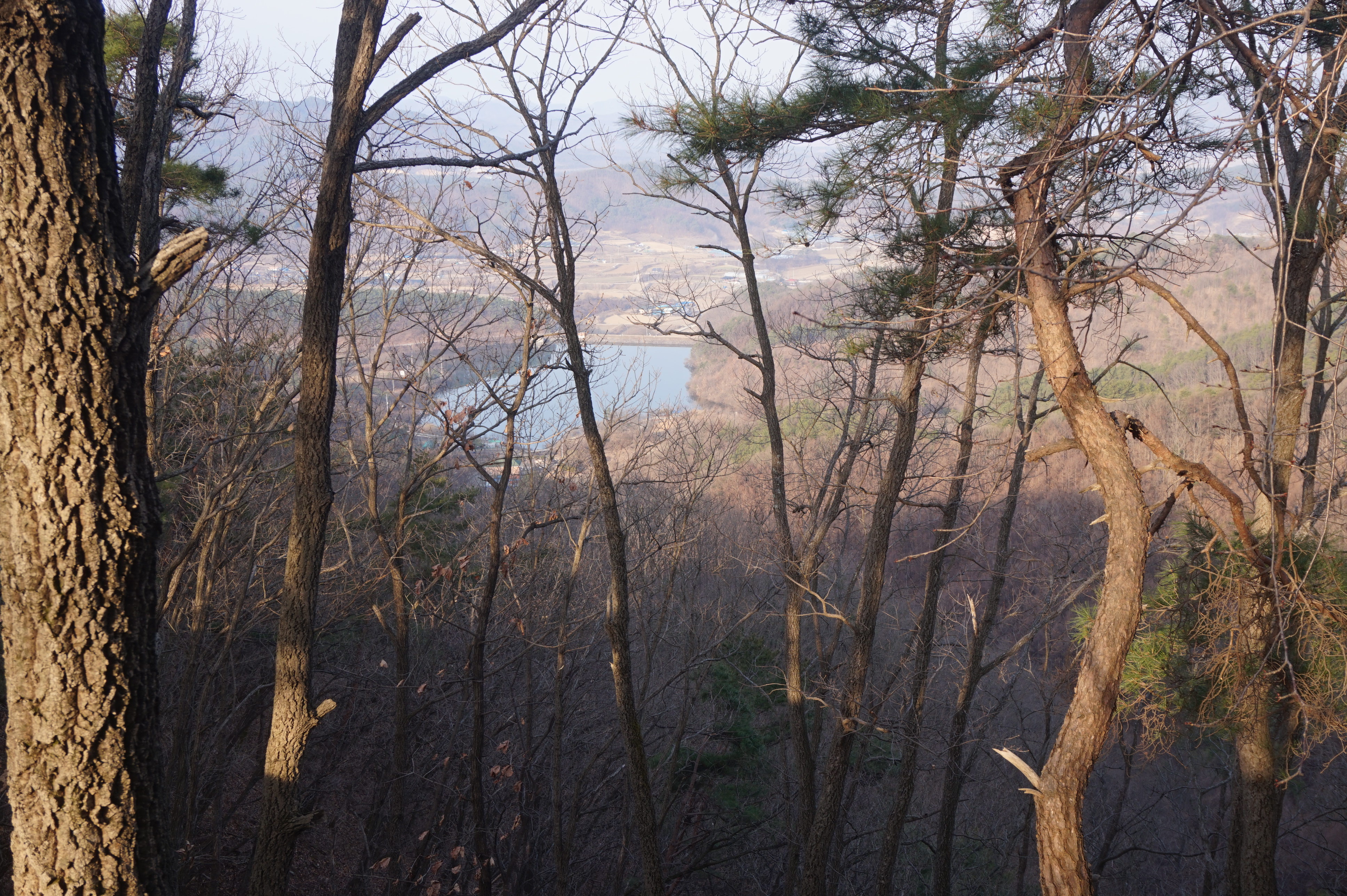 한곡리가 나뭇가지 사이로 보이는데 축사가 있는지