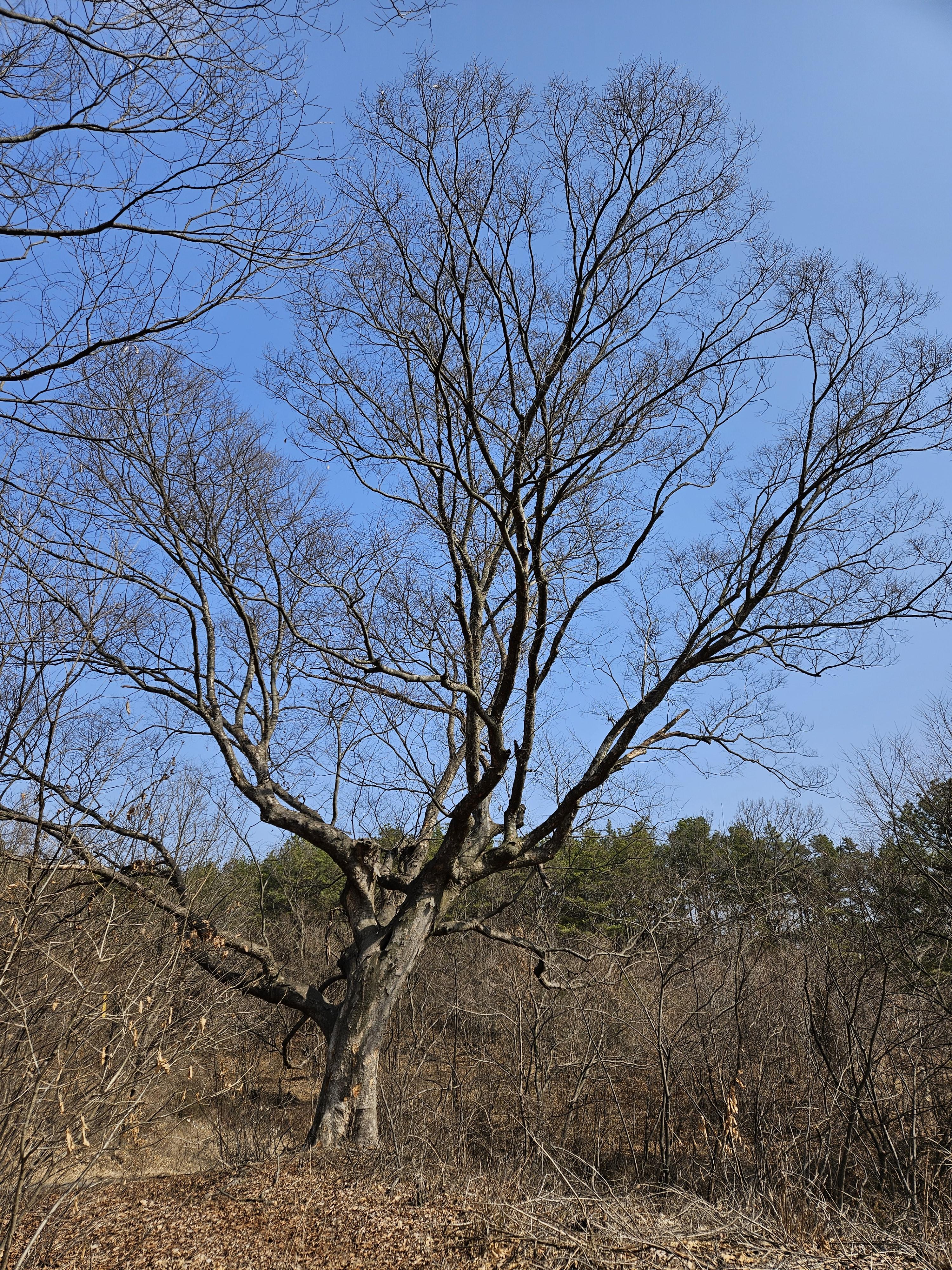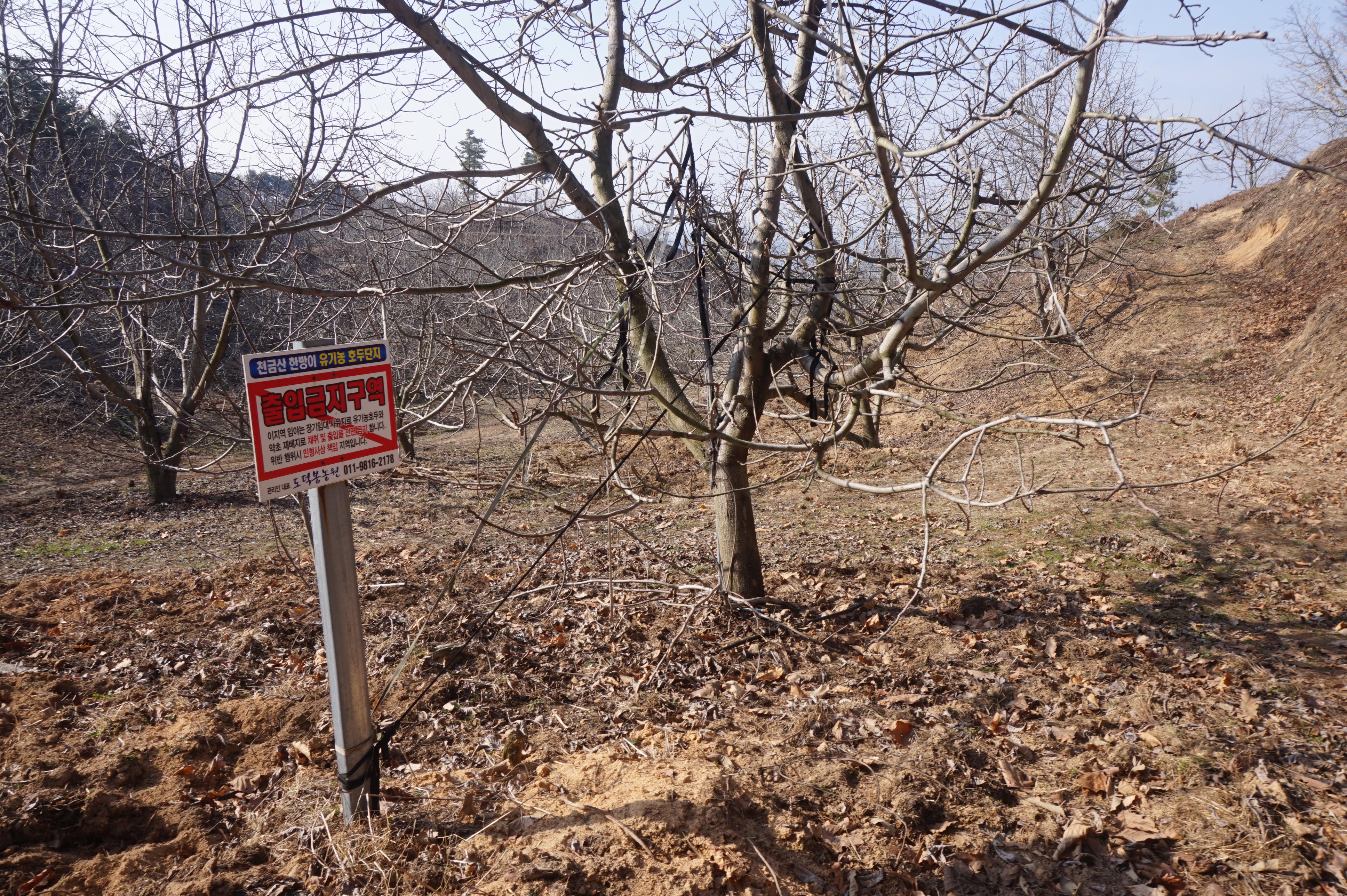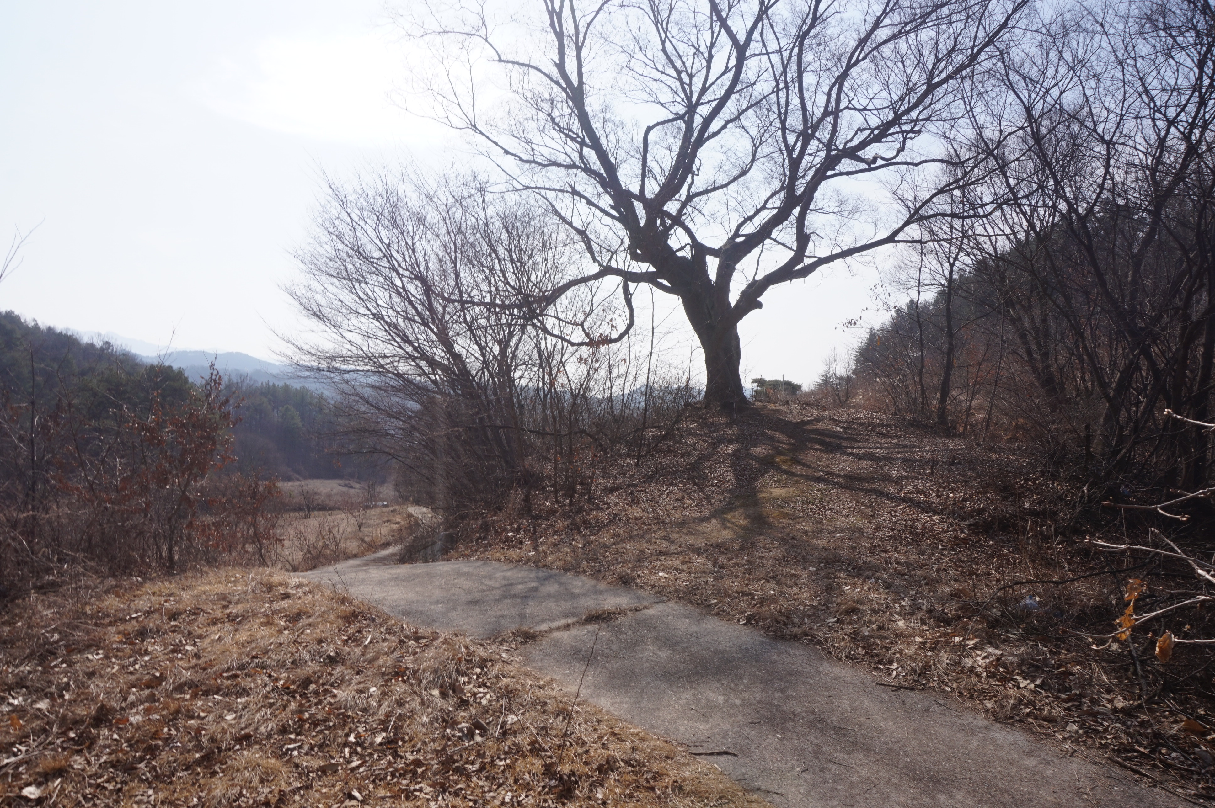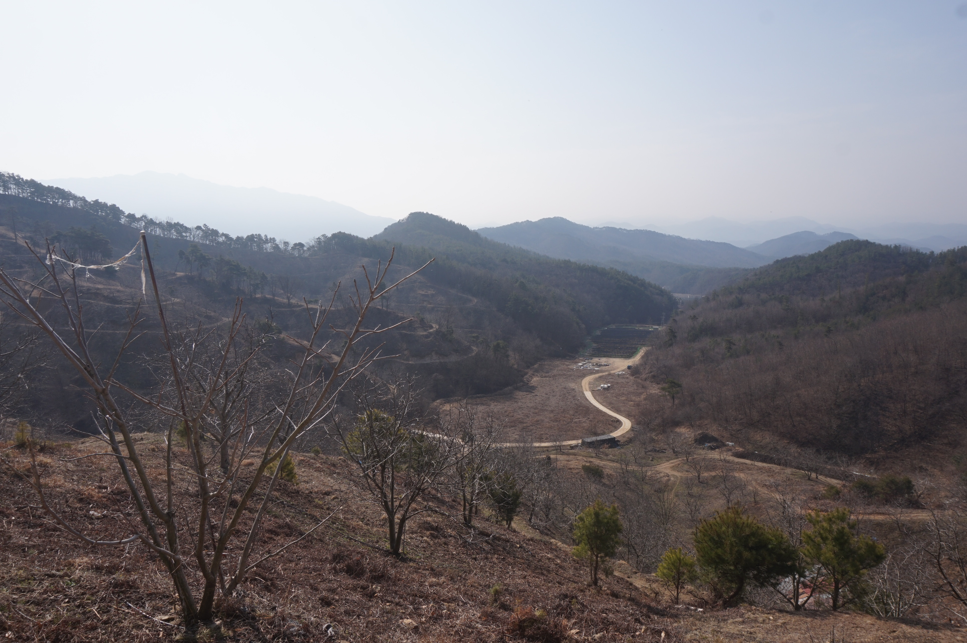 한곡리가 나뭇가지 사이로 보이는데 축사가 있는지