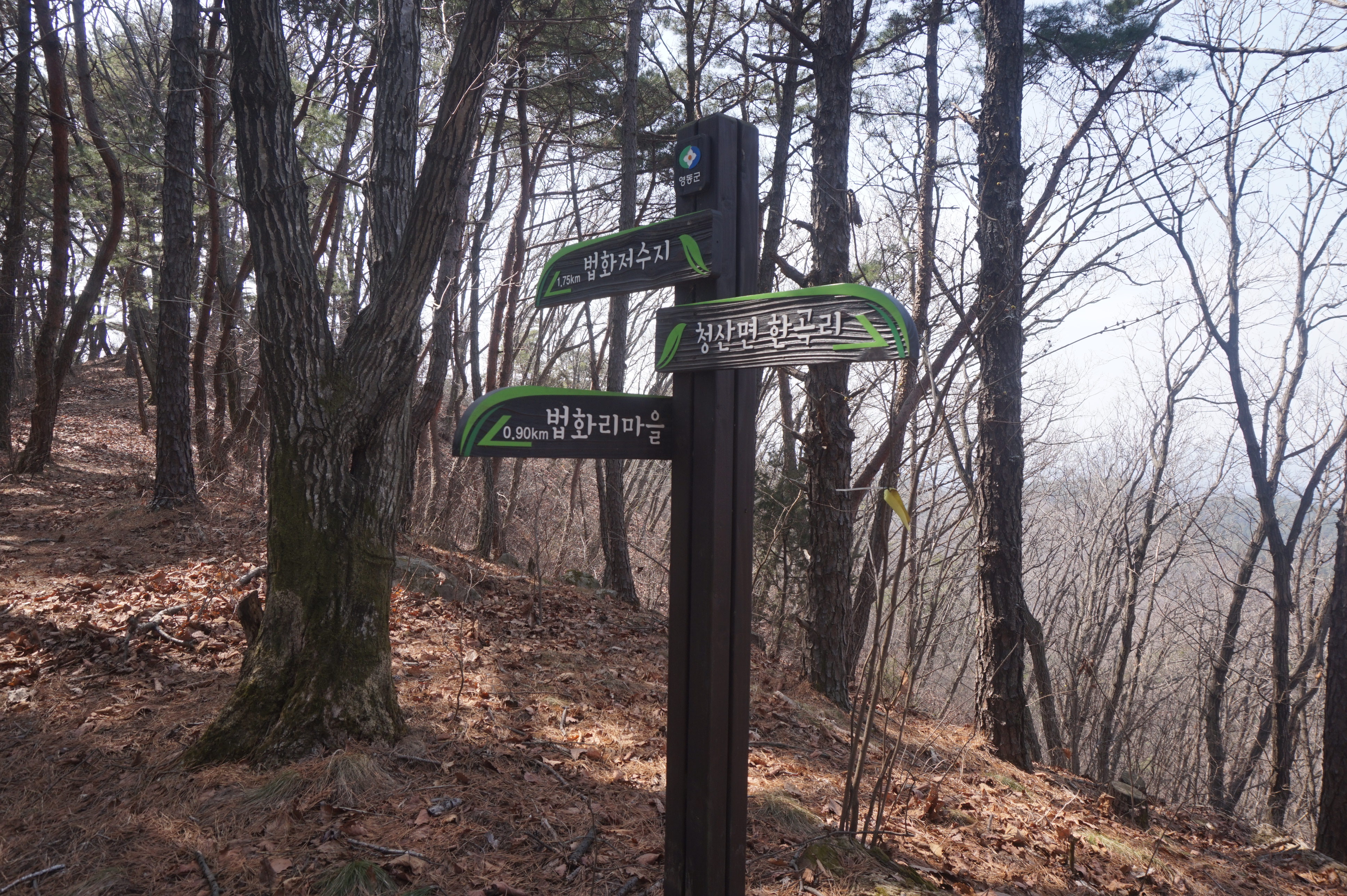 이곳에서 맥길은 좌측으로 확 꺽어져 내려가는데 우측은 충북 옥천군