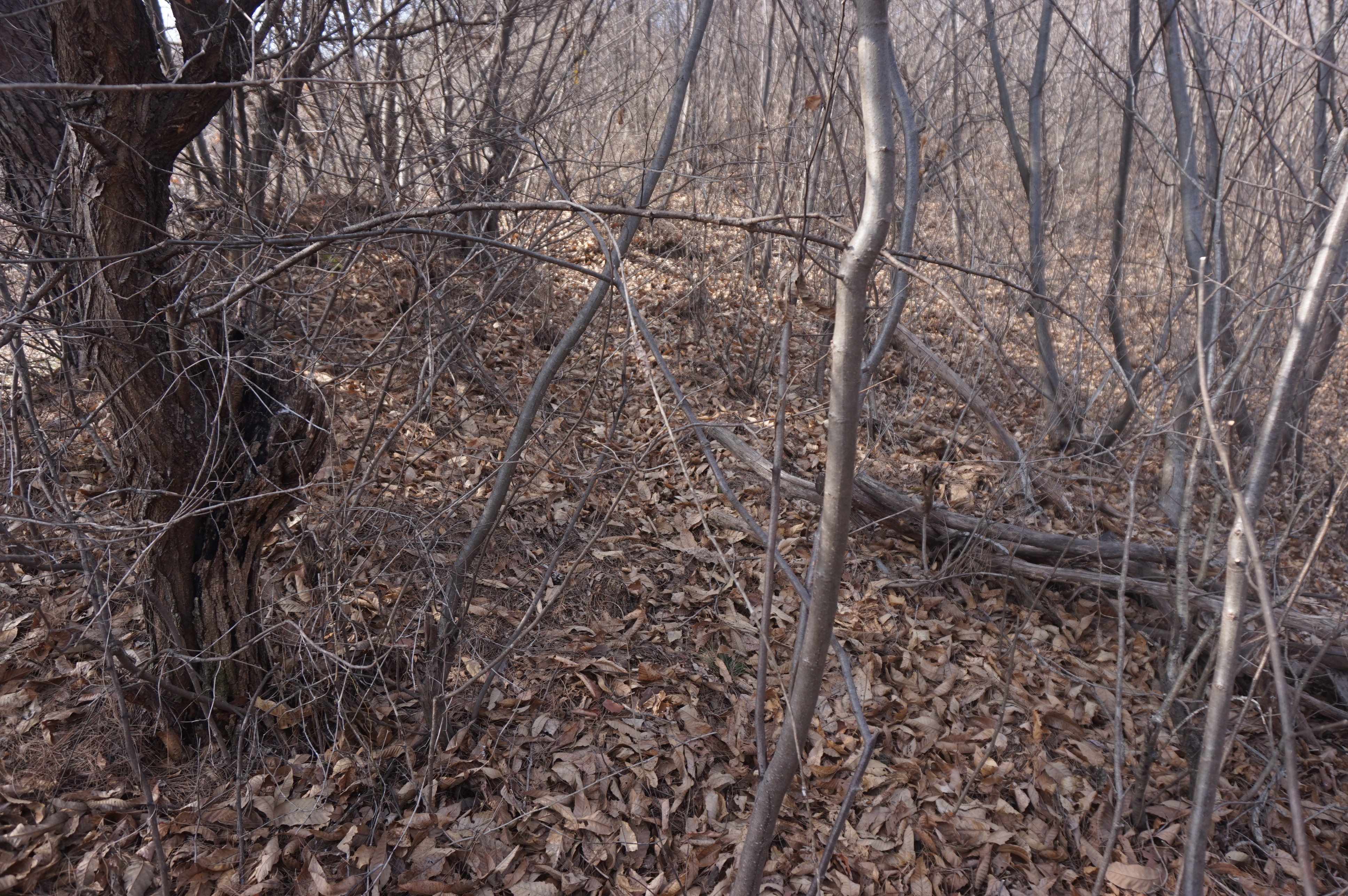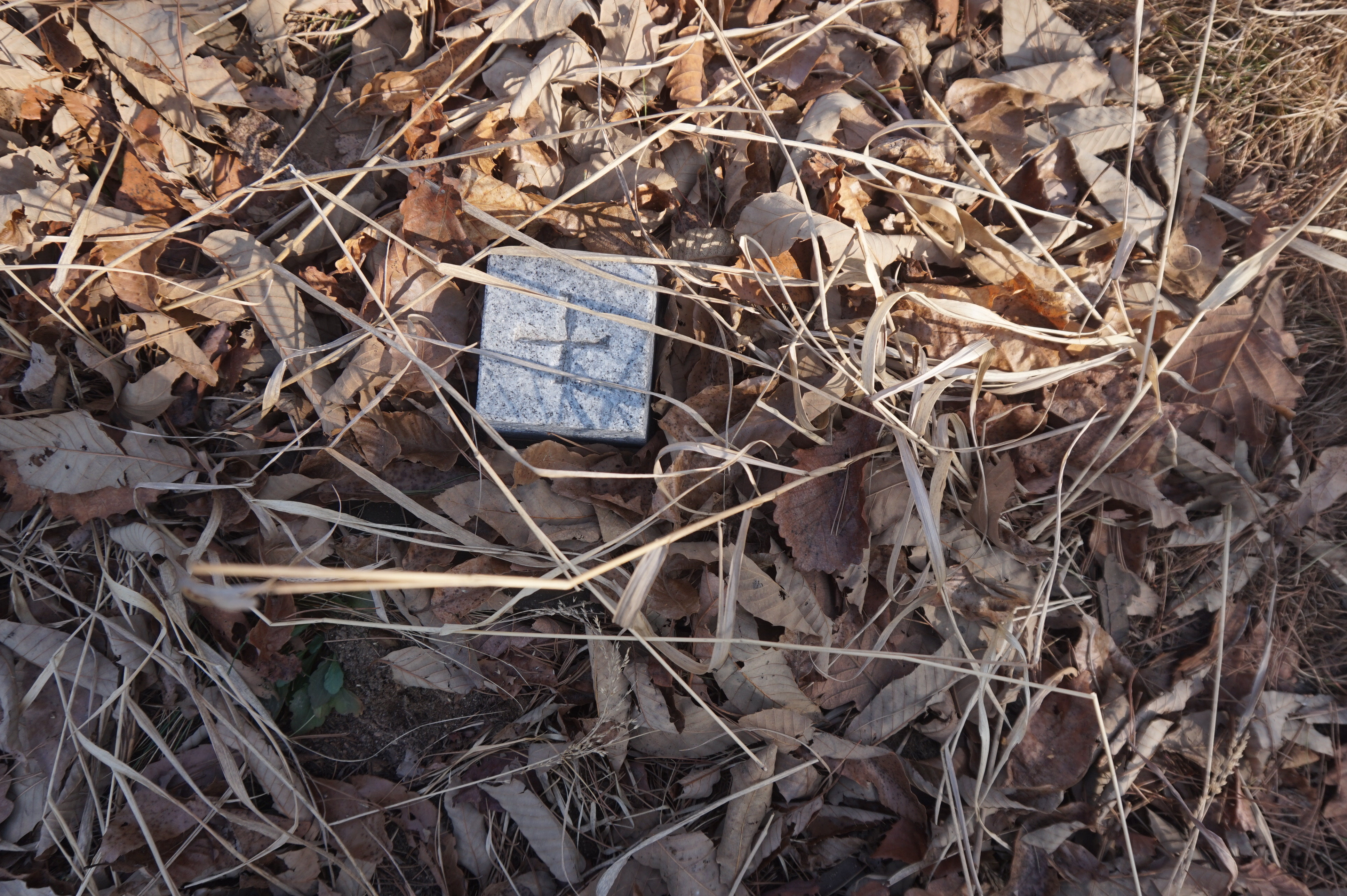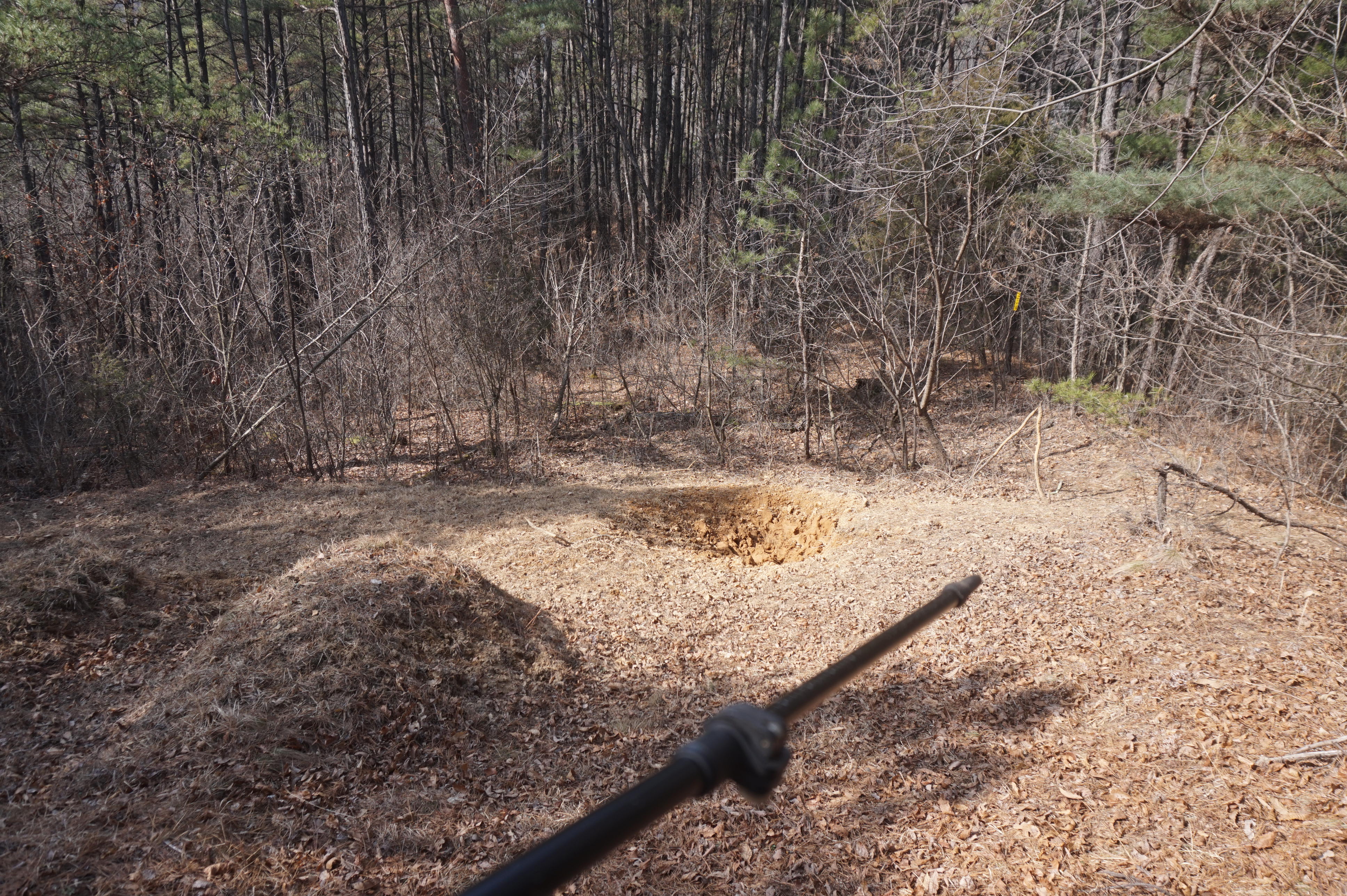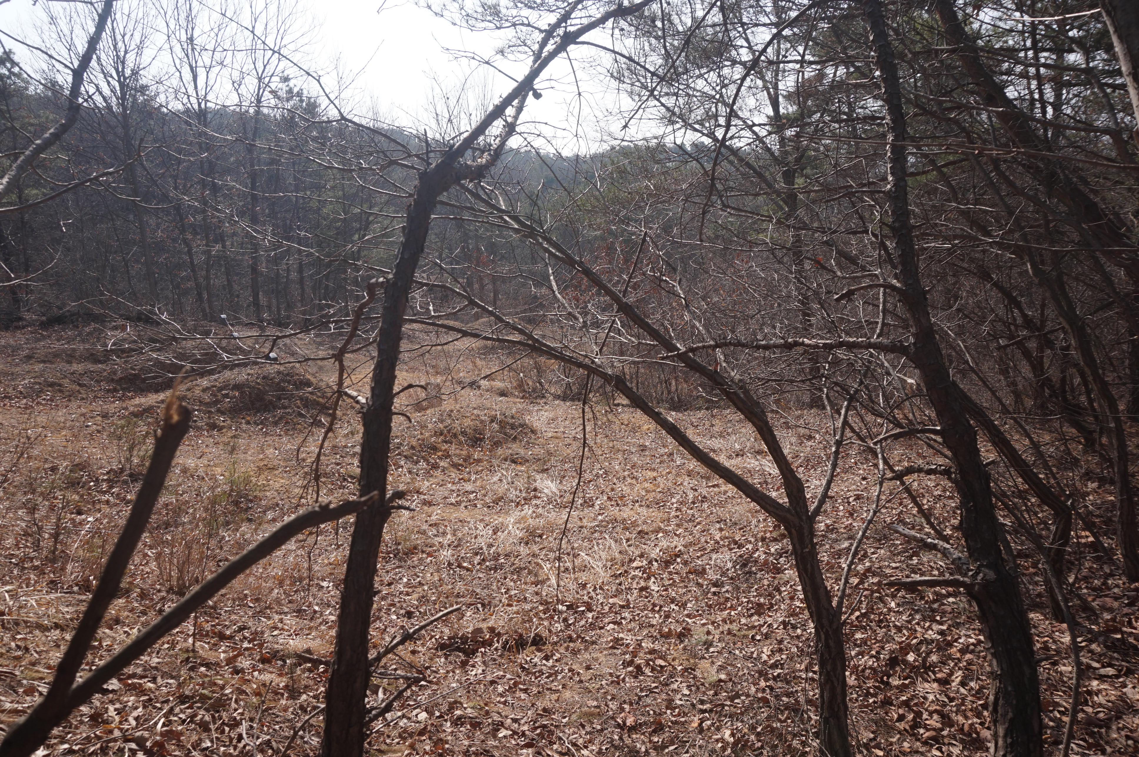이장을 한 묘지의 흔적 아래로 내려선다