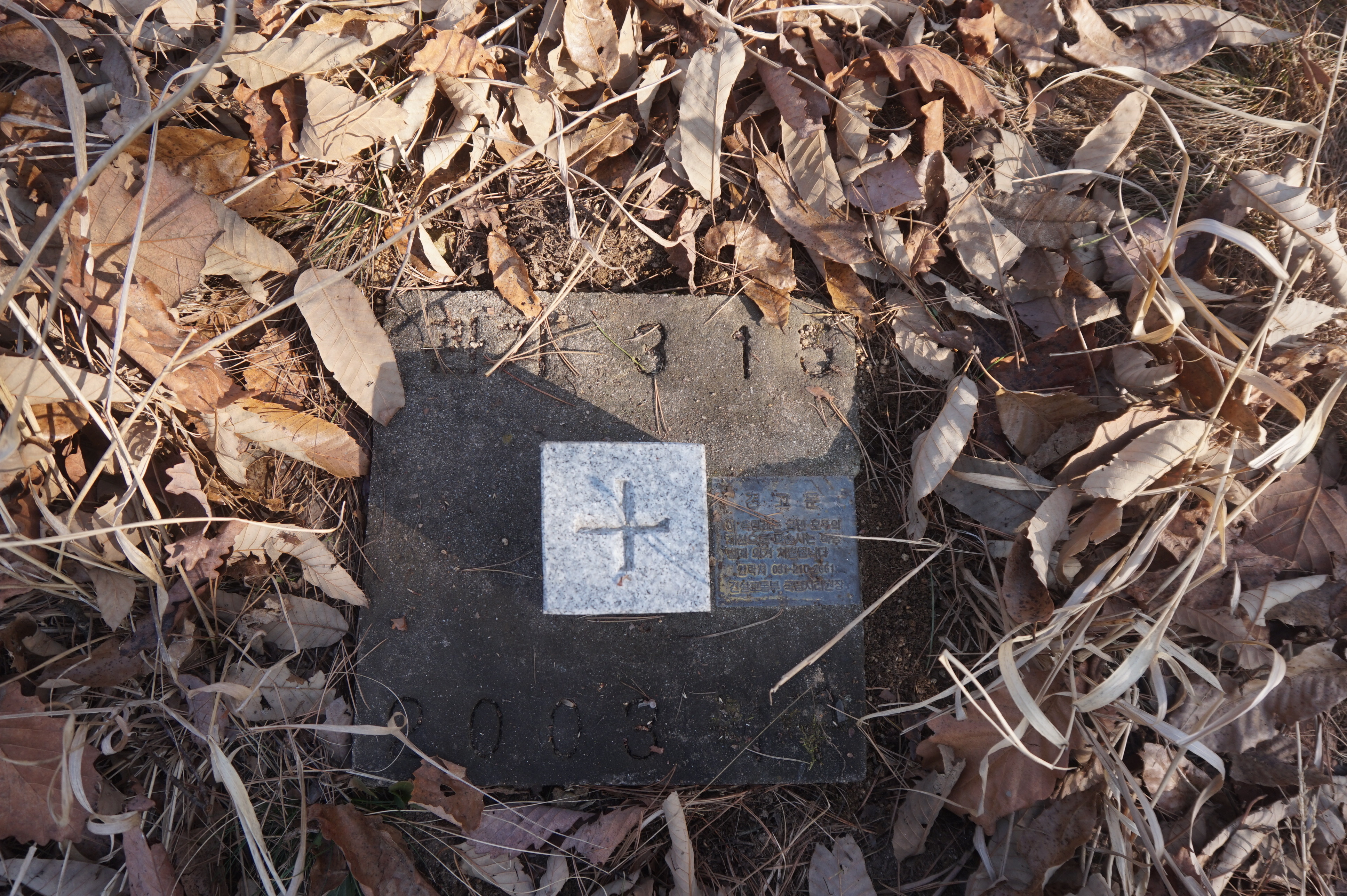 이곳에서 산행을 종료하고 묘지의 상석에 앉아 빵과 두유 하나로