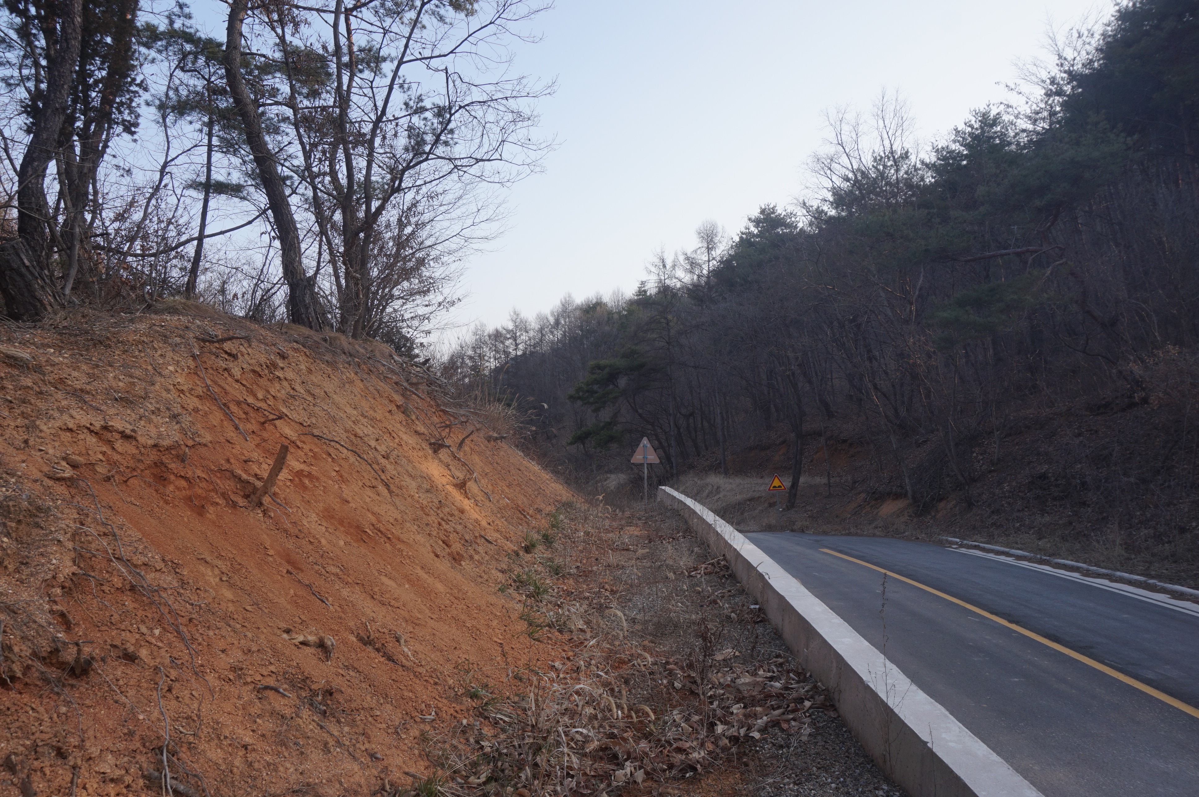 절개지 아래에 도로가 보이는데 지도상의 밤재이다