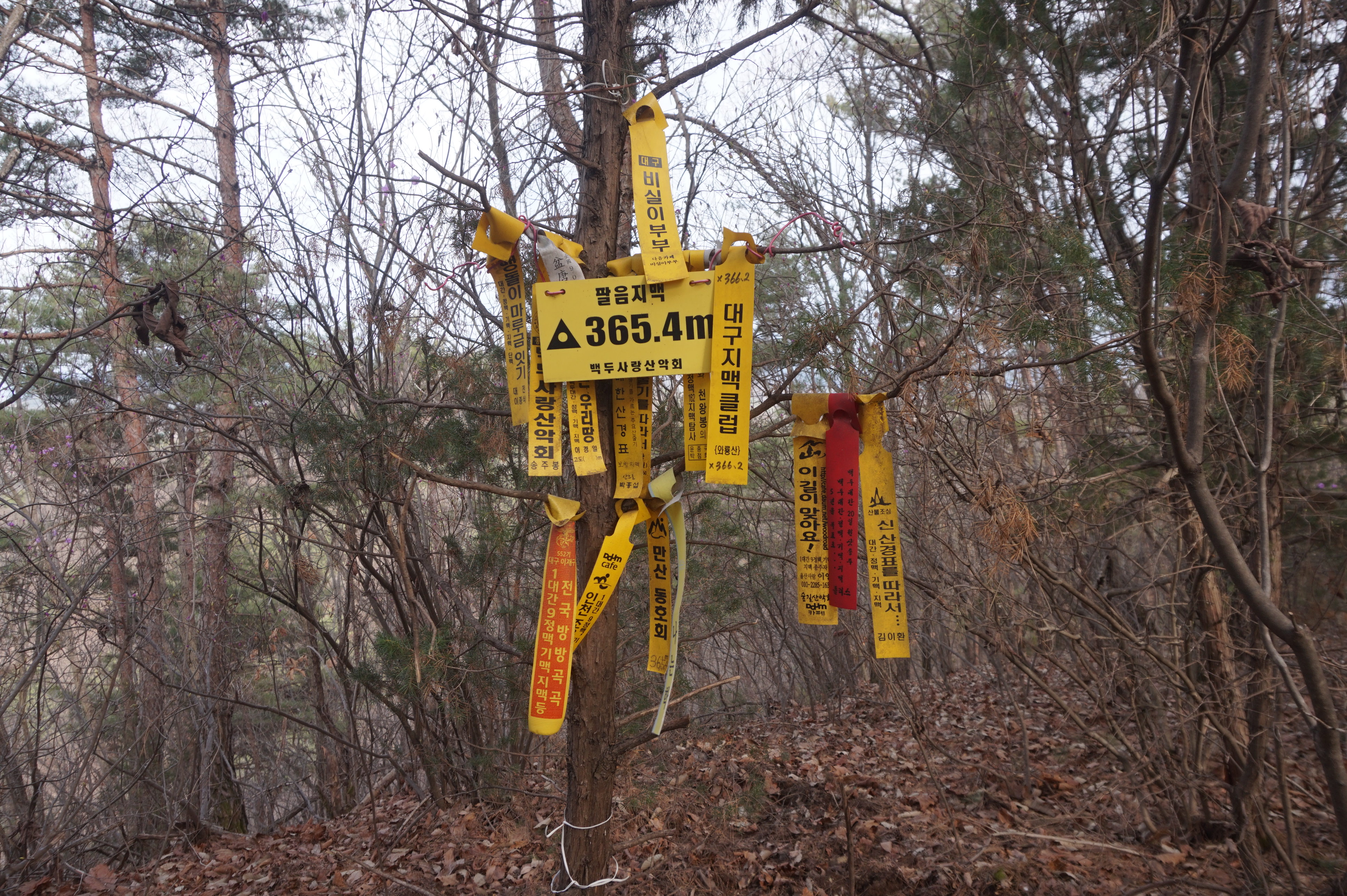 능선에 올라서니 선답자들의 시그널들이 바람에 심하게