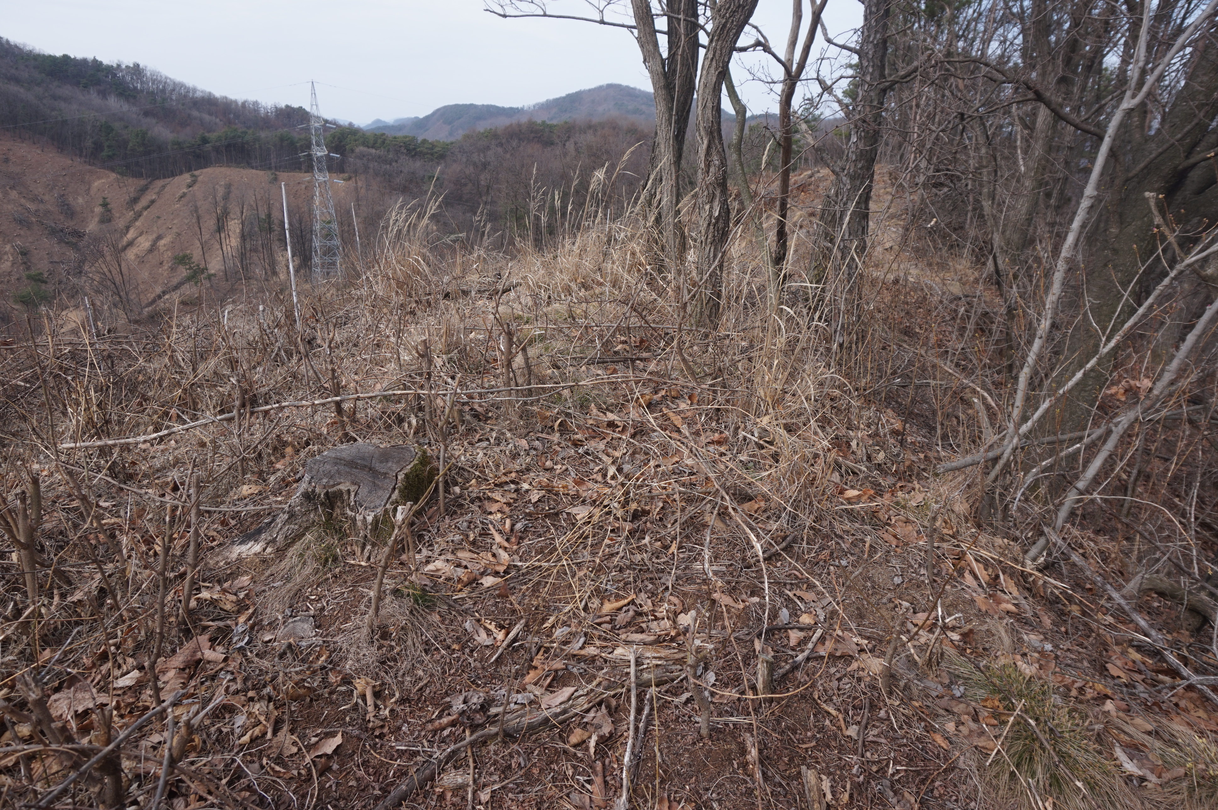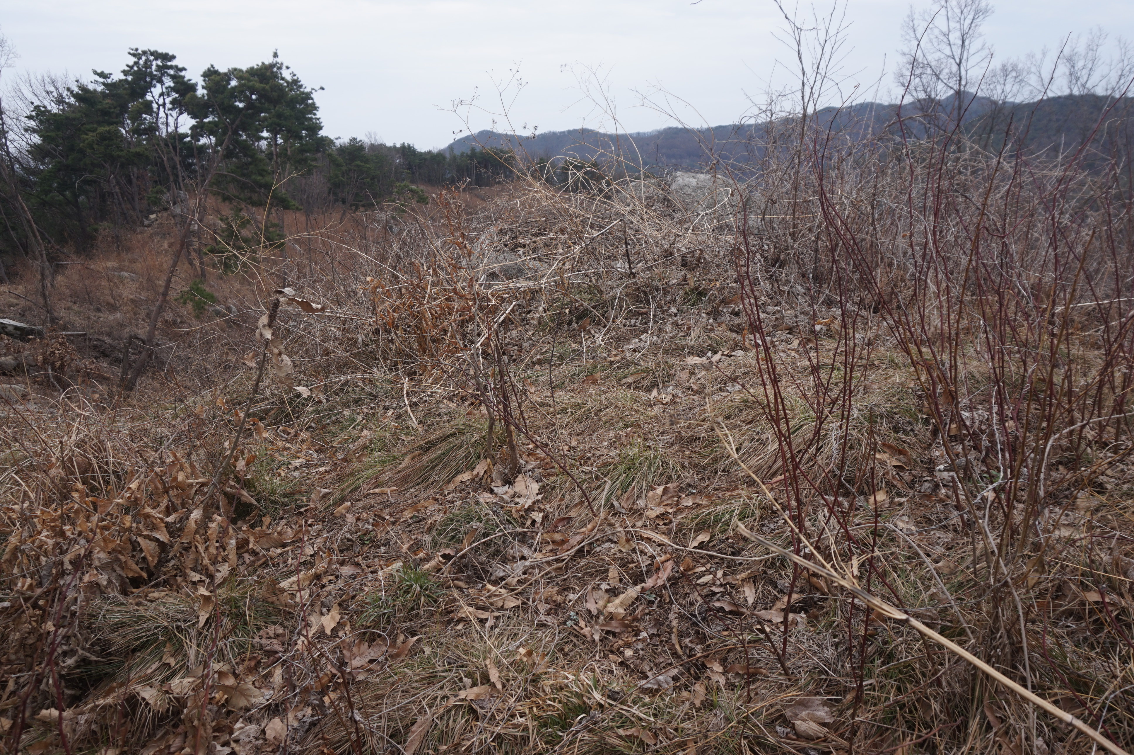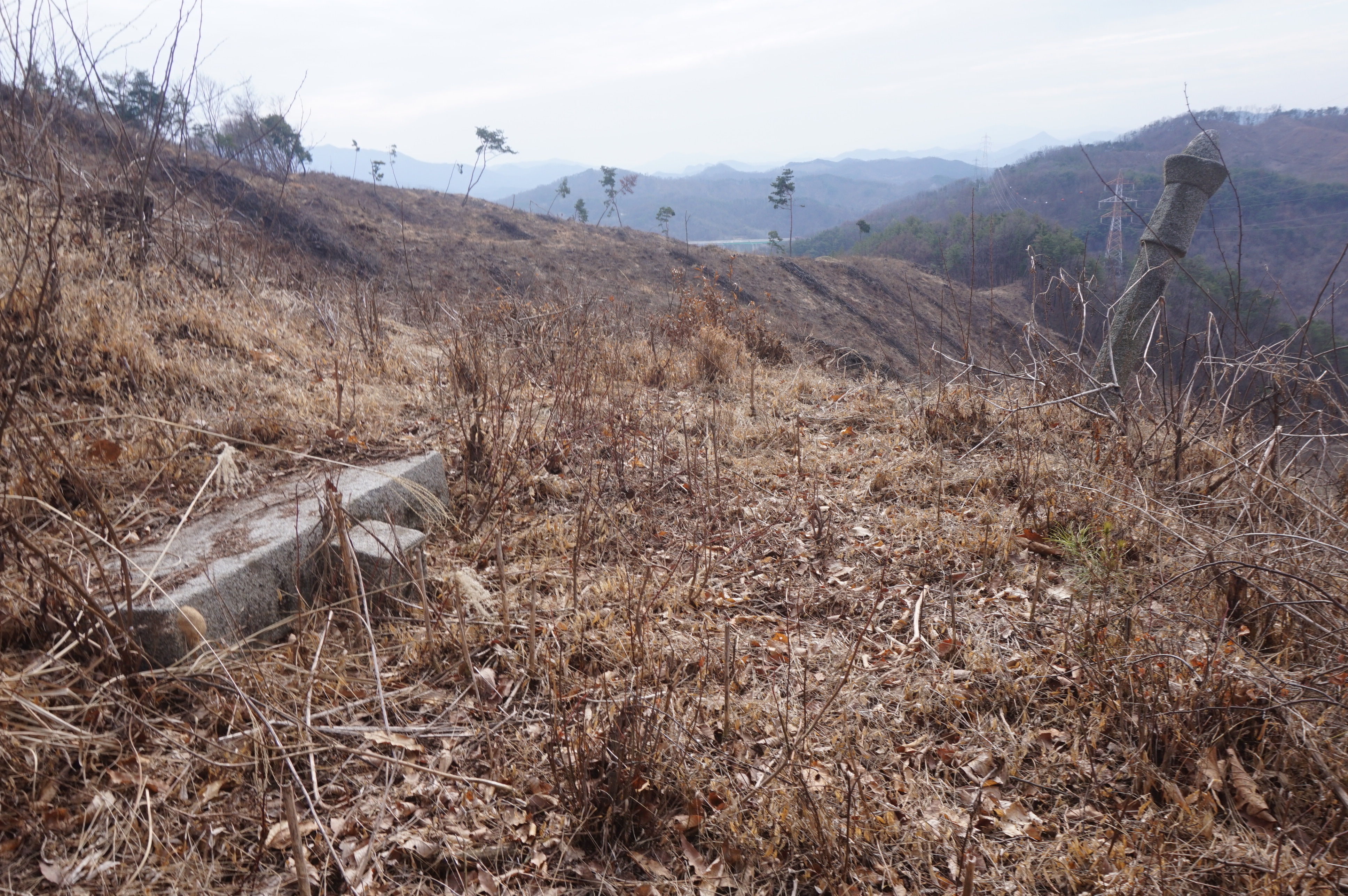 잡풀로 덮인 넓은 공터가 나오는데 아마도 예전에 묘지가 자리잡고