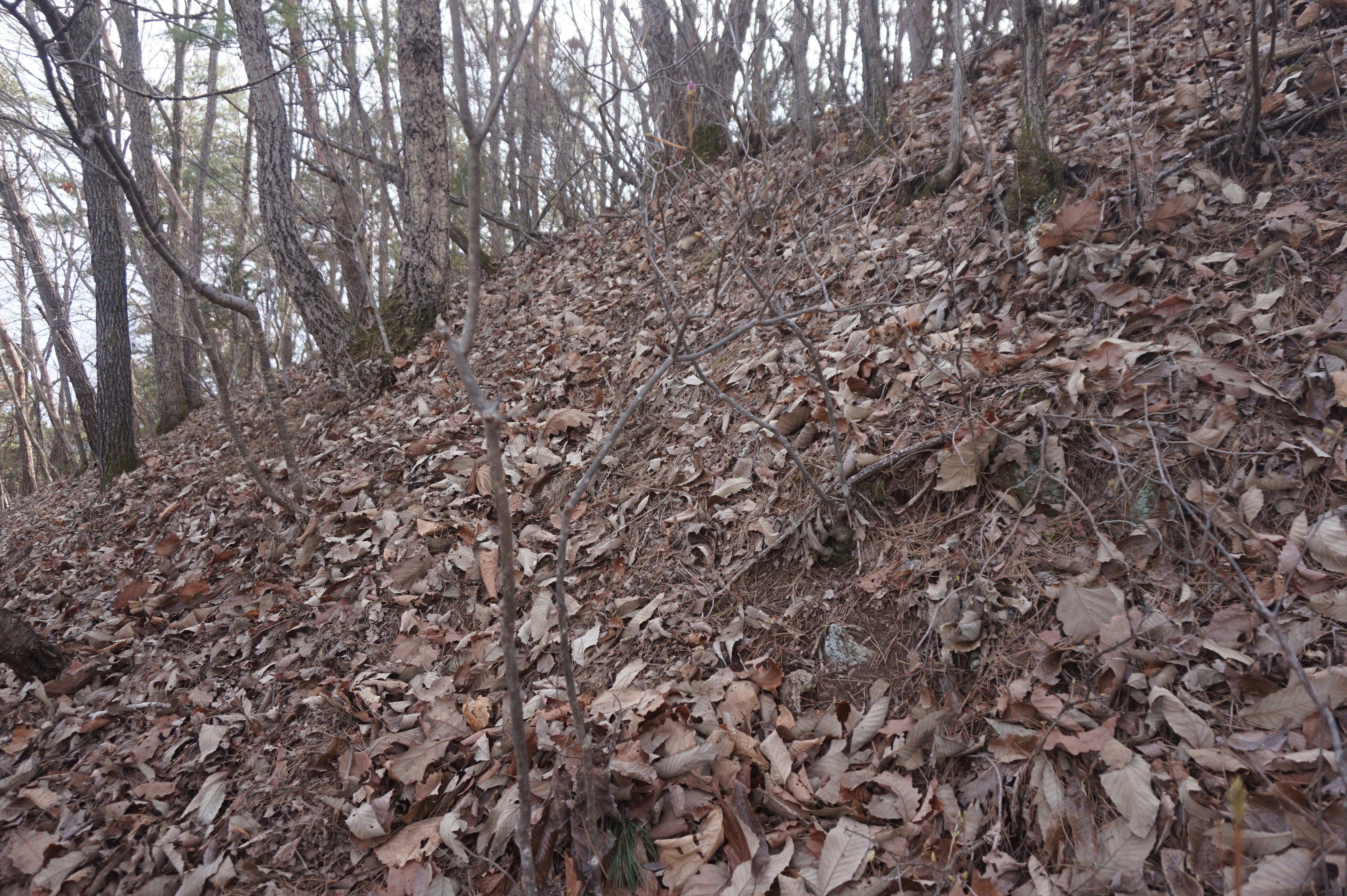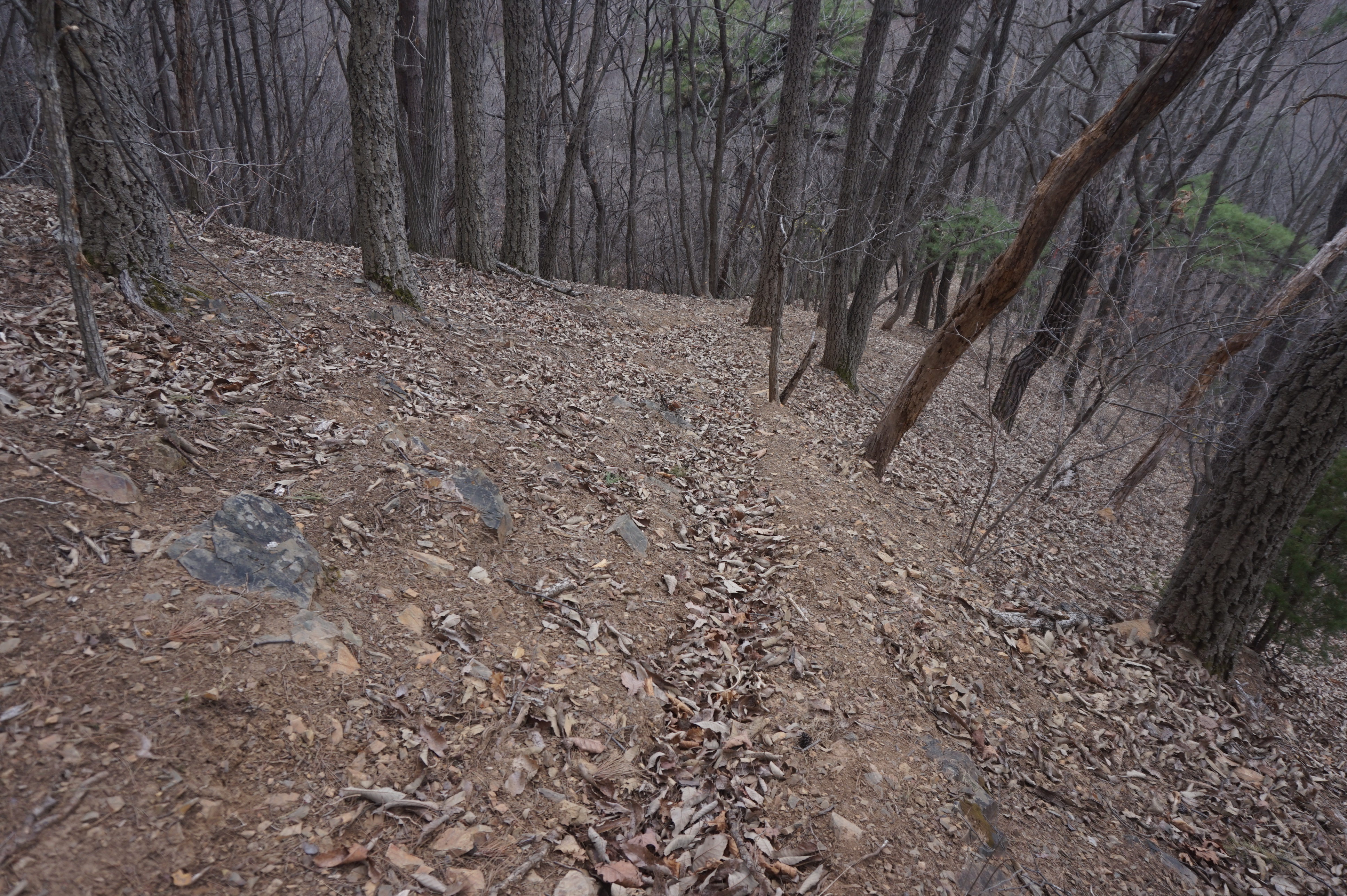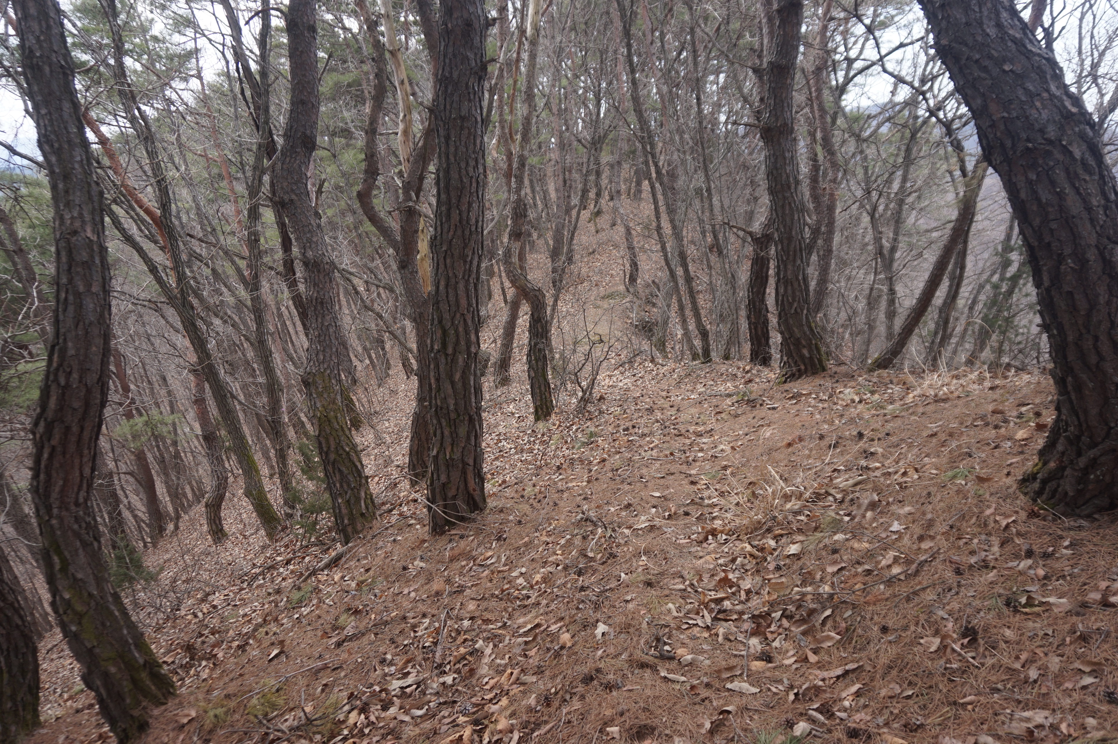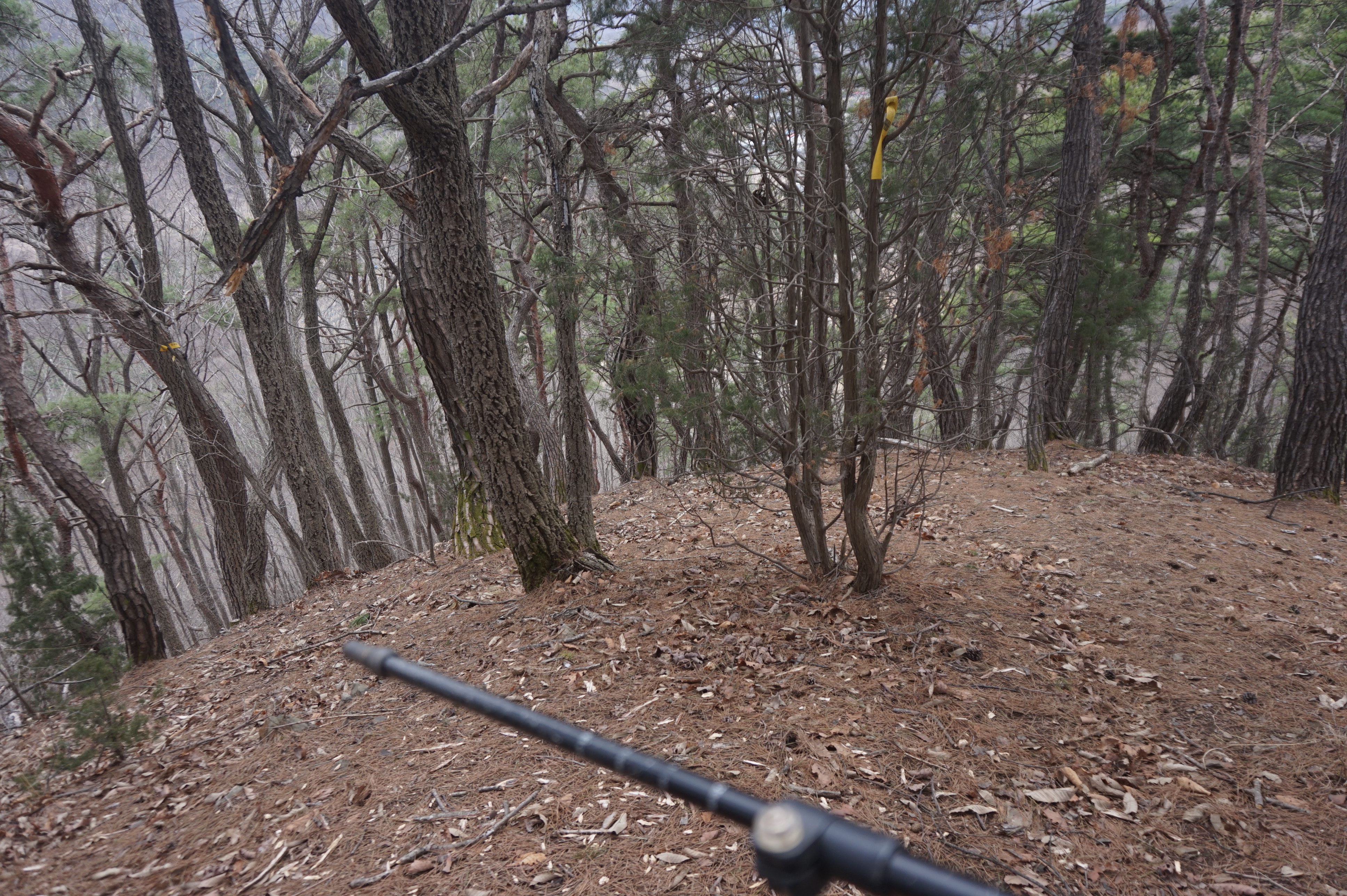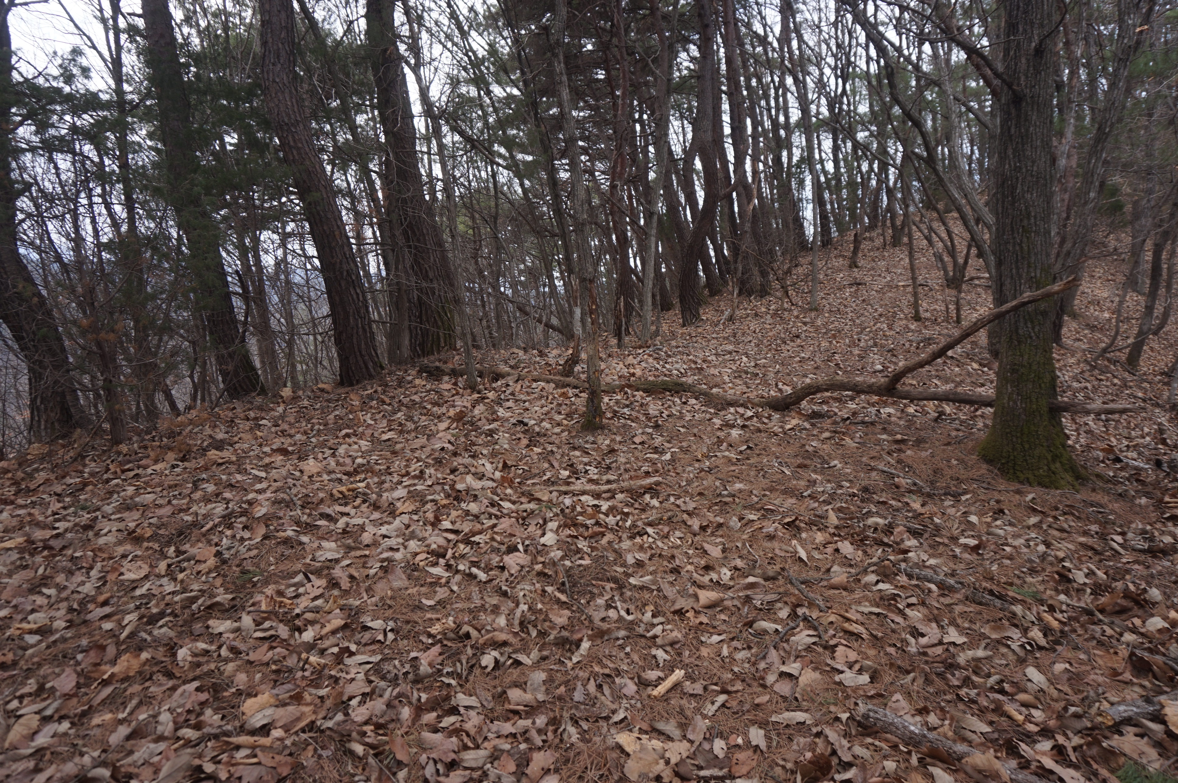 치고 오르는데 등로는 보이지 않고 오르막길 솔갈비가