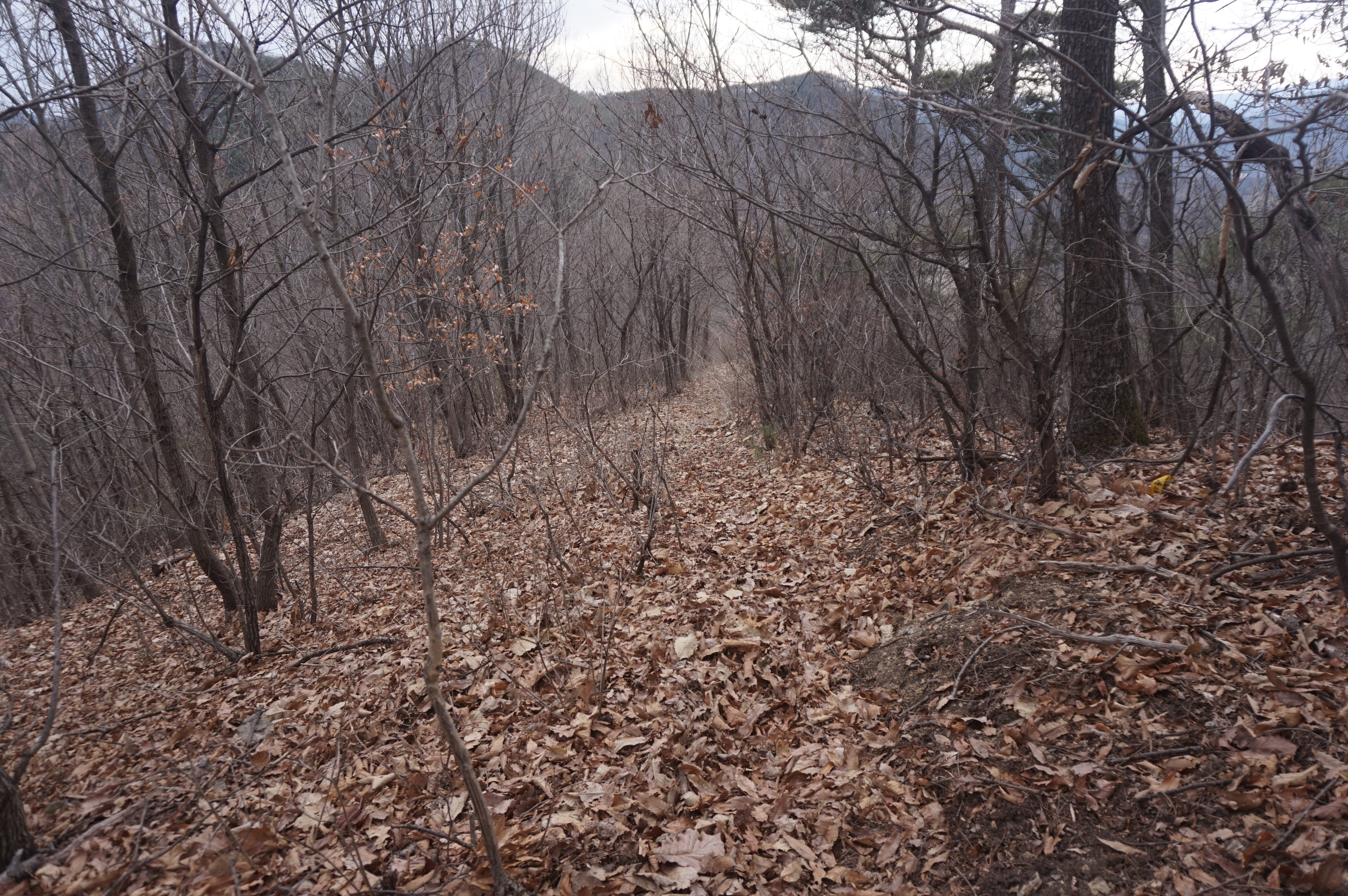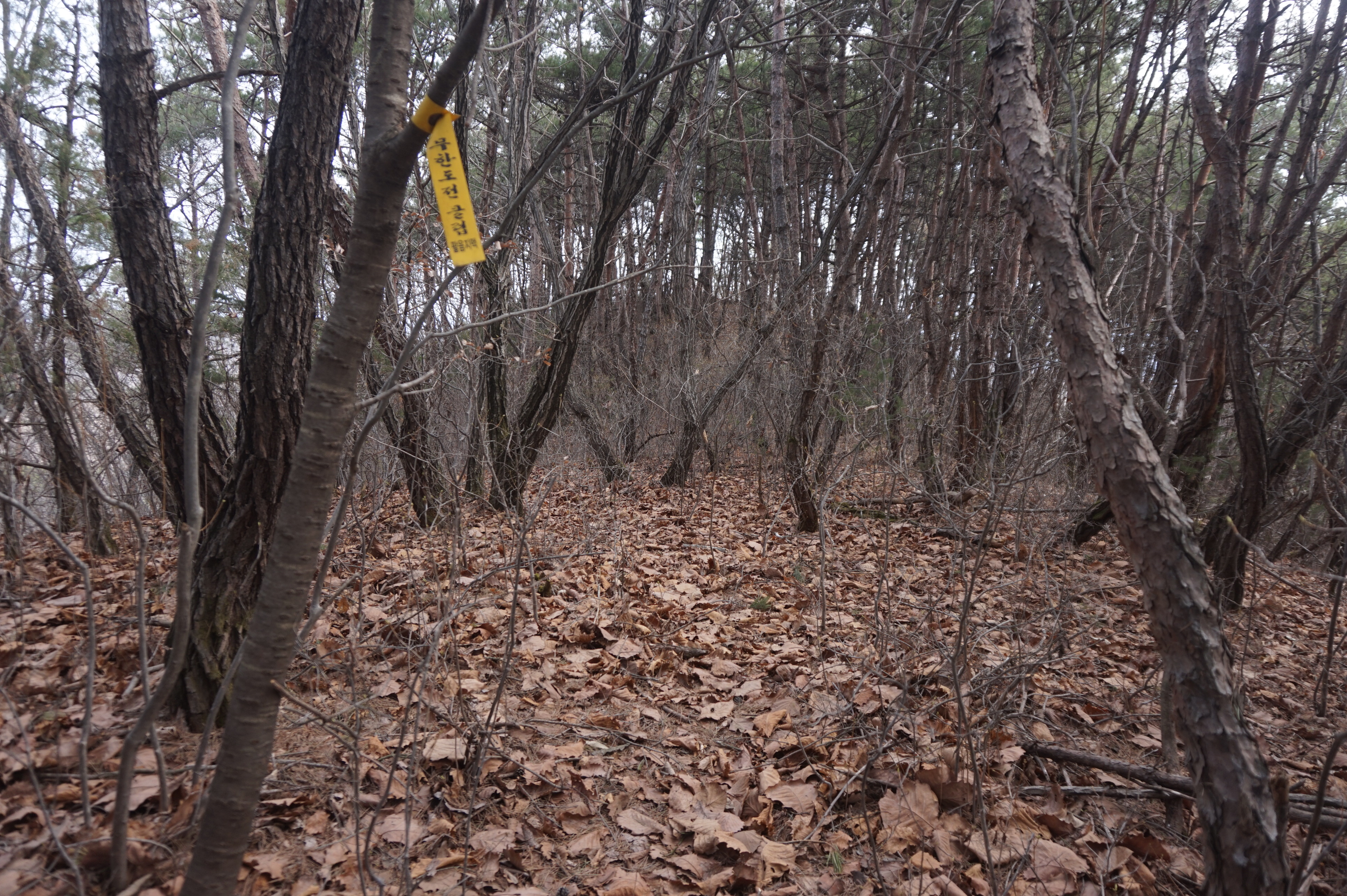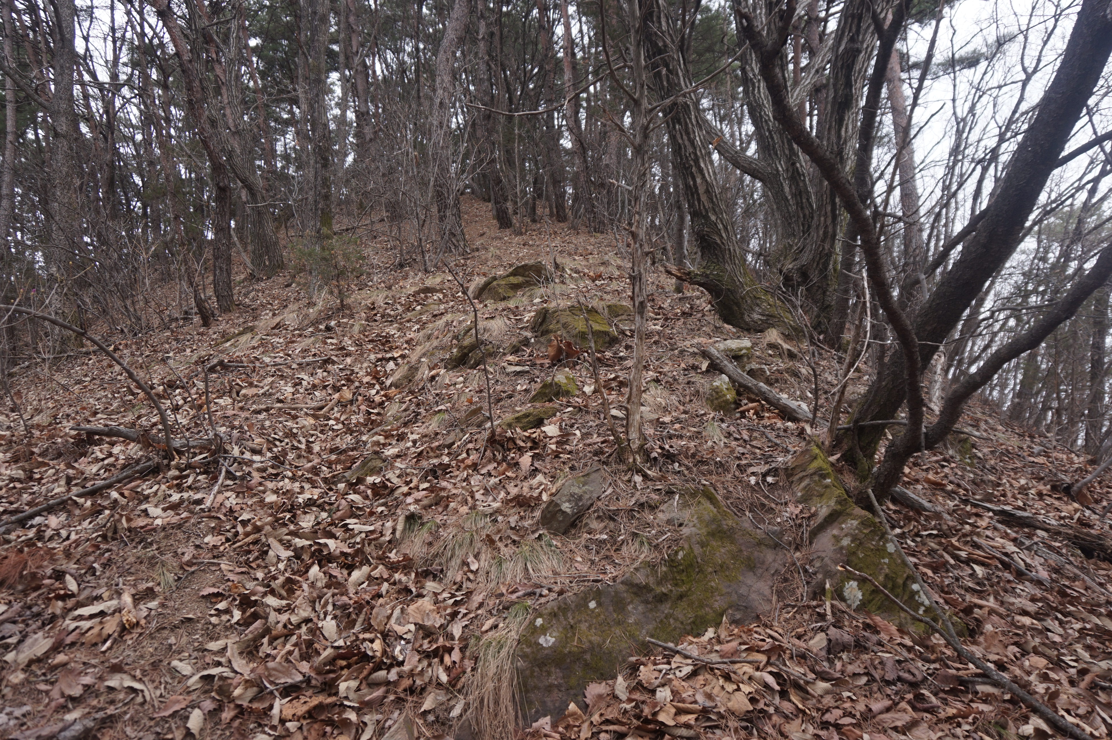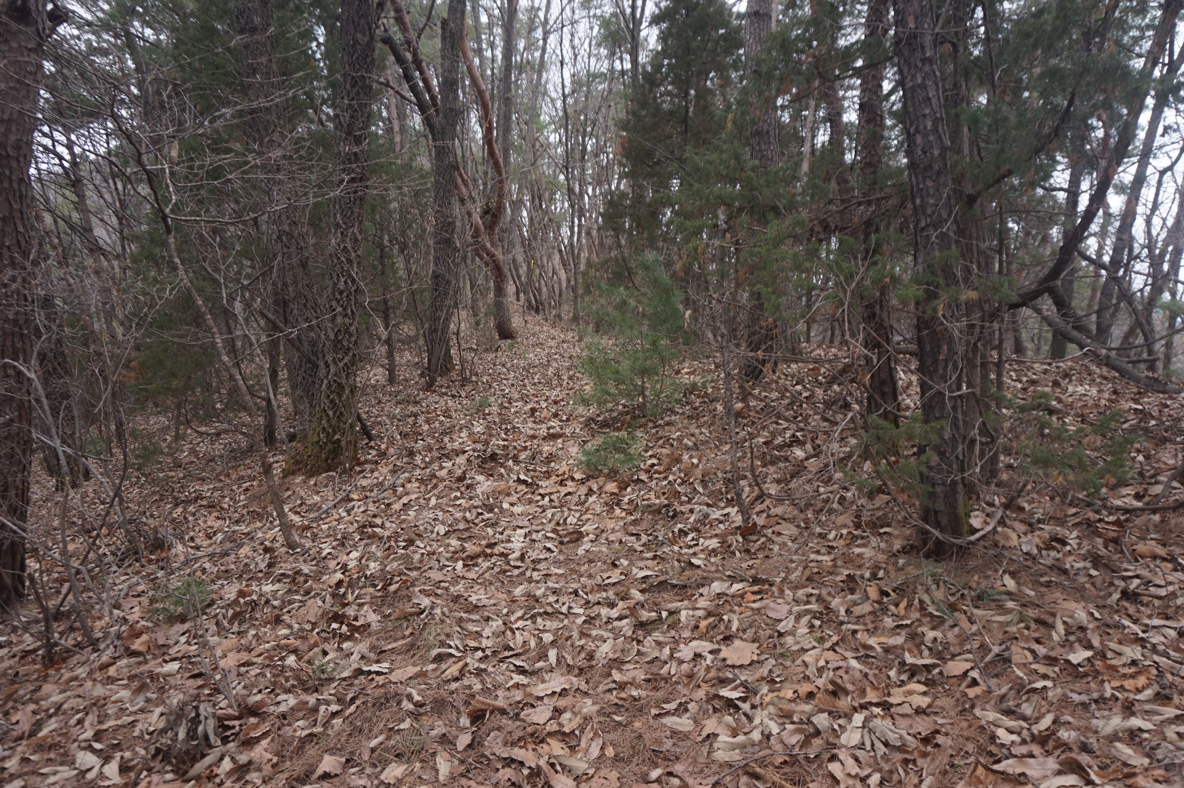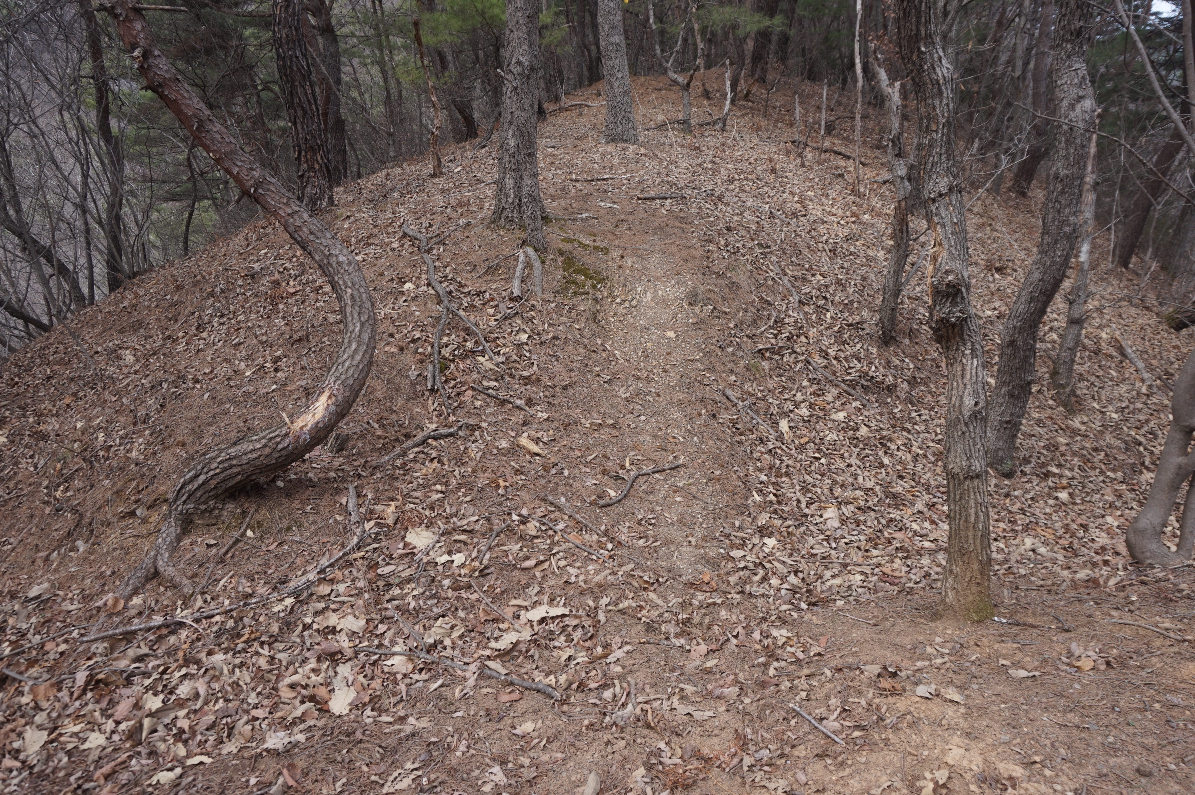 치고 오르는데 등로는 보이지 않고 오르막길 솔갈비가