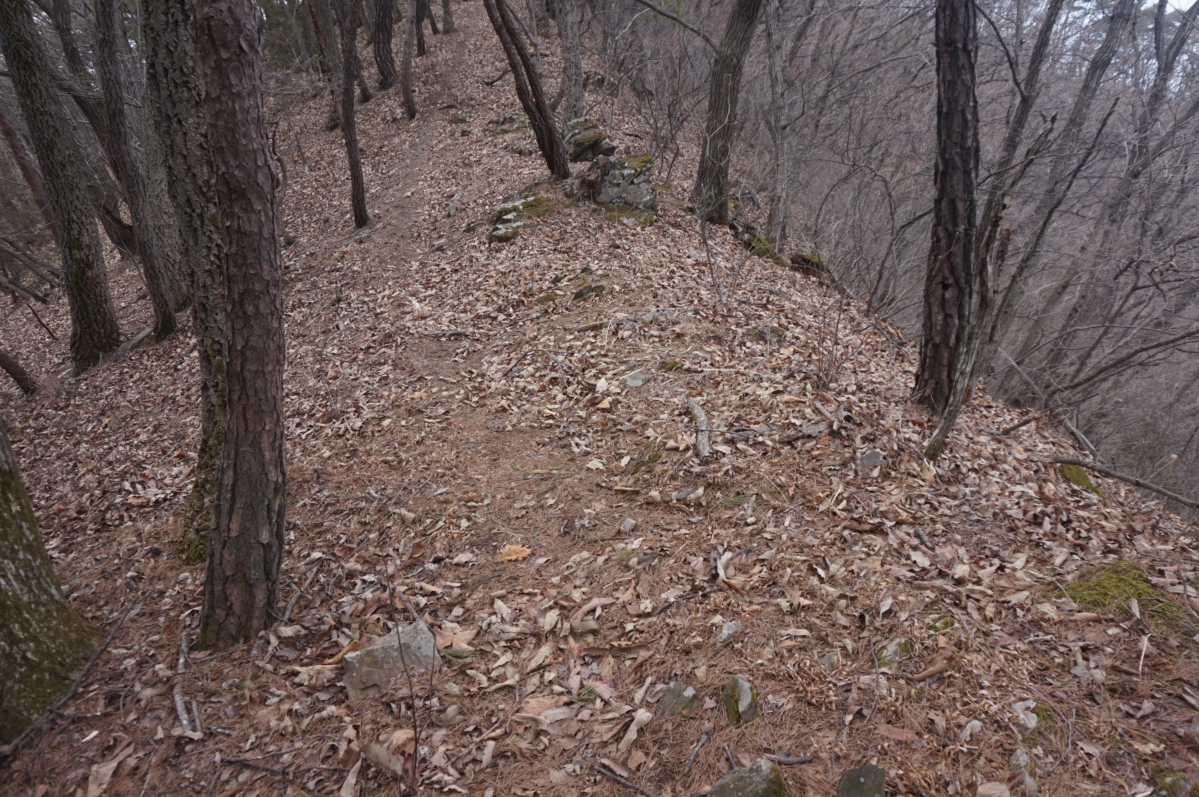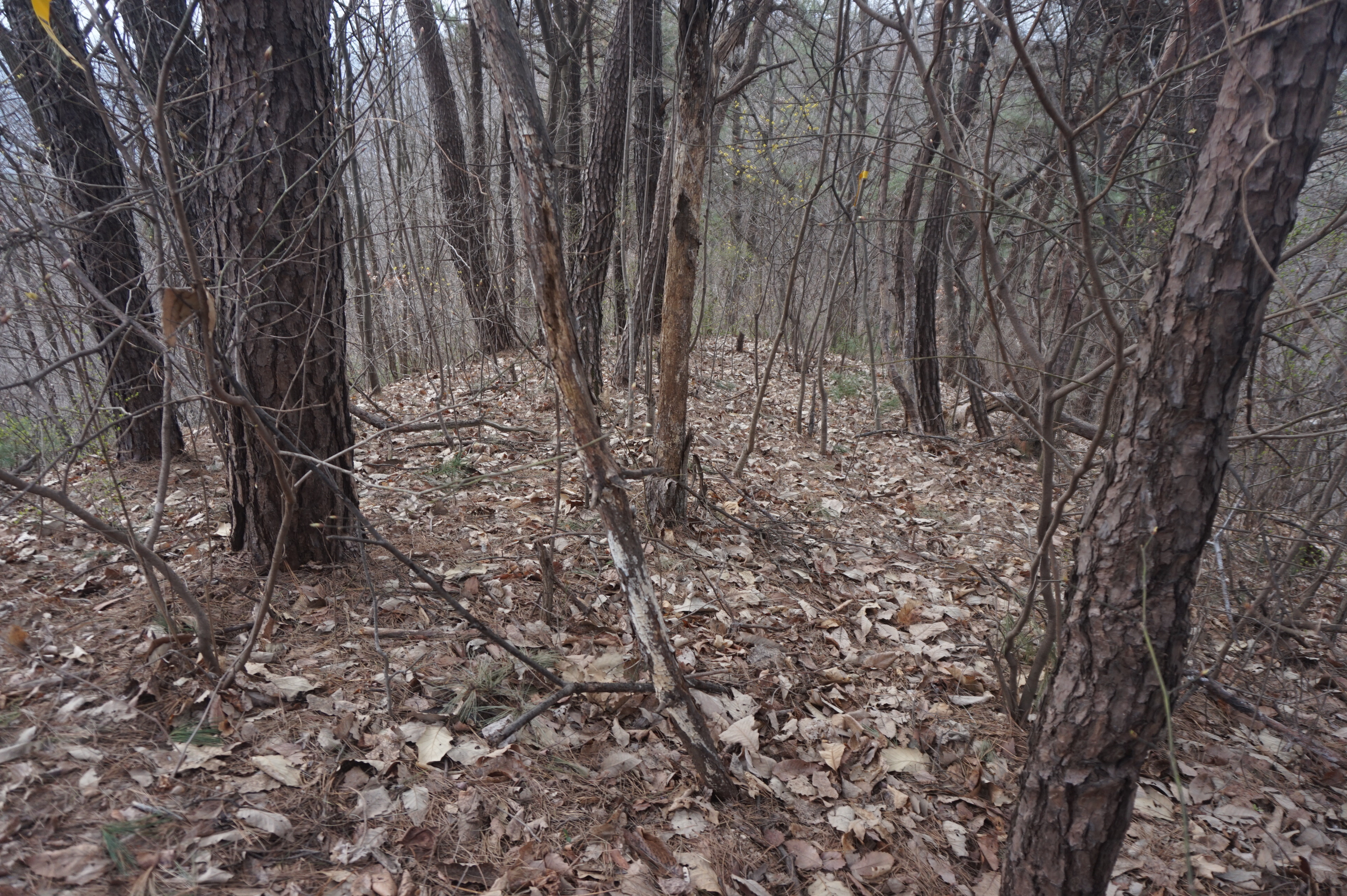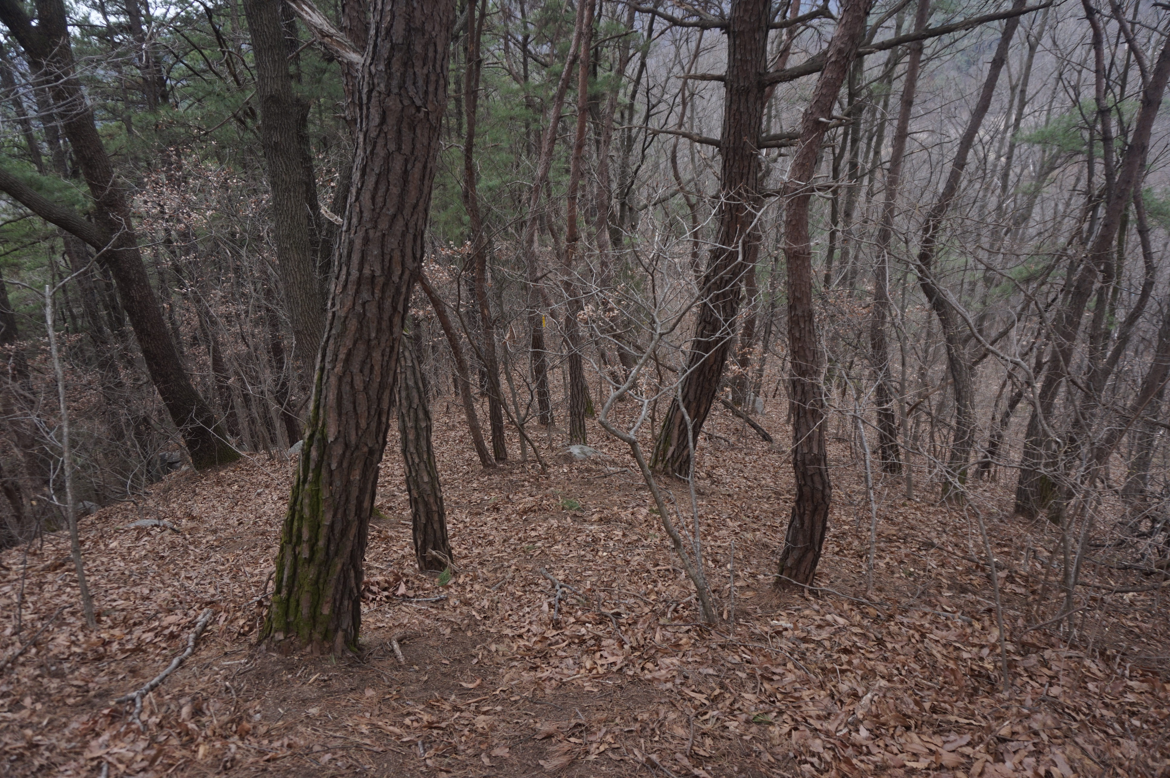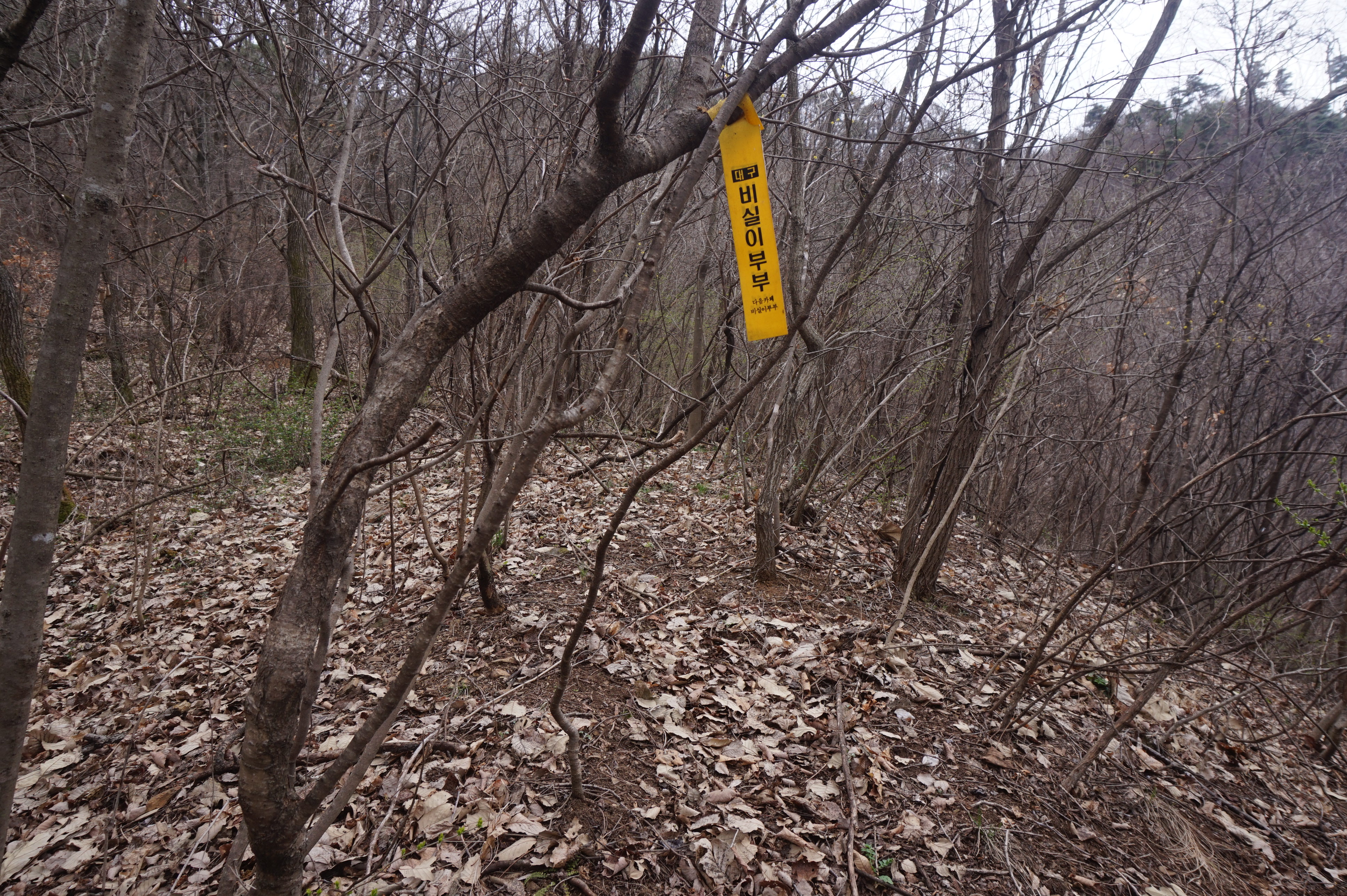 치고 오르는데 등로는 보이지 않고 오르막길 솔갈비가