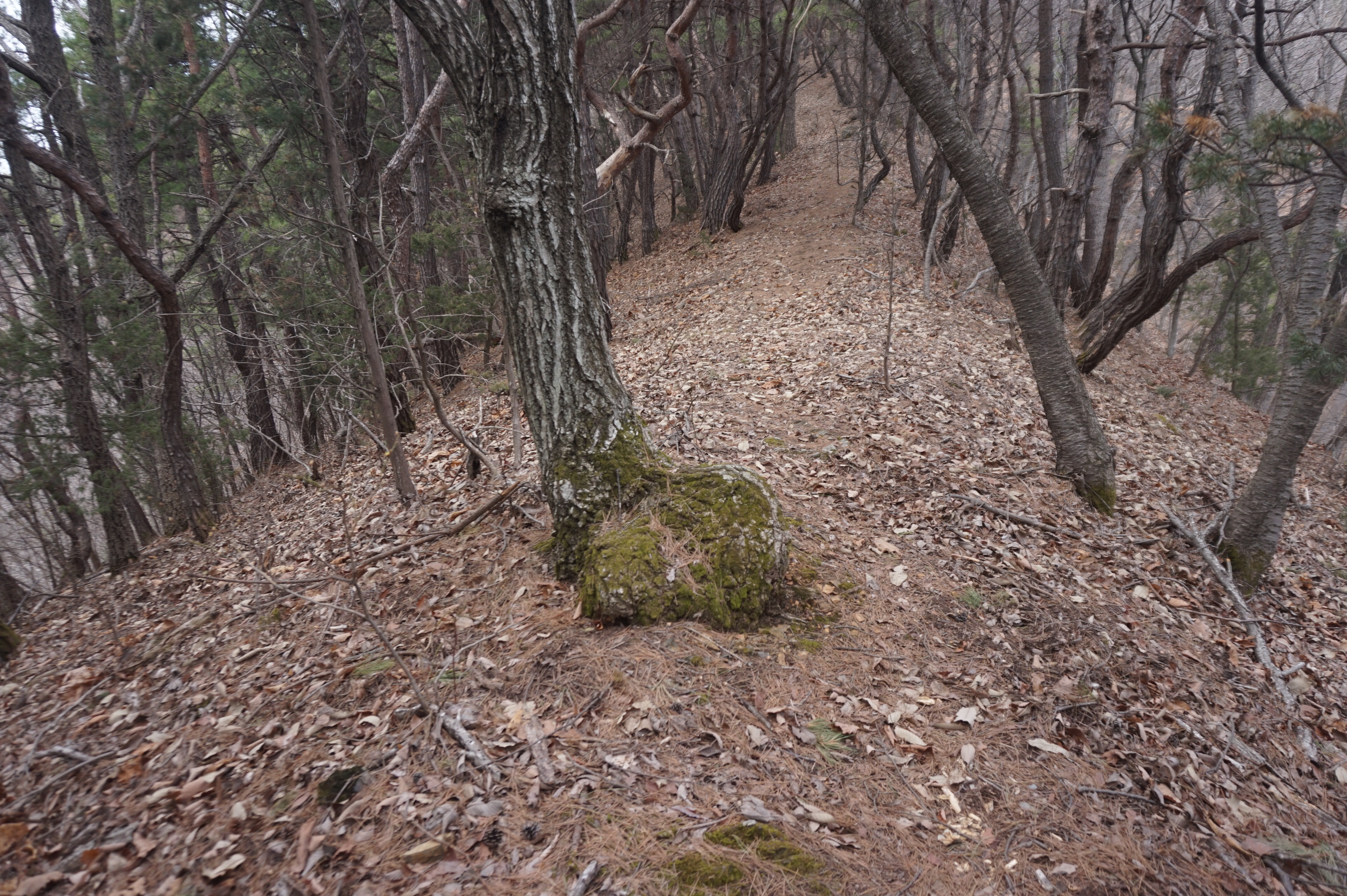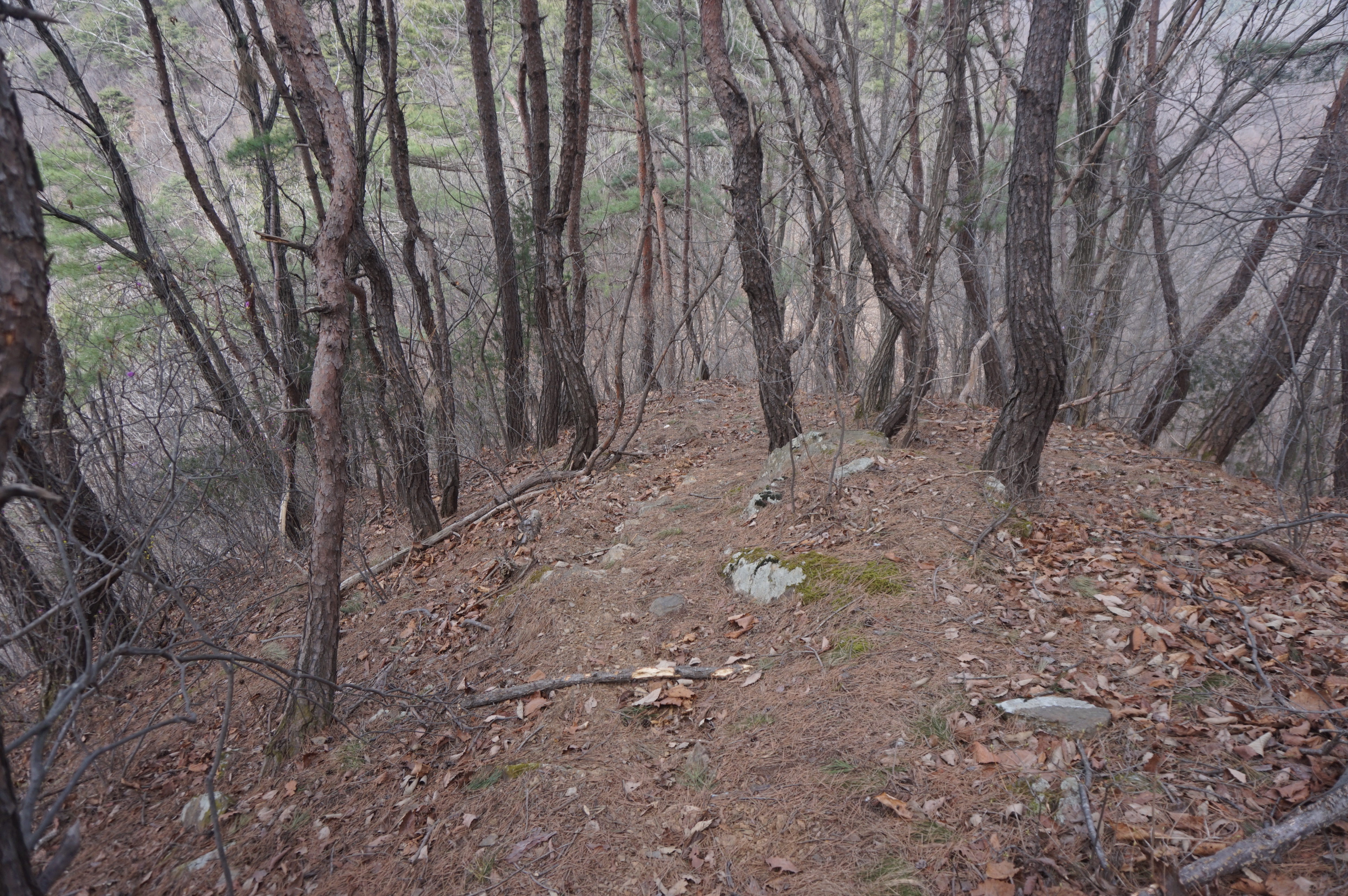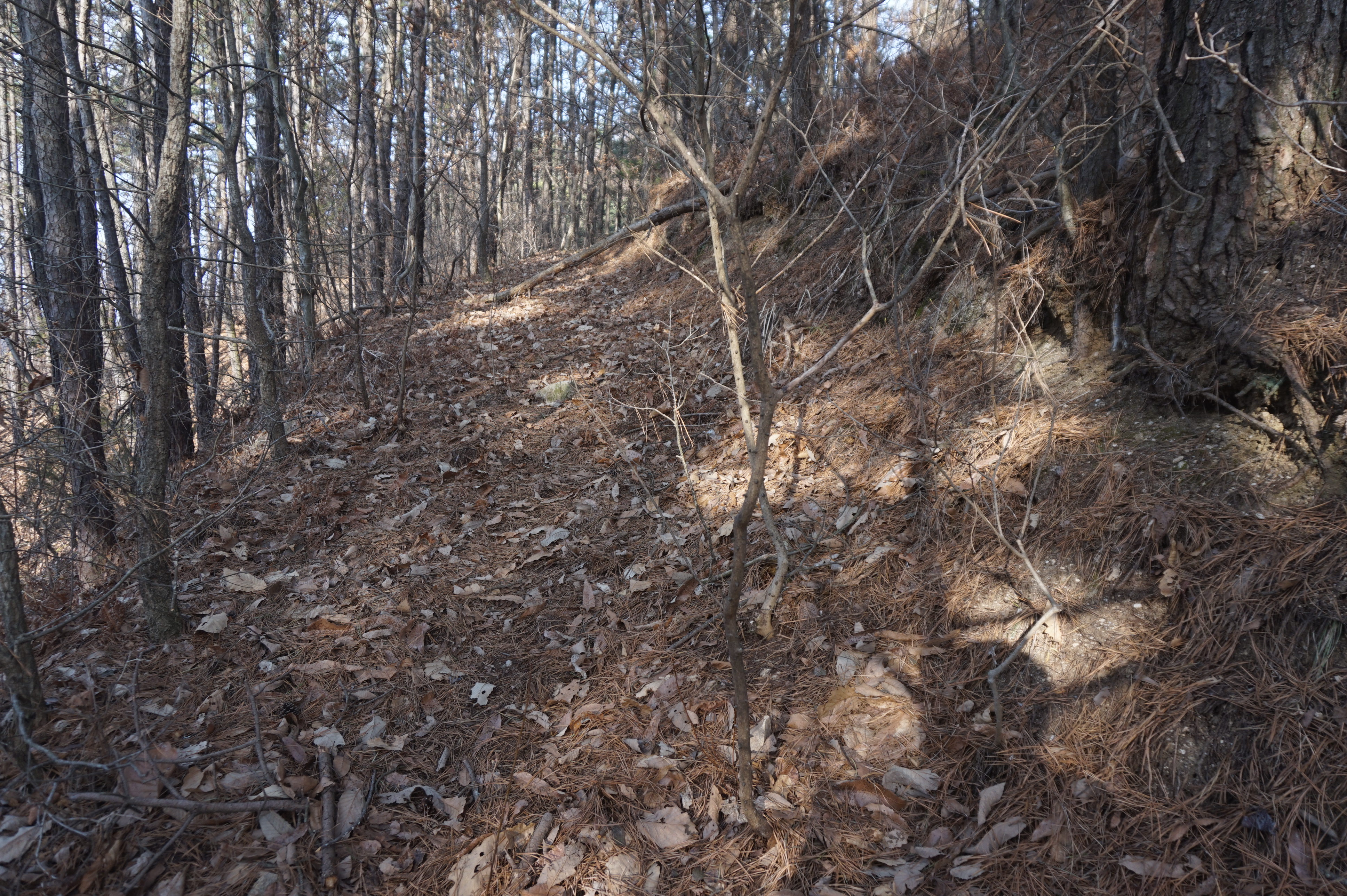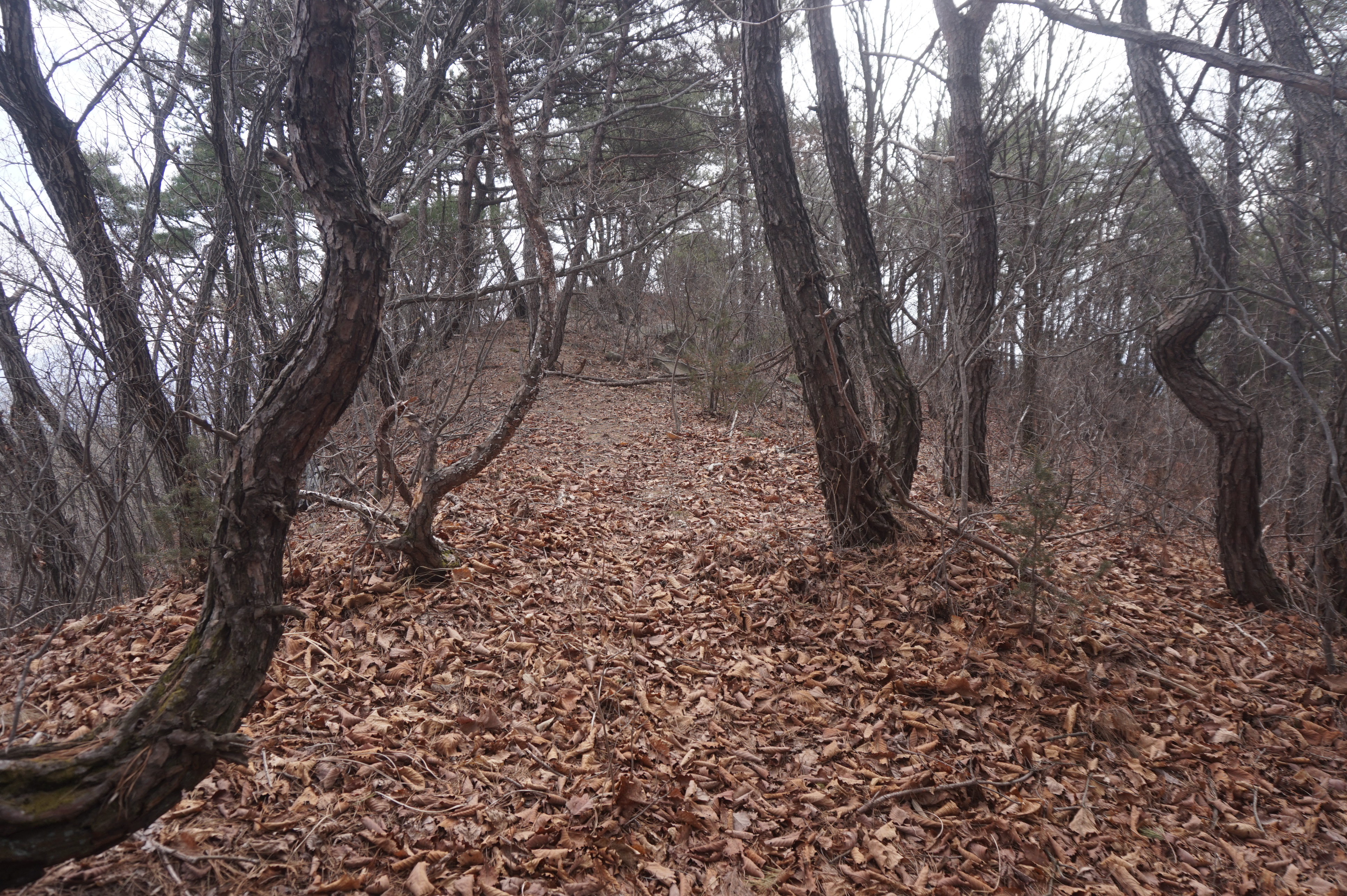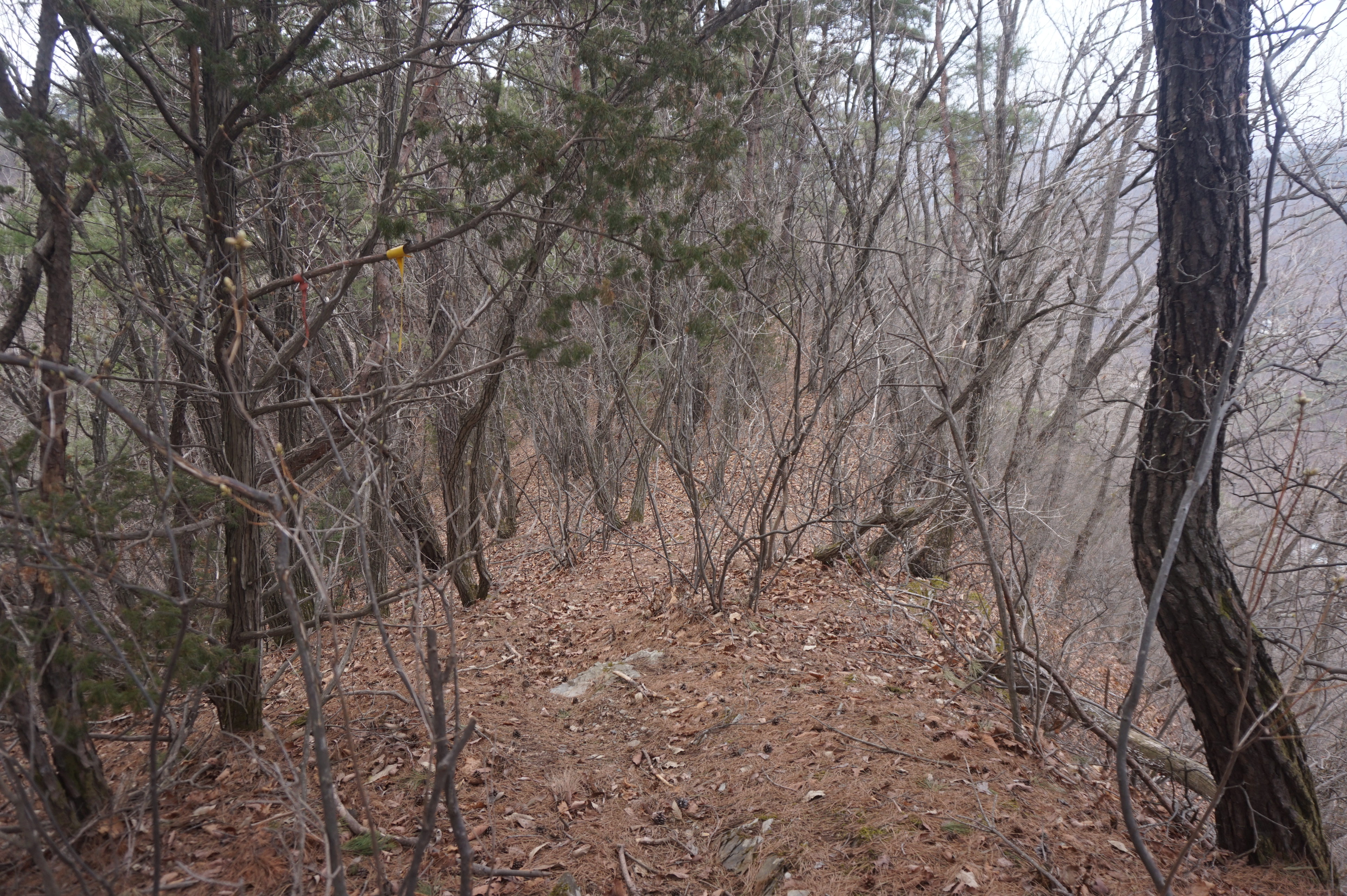 치고 오르는데 등로는 보이지 않고 오르막길 솔갈비가