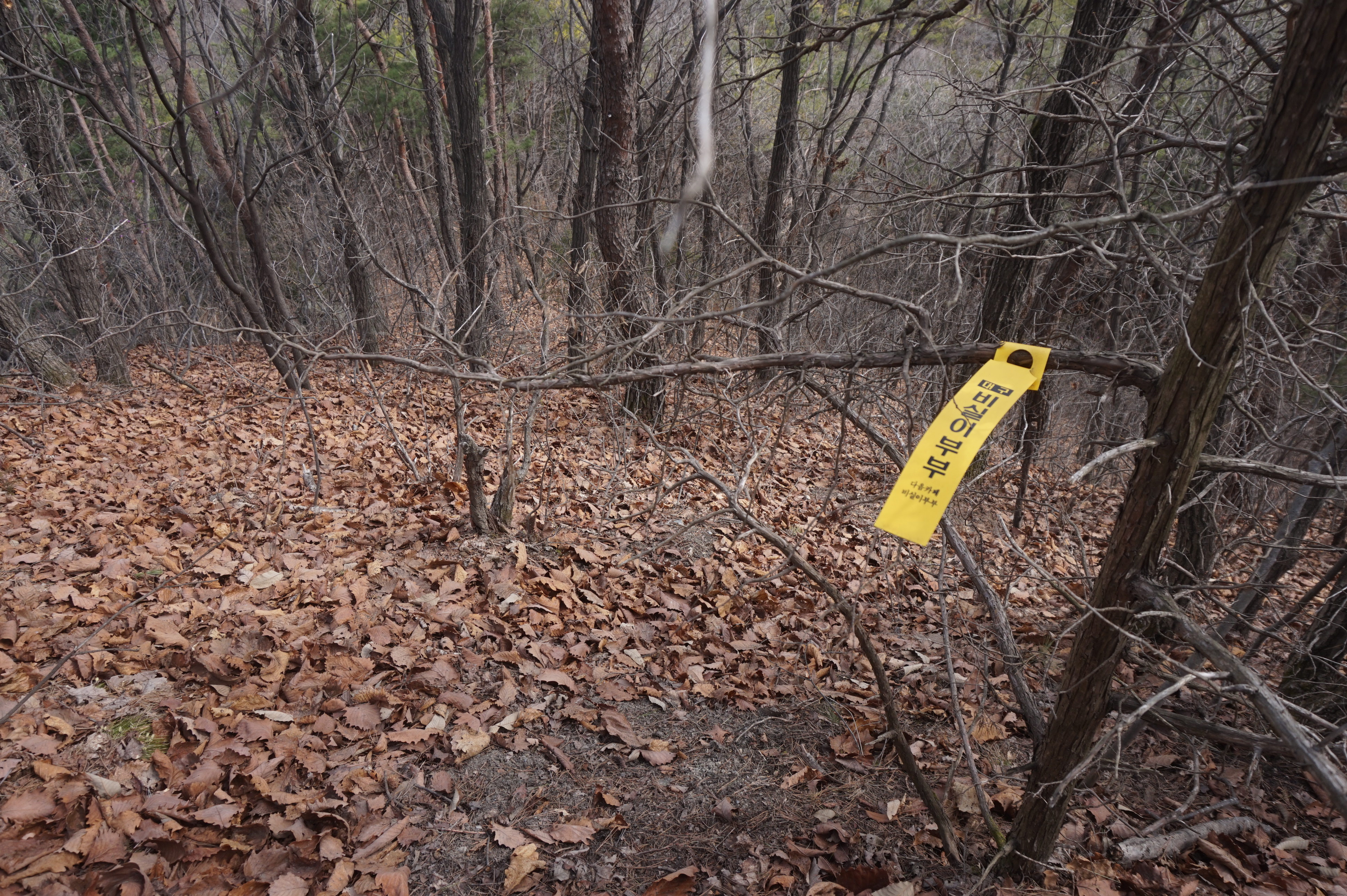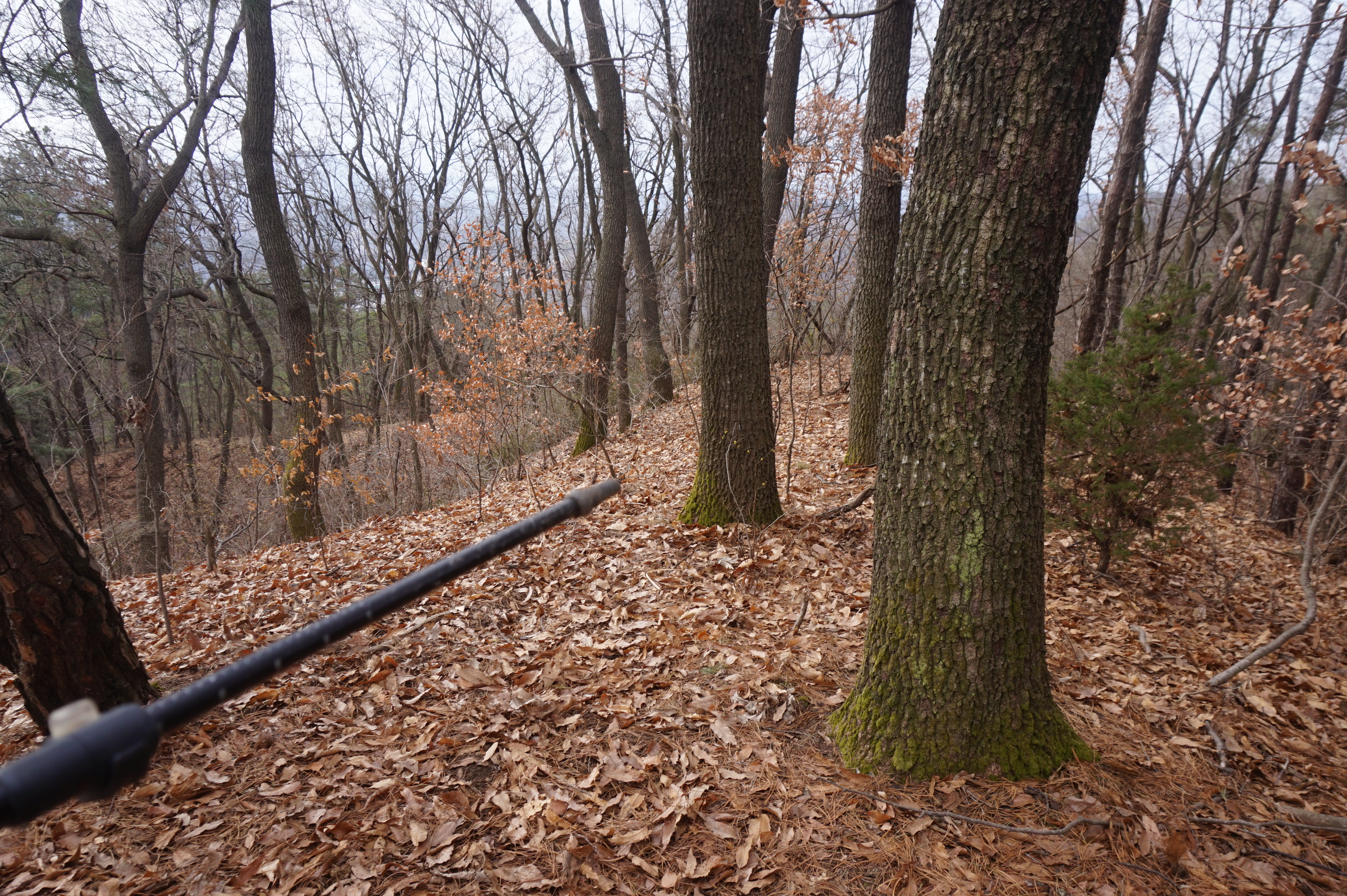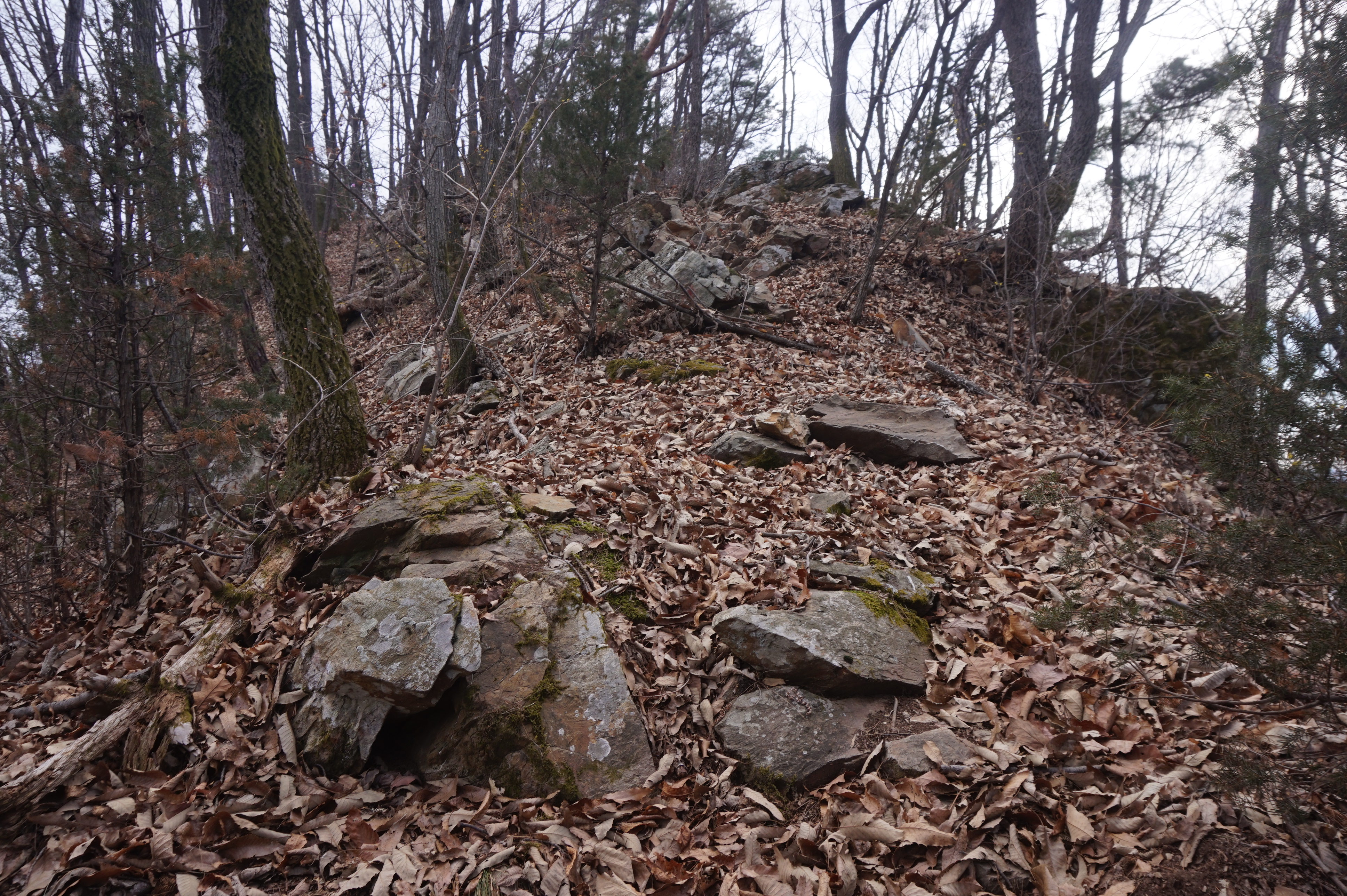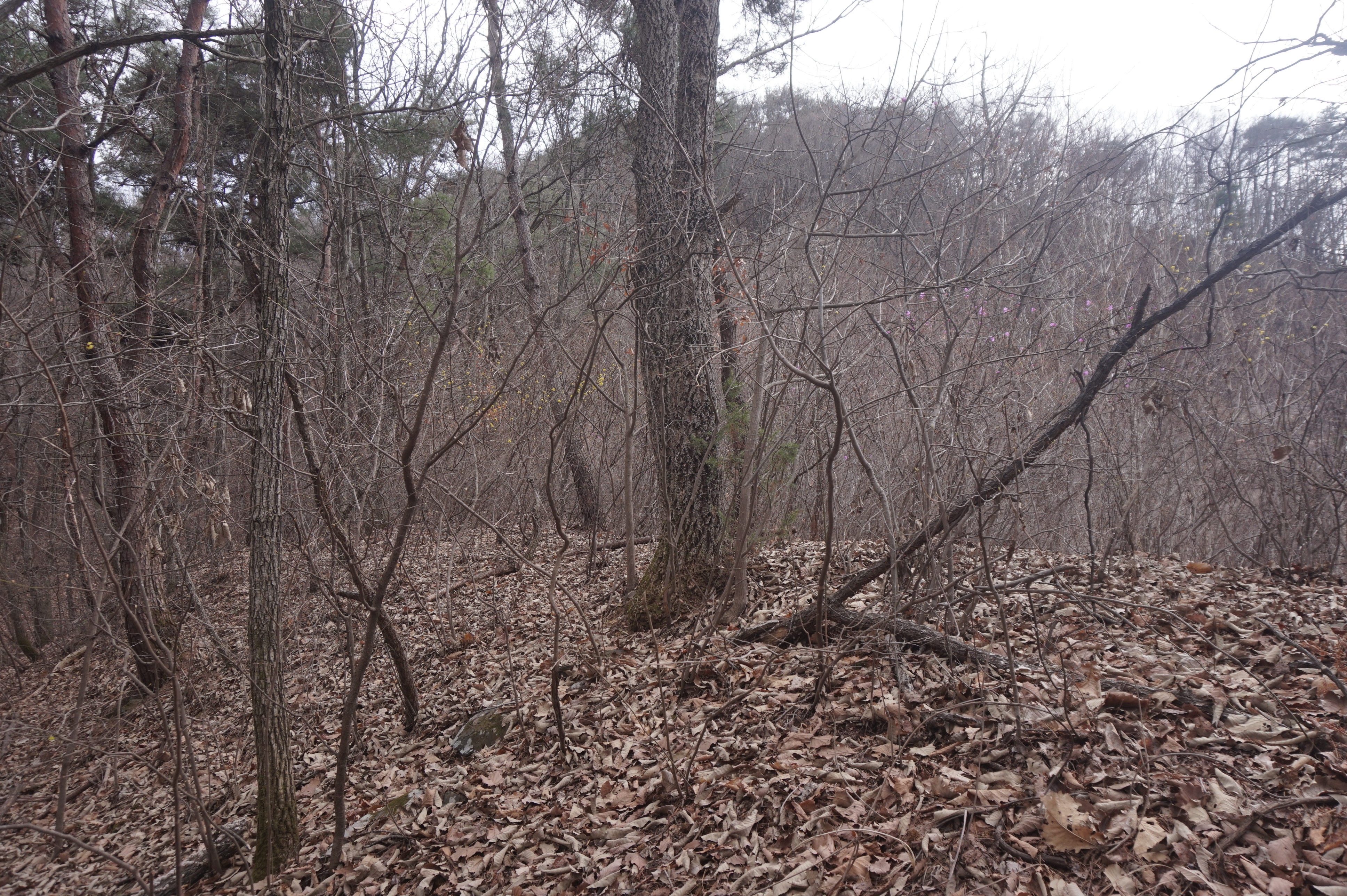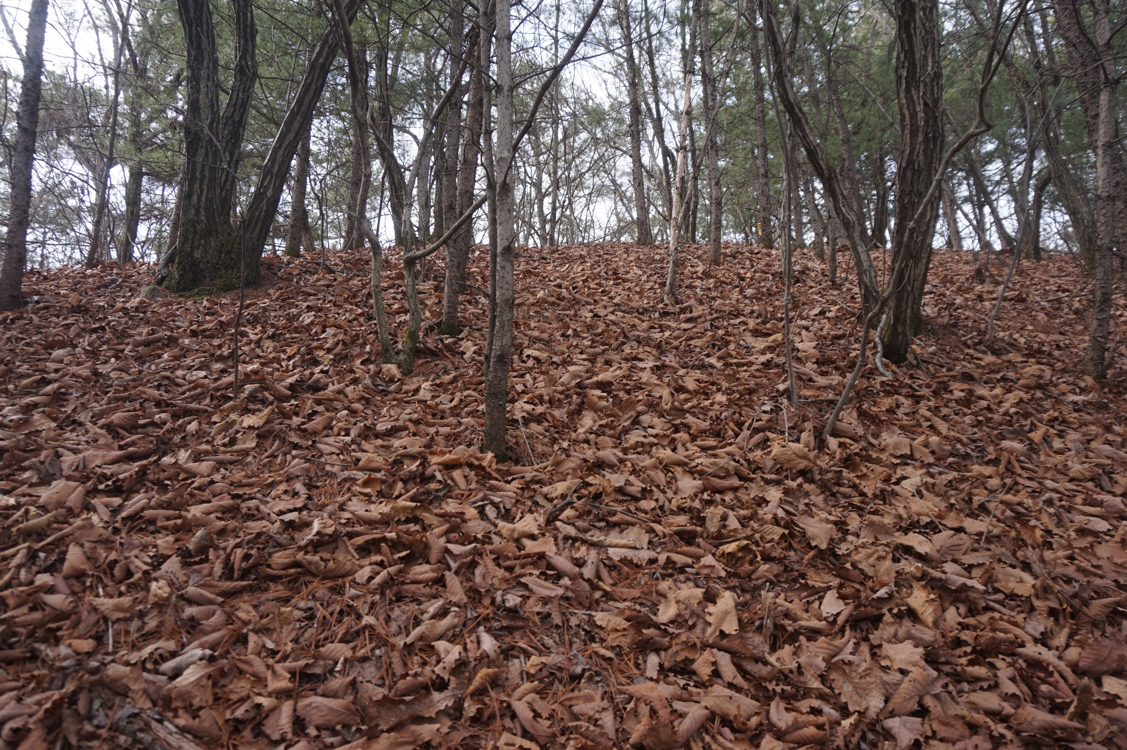 치고 오르는데 등로는 보이지 않고 오르막길 솔갈비가
