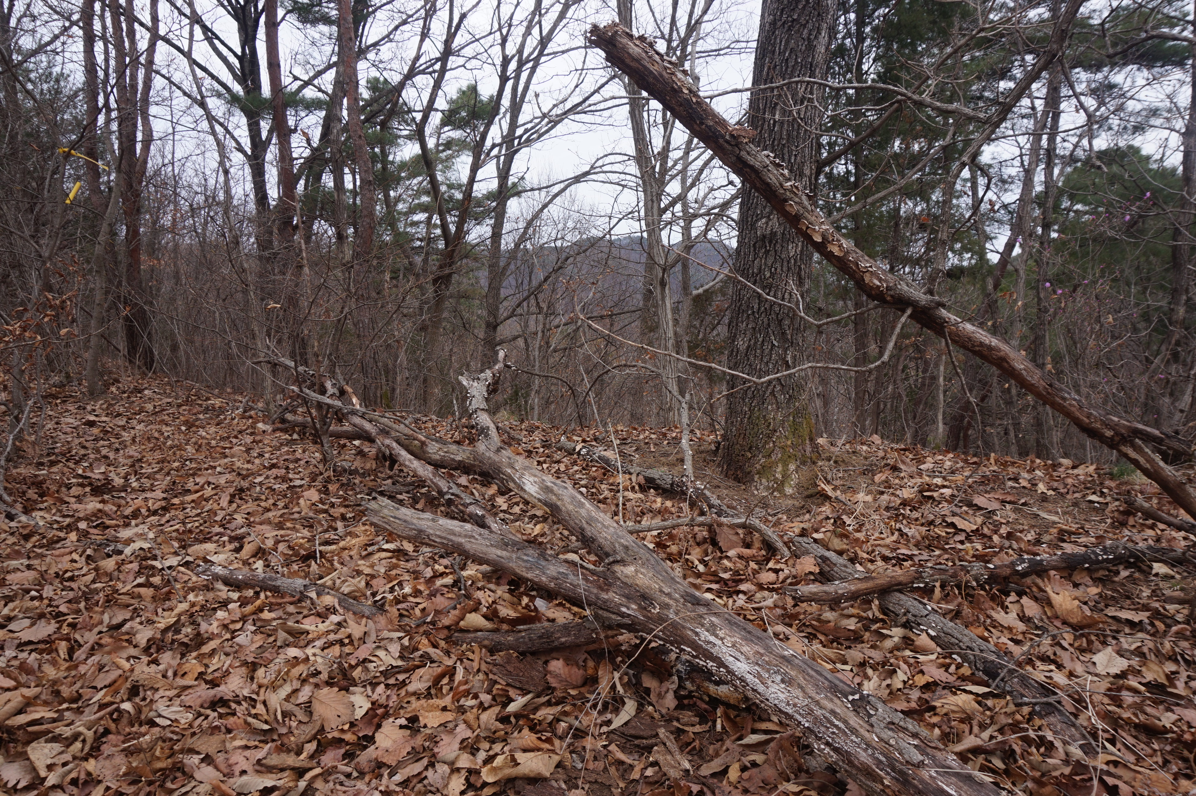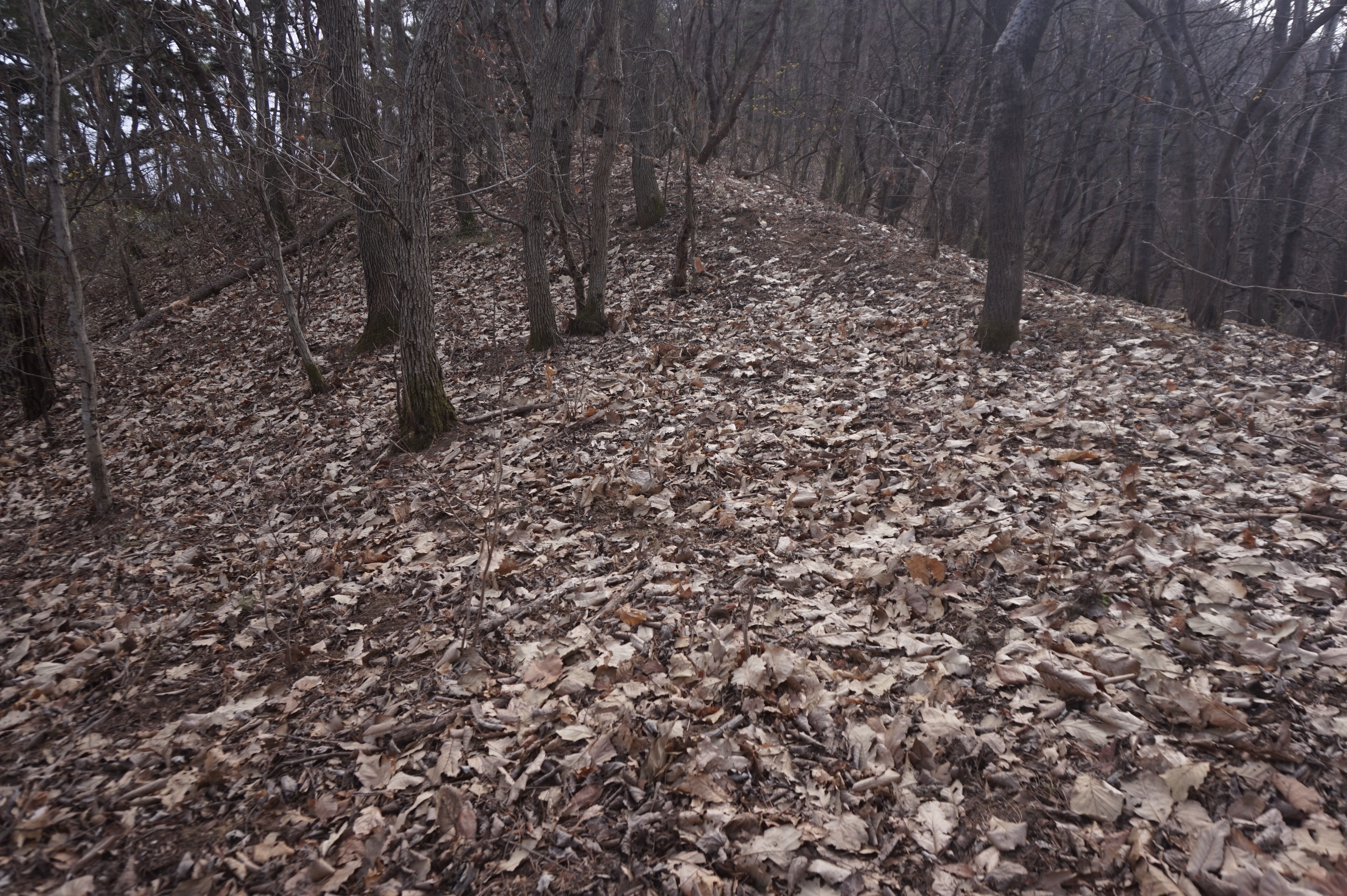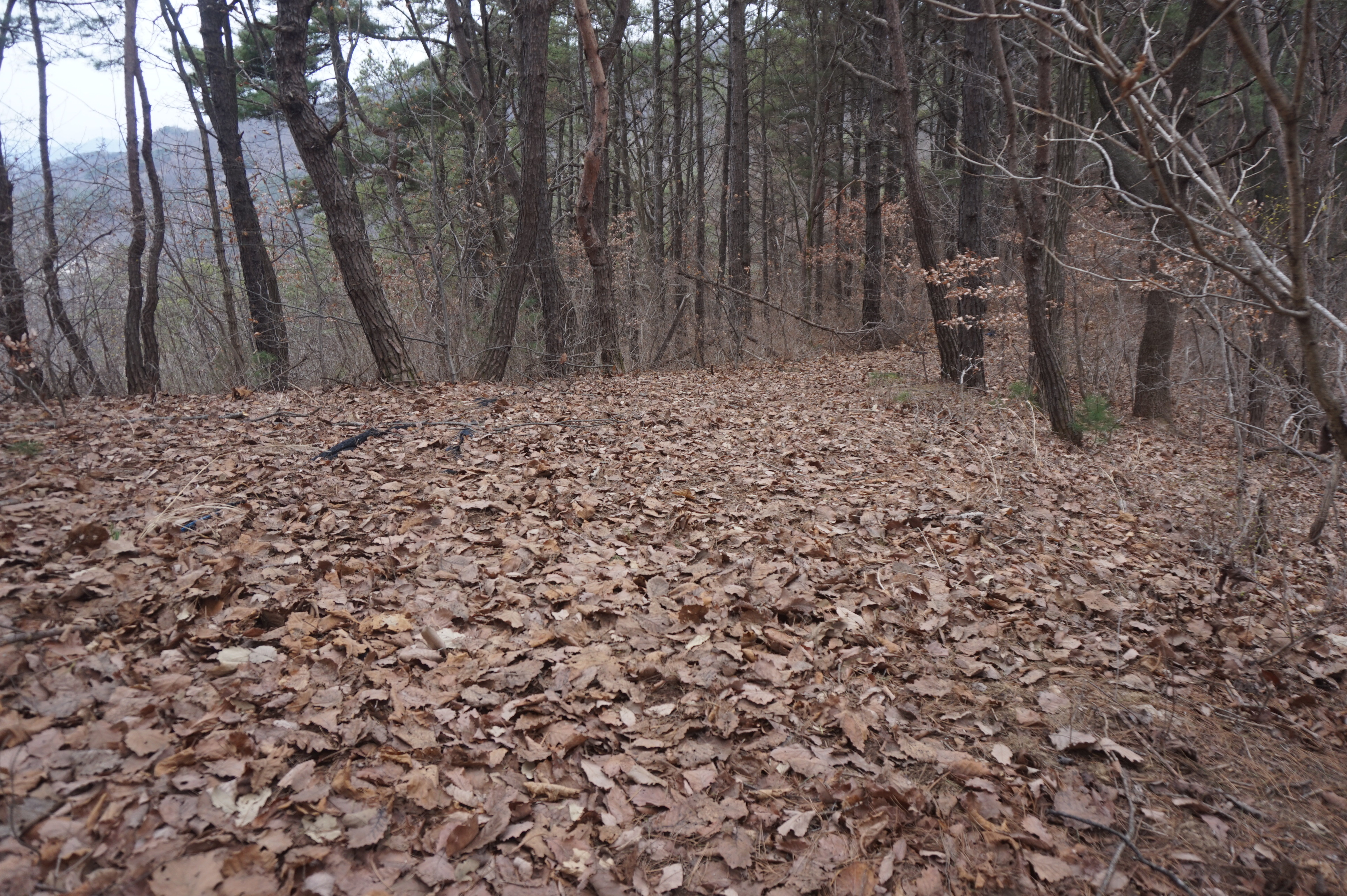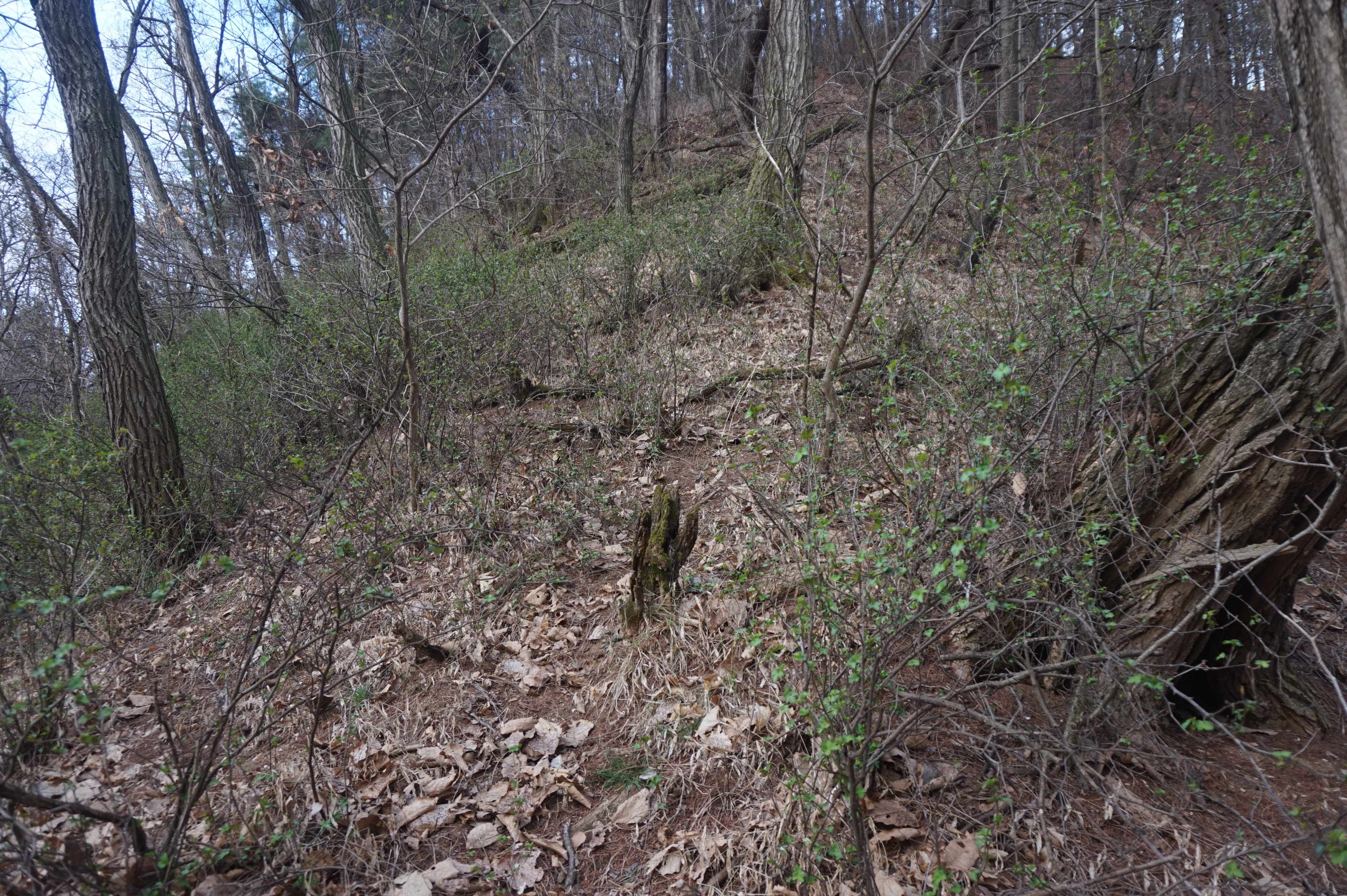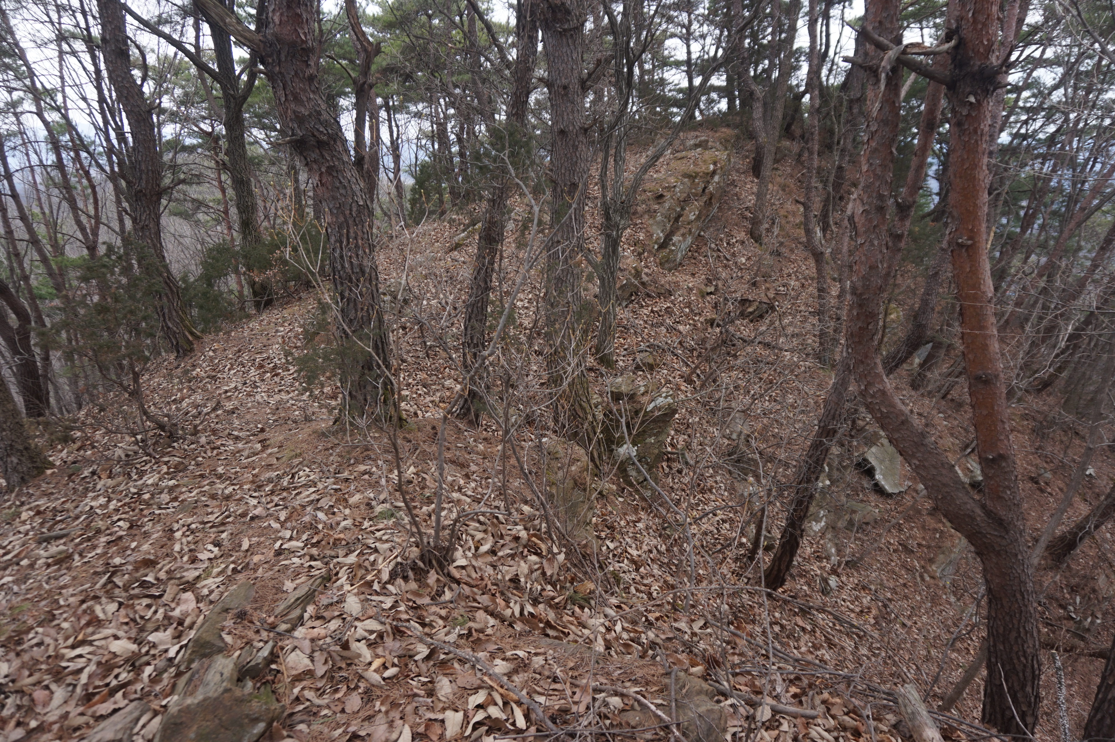 치고 오르는데 등로는 보이지 않고 오르막길 솔갈비가