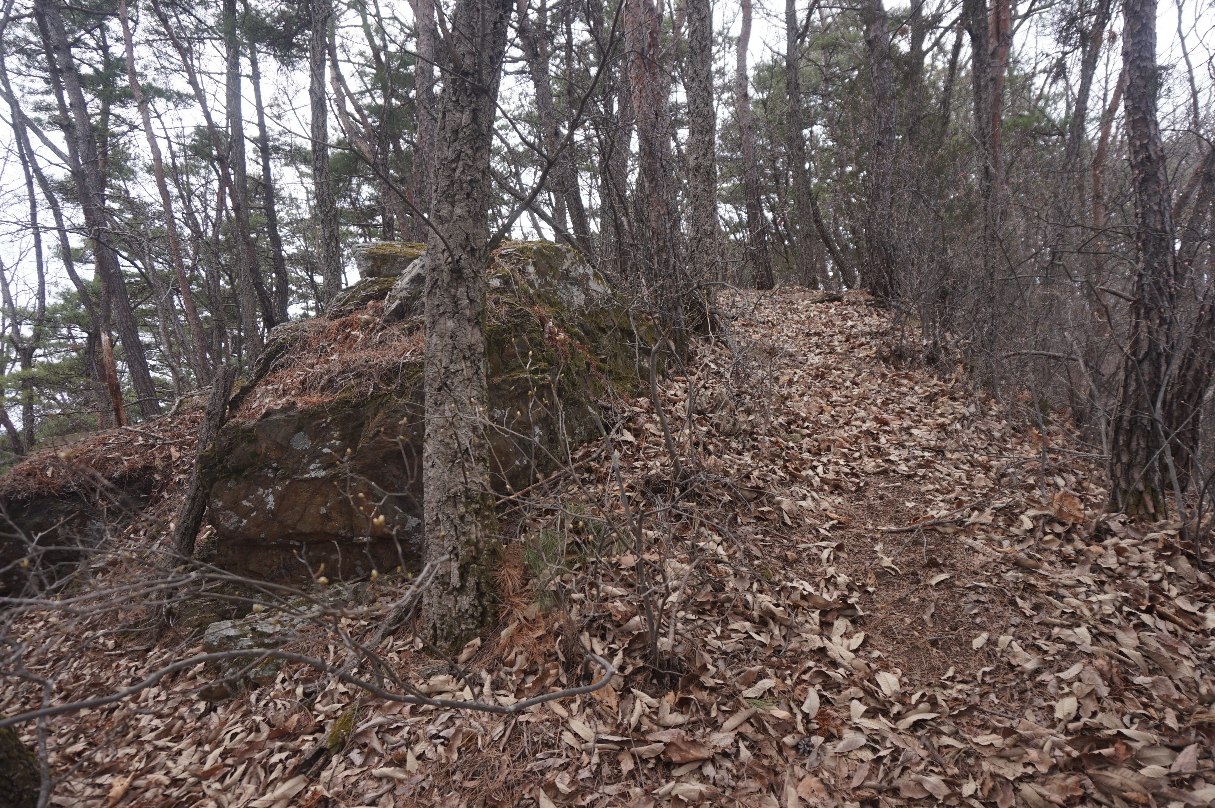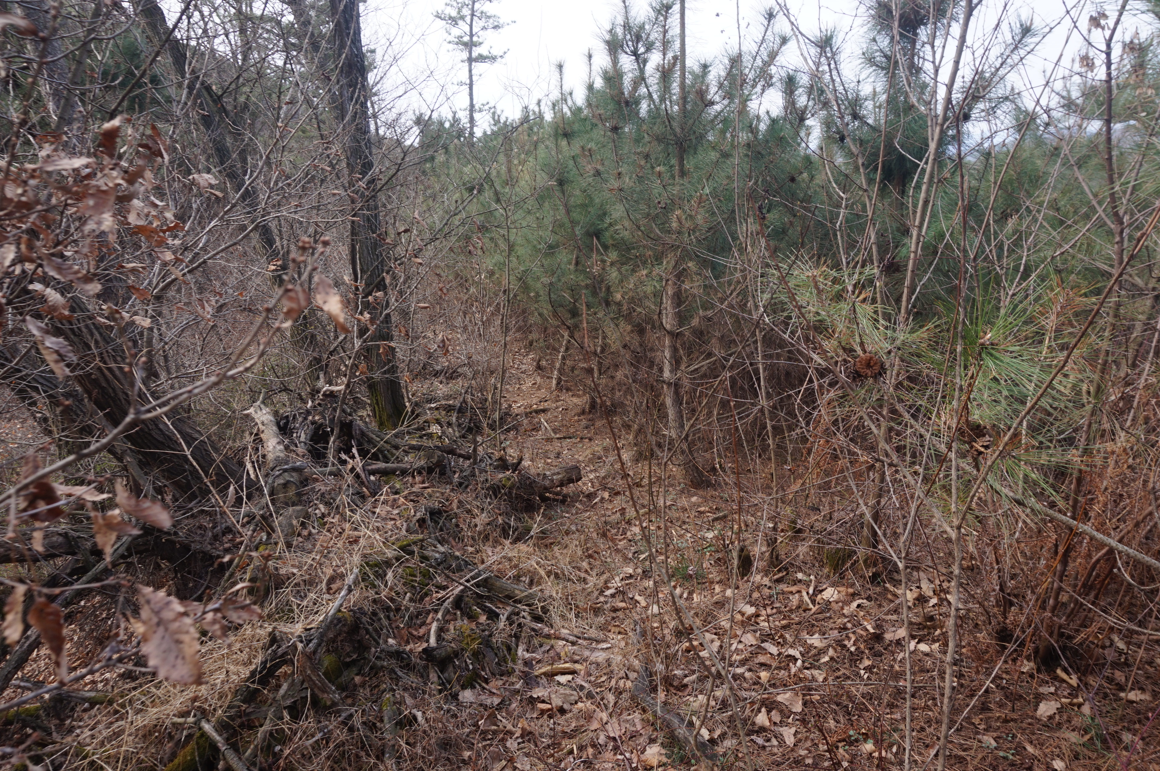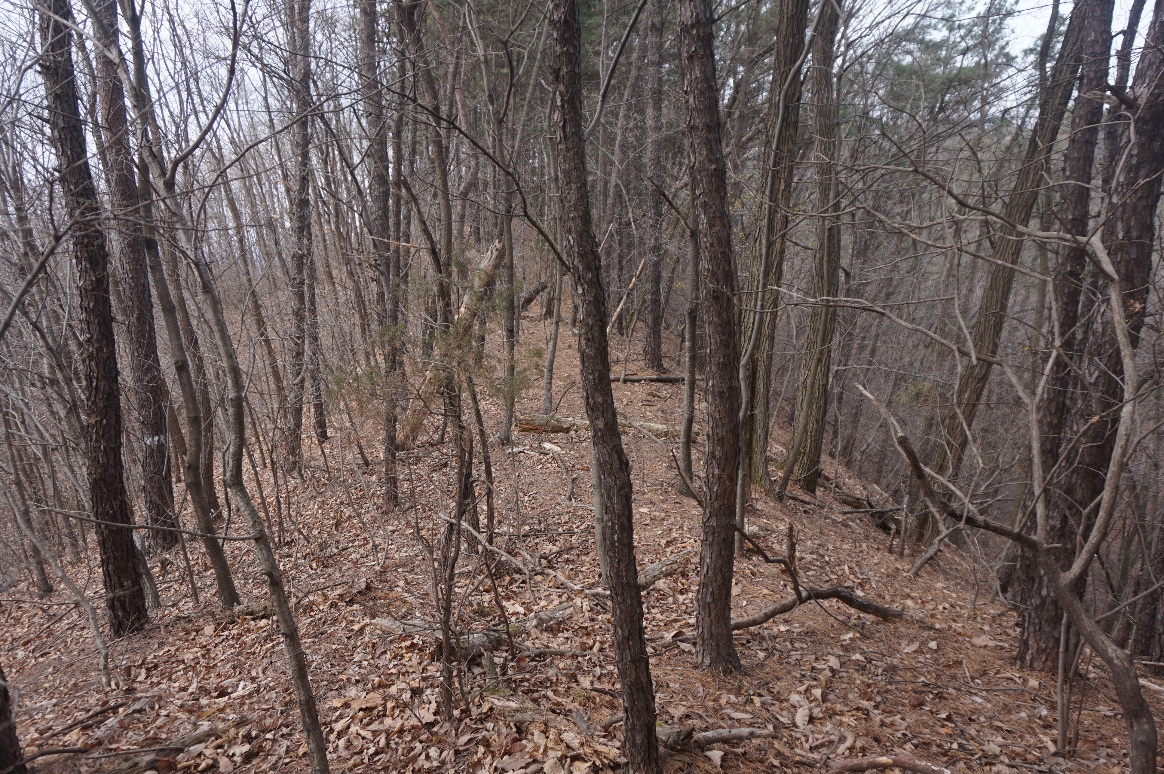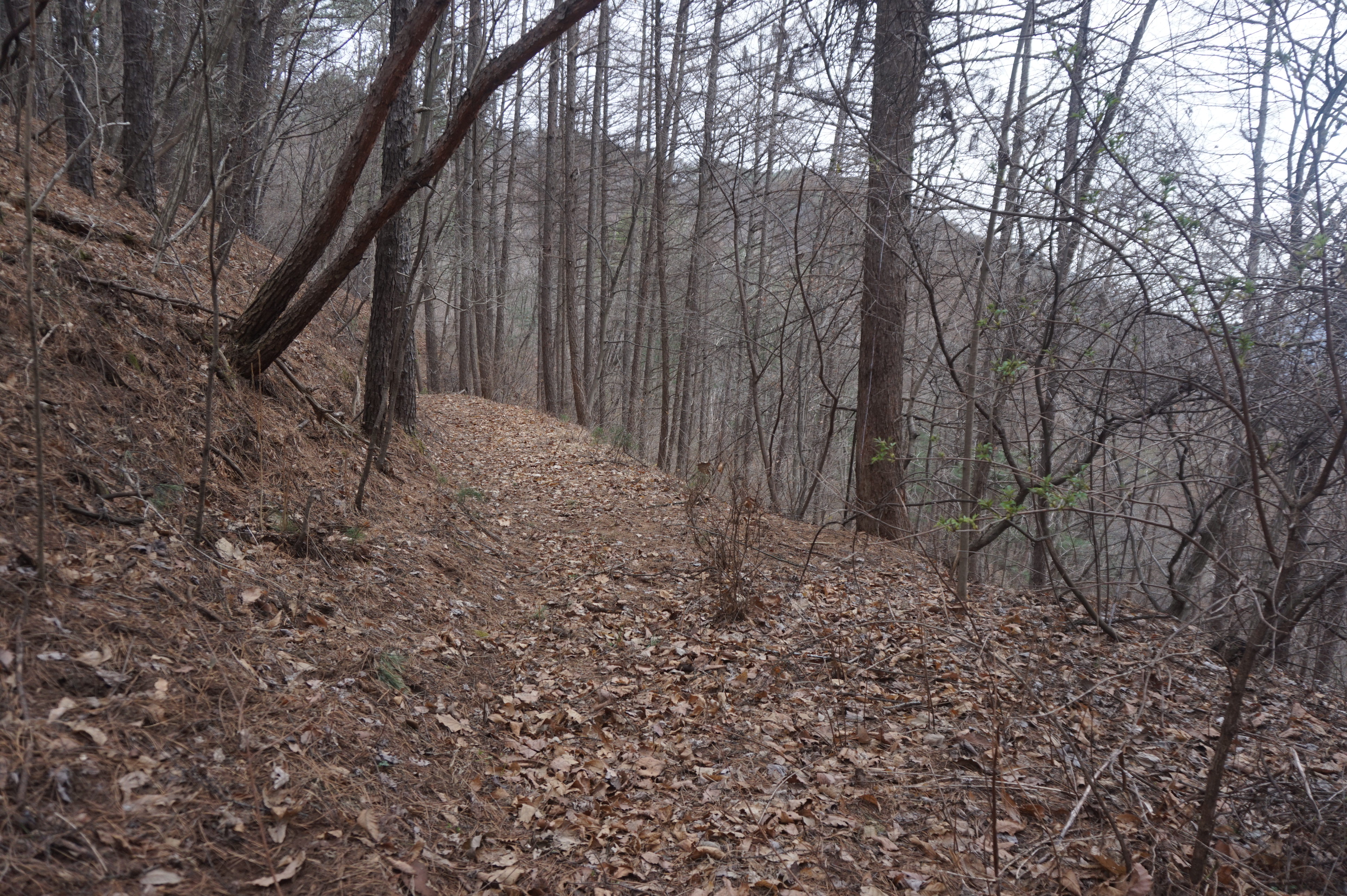 치고 오르는데 등로는 보이지 않고 오르막길 솔갈비가