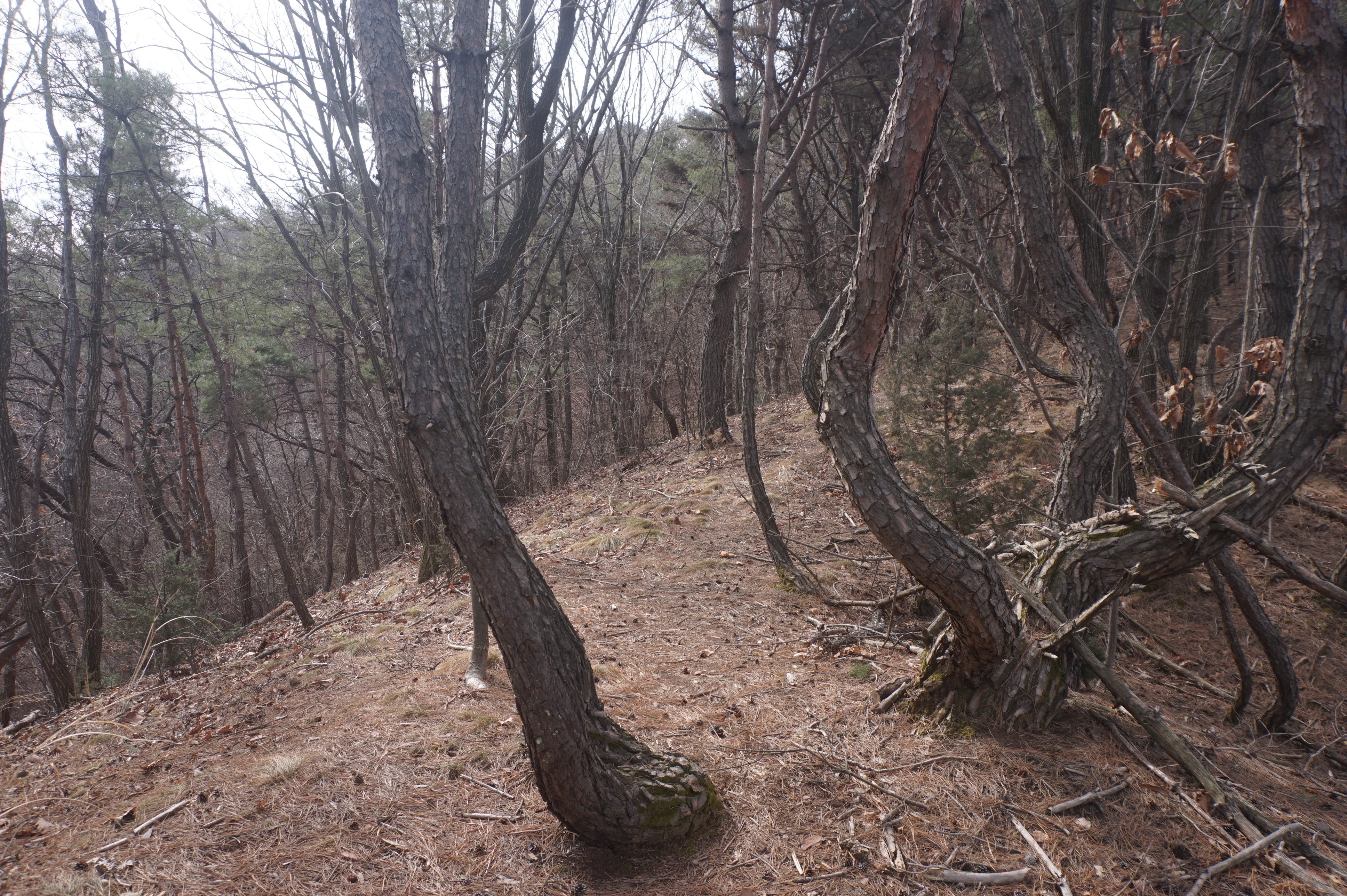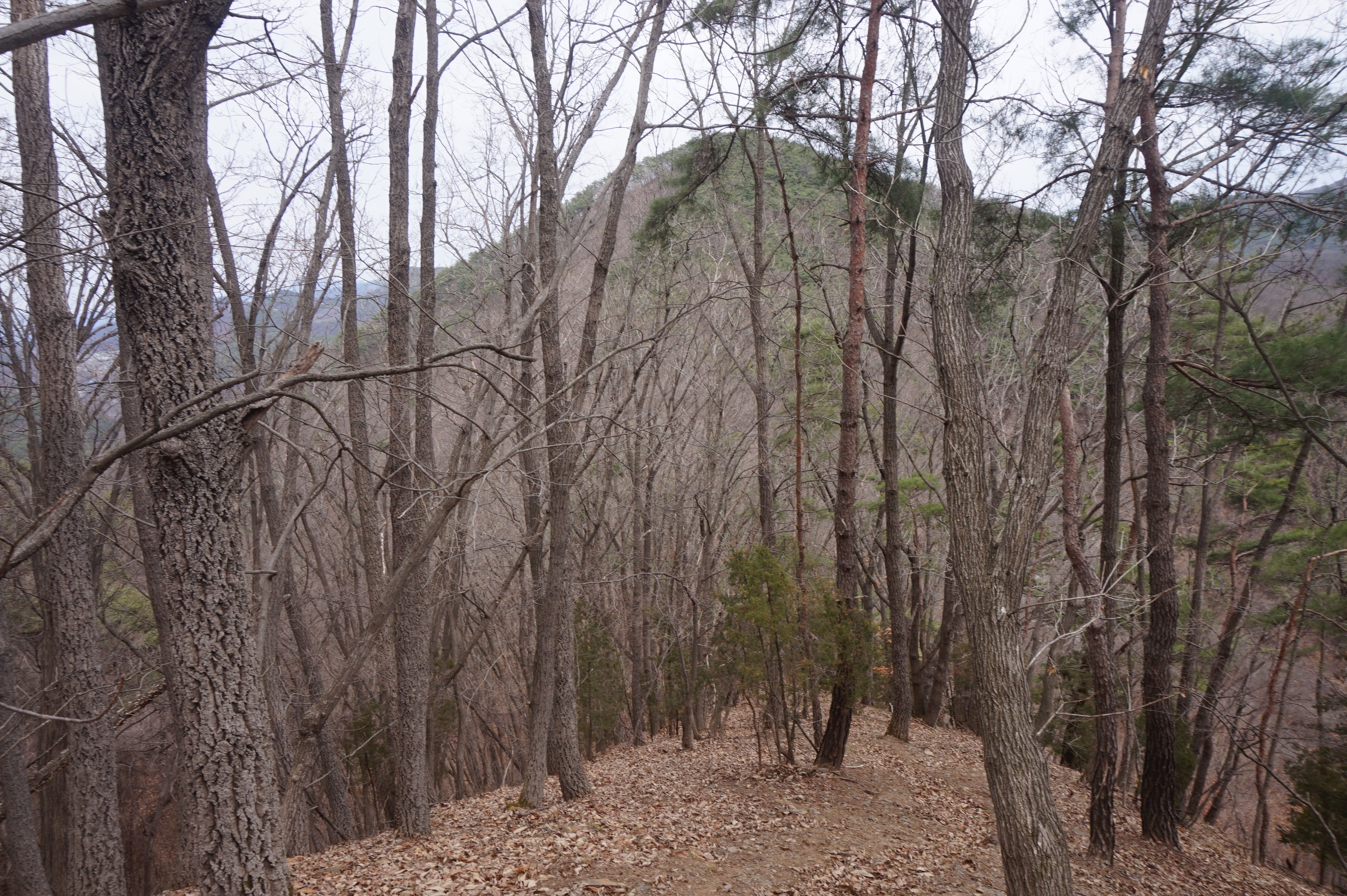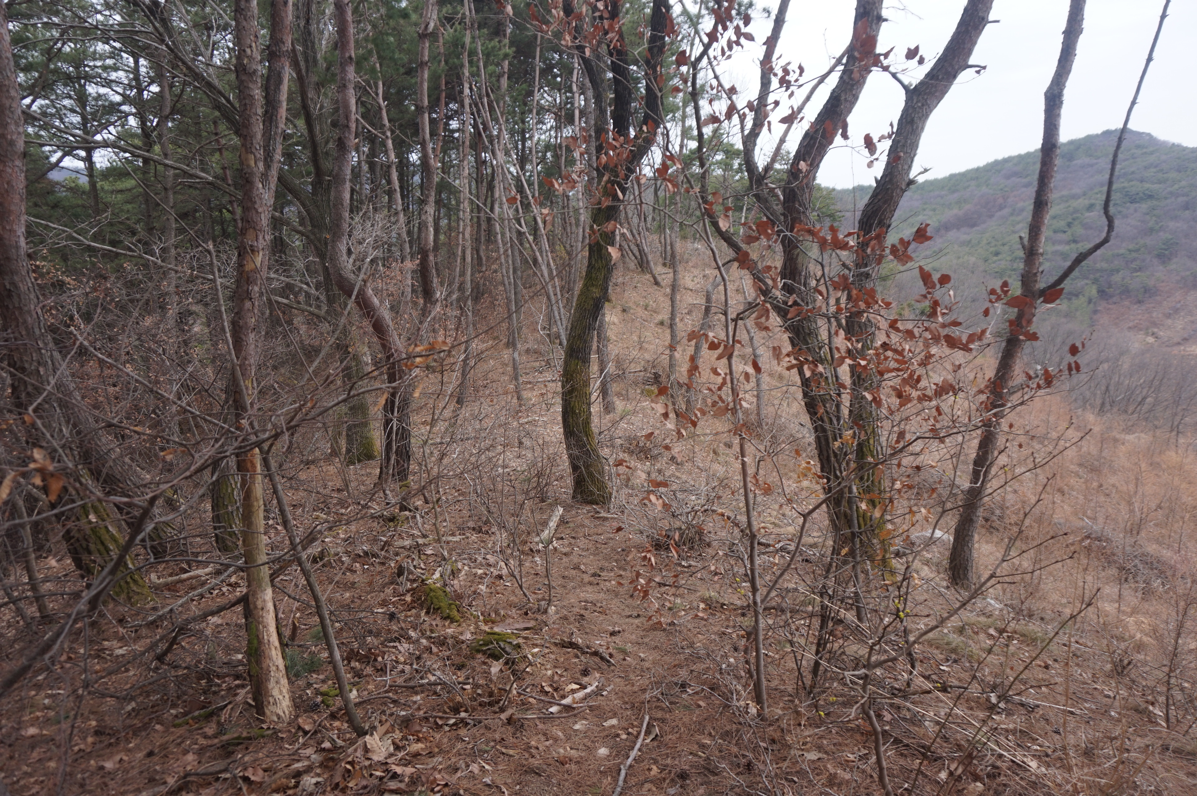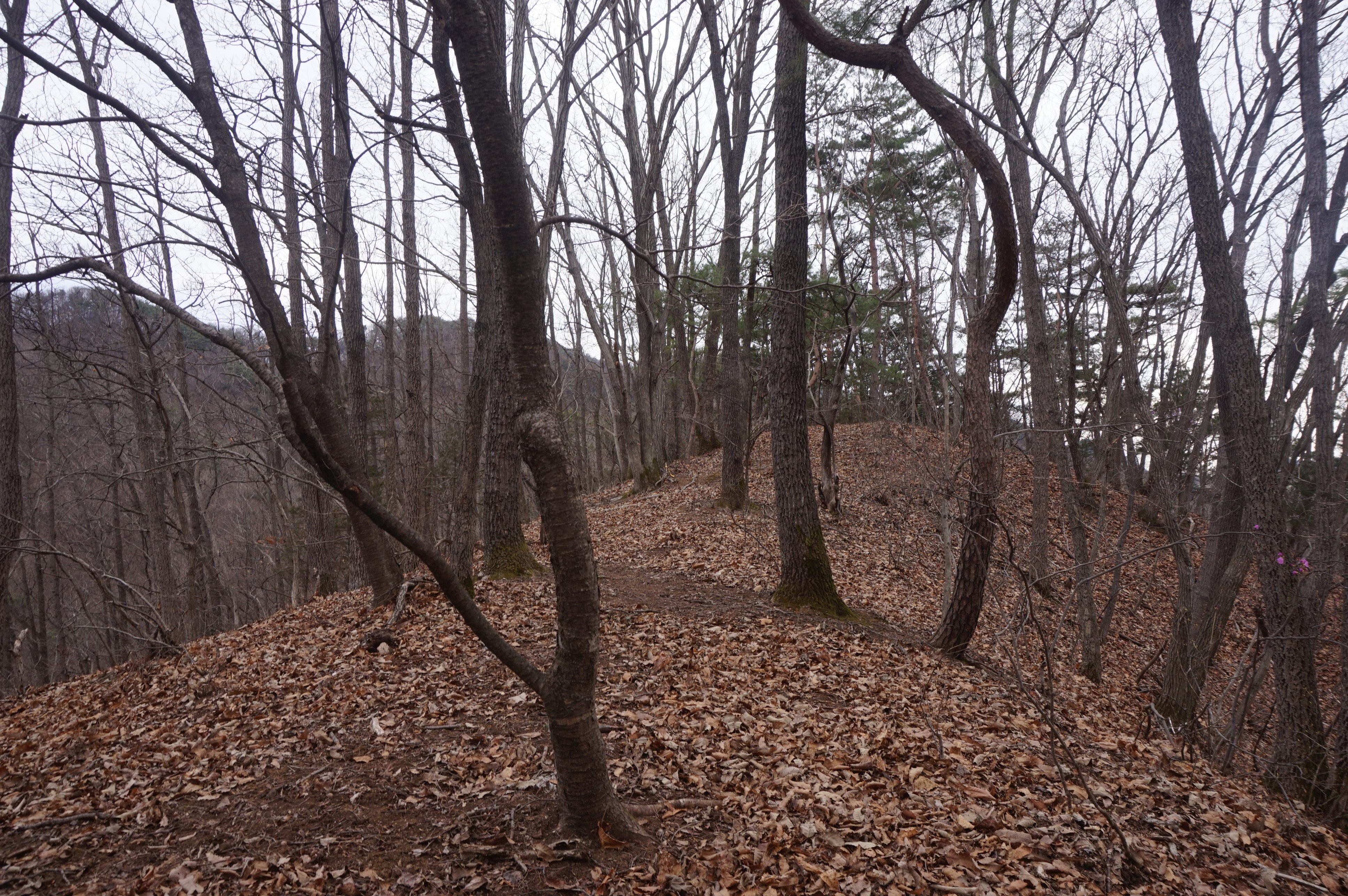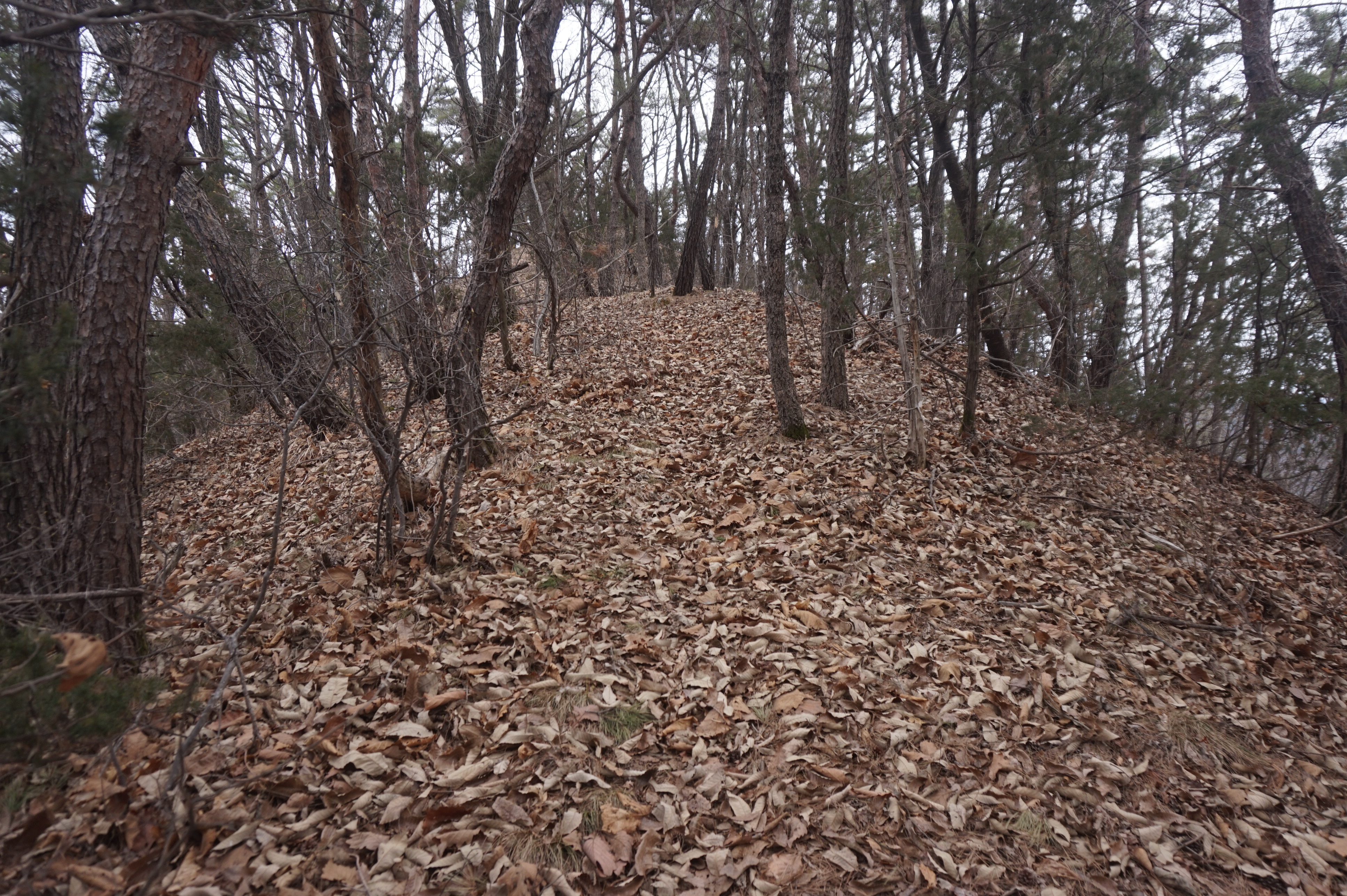 치고 오르는데 등로는 보이지 않고 오르막길 솔갈비가