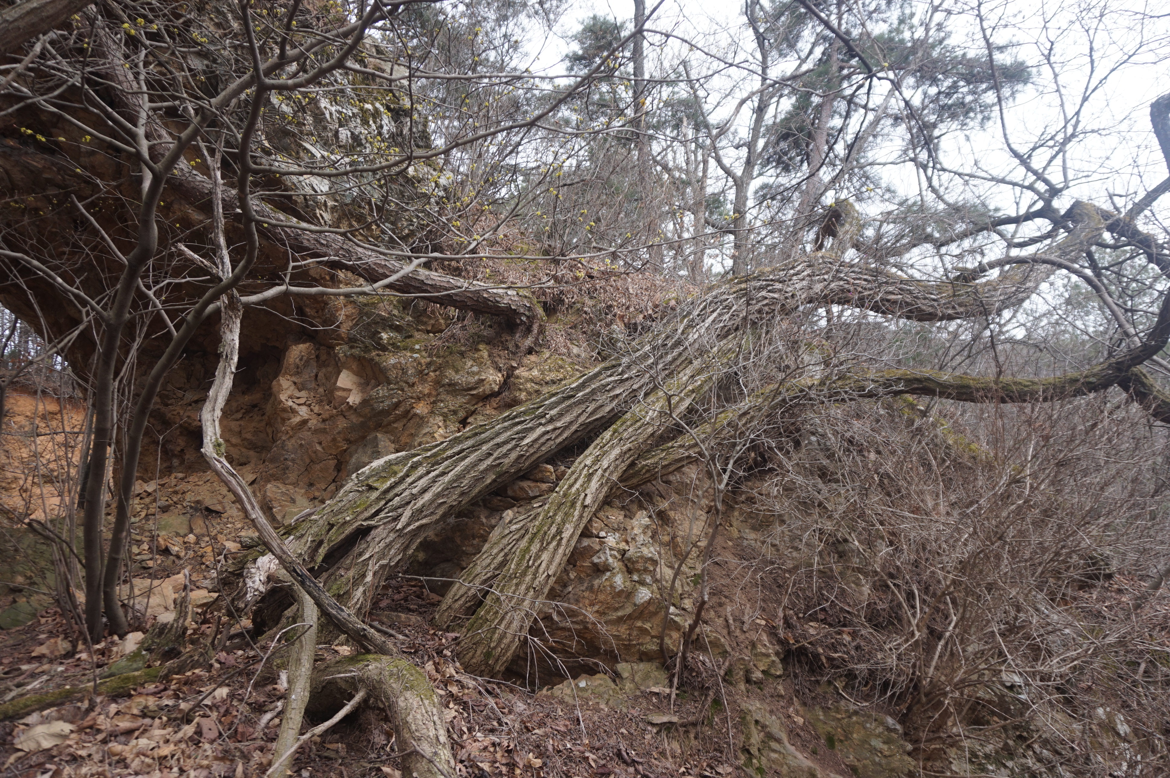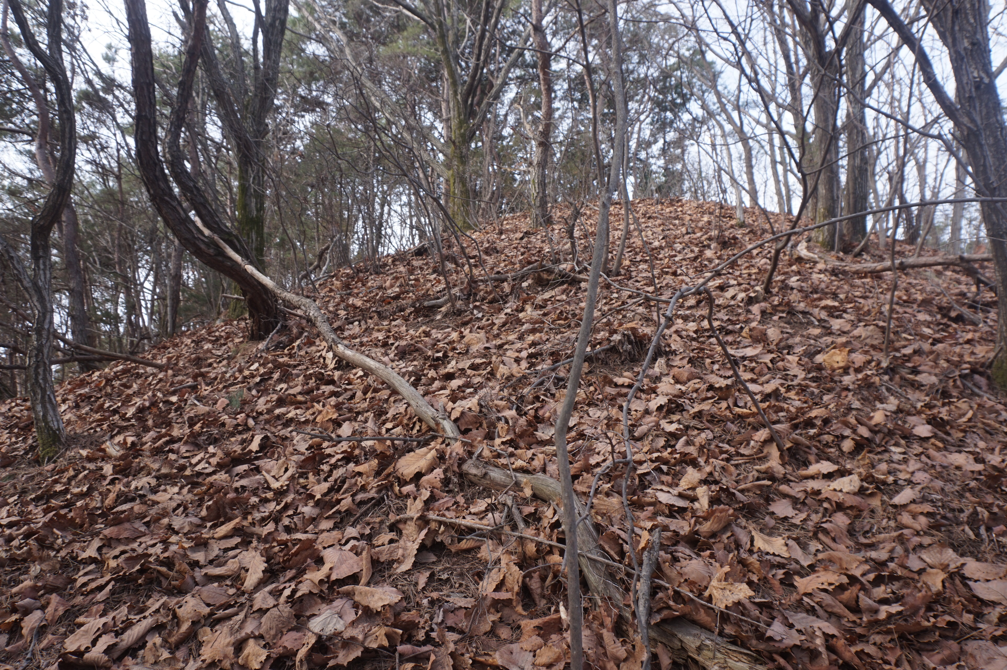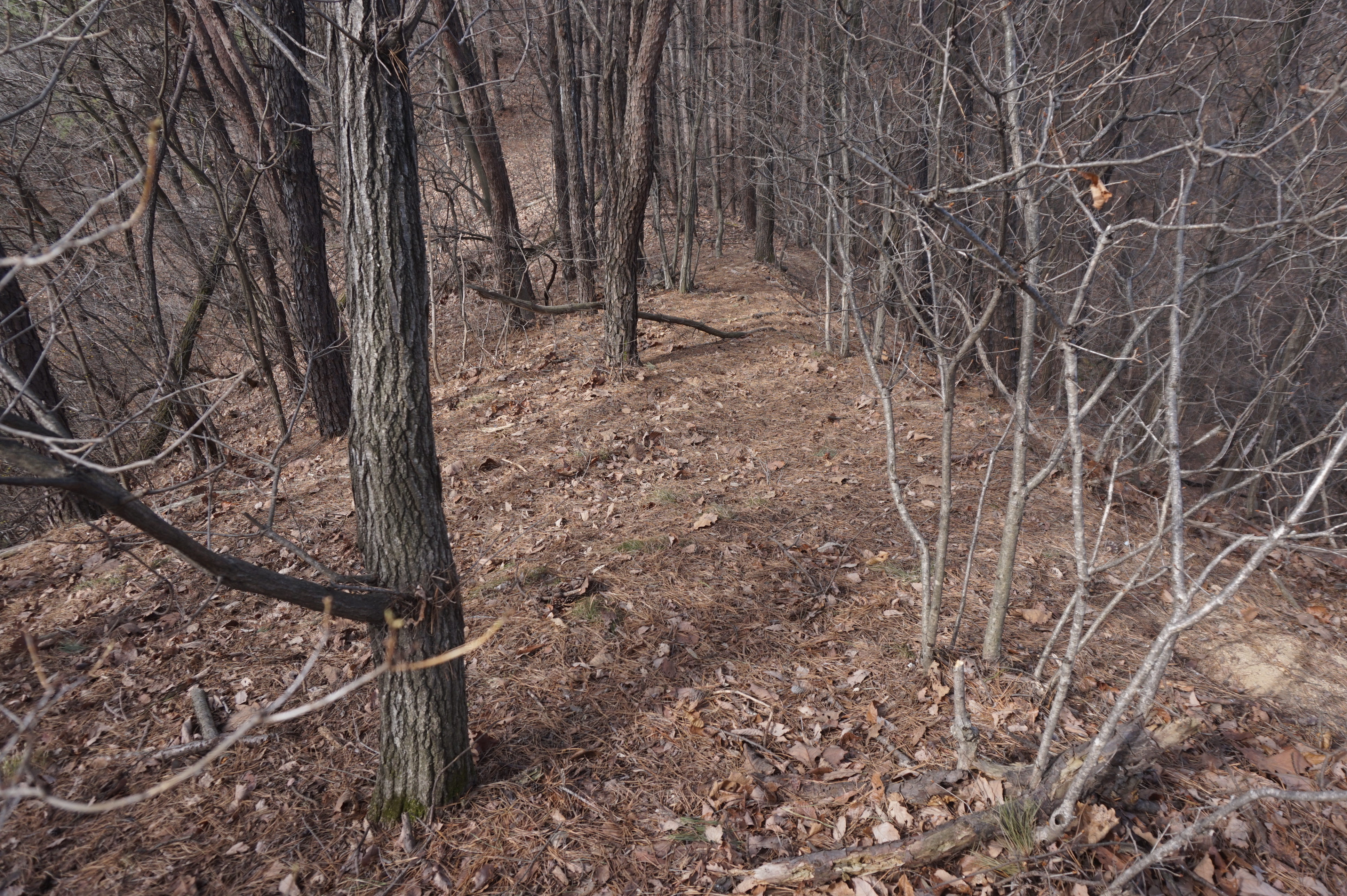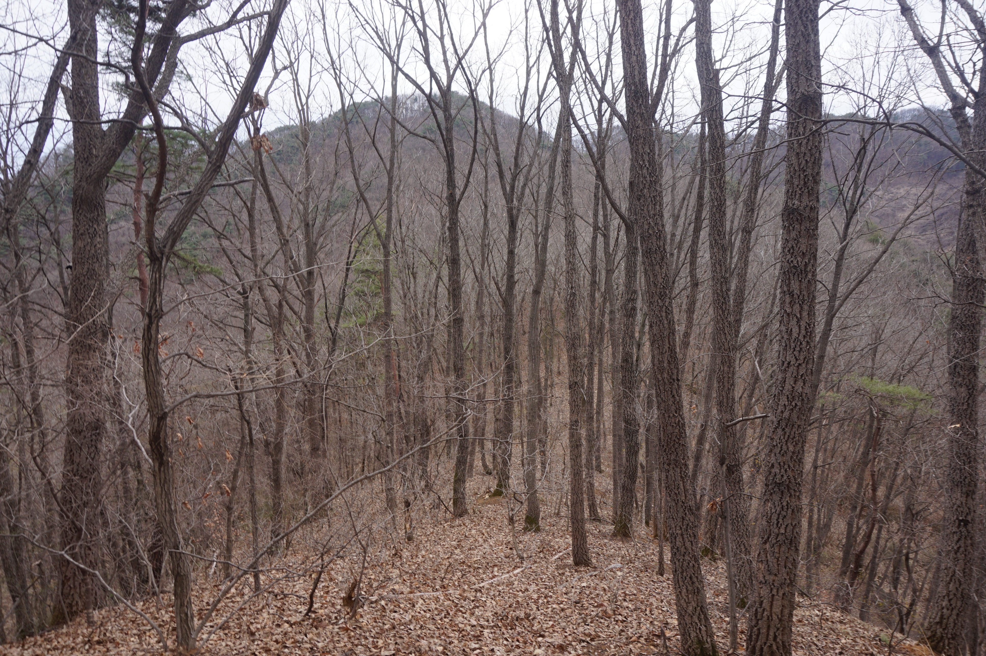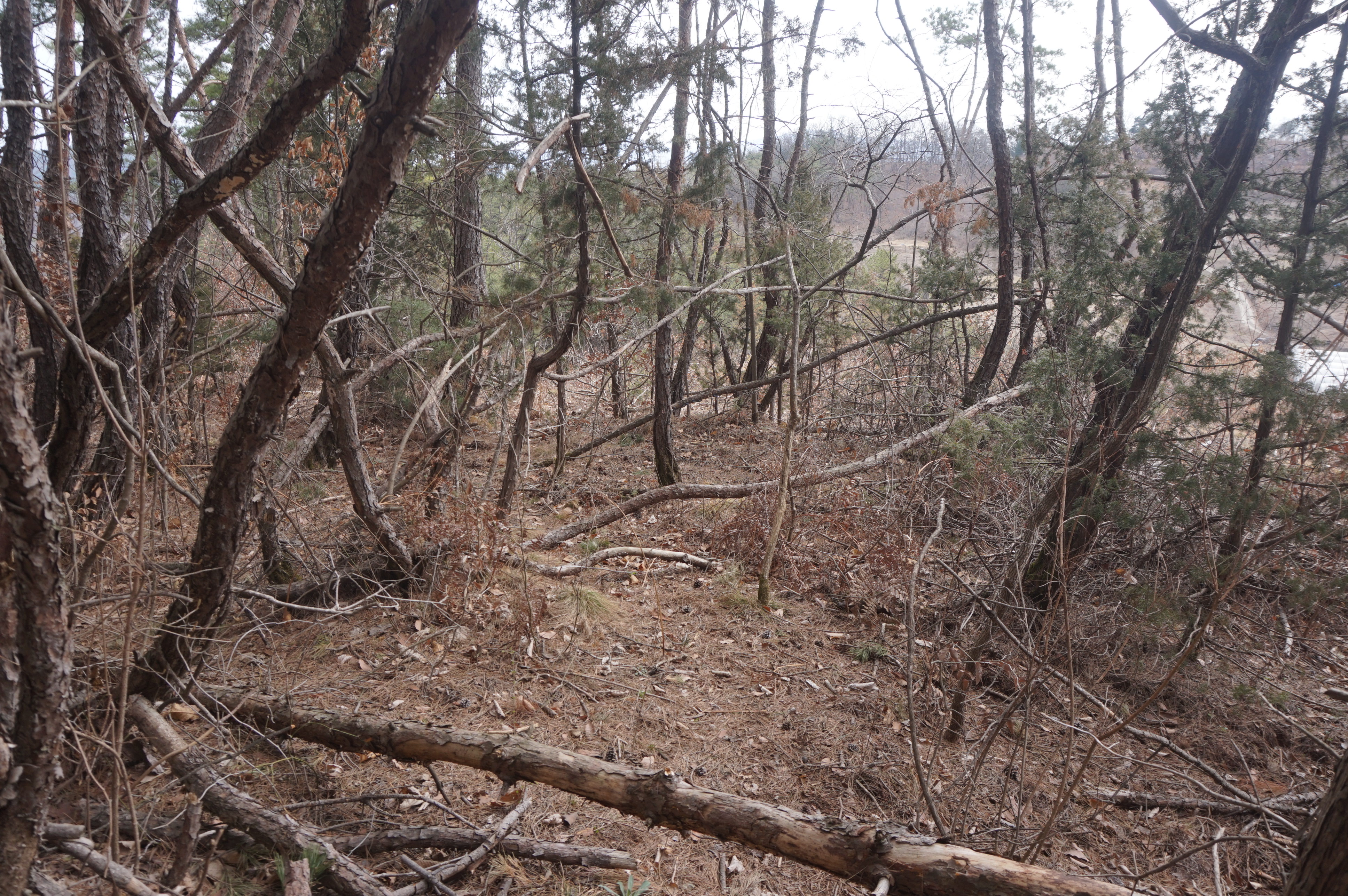 치고 오르는데 등로는 보이지 않고 오르막길 솔갈비가