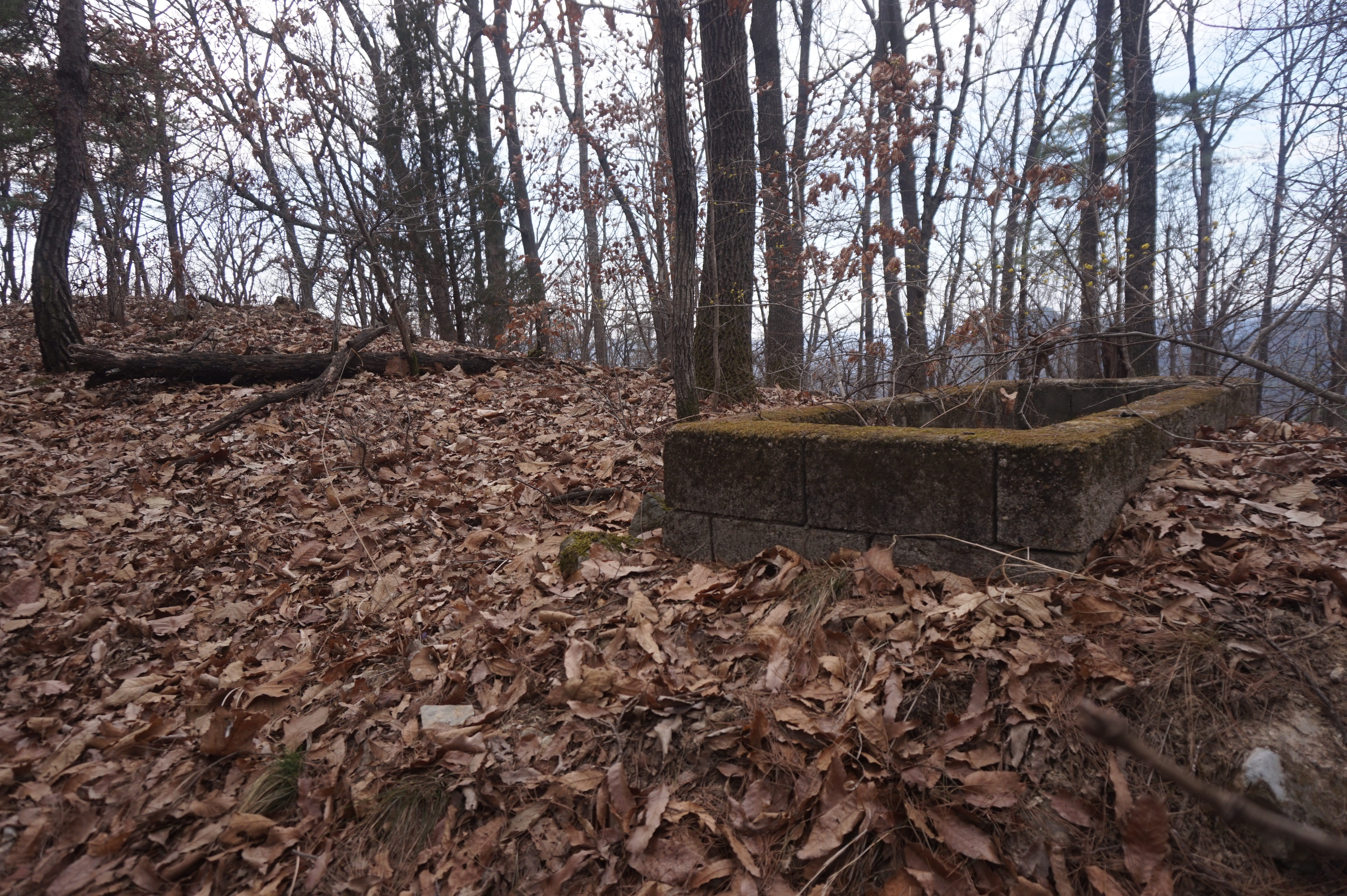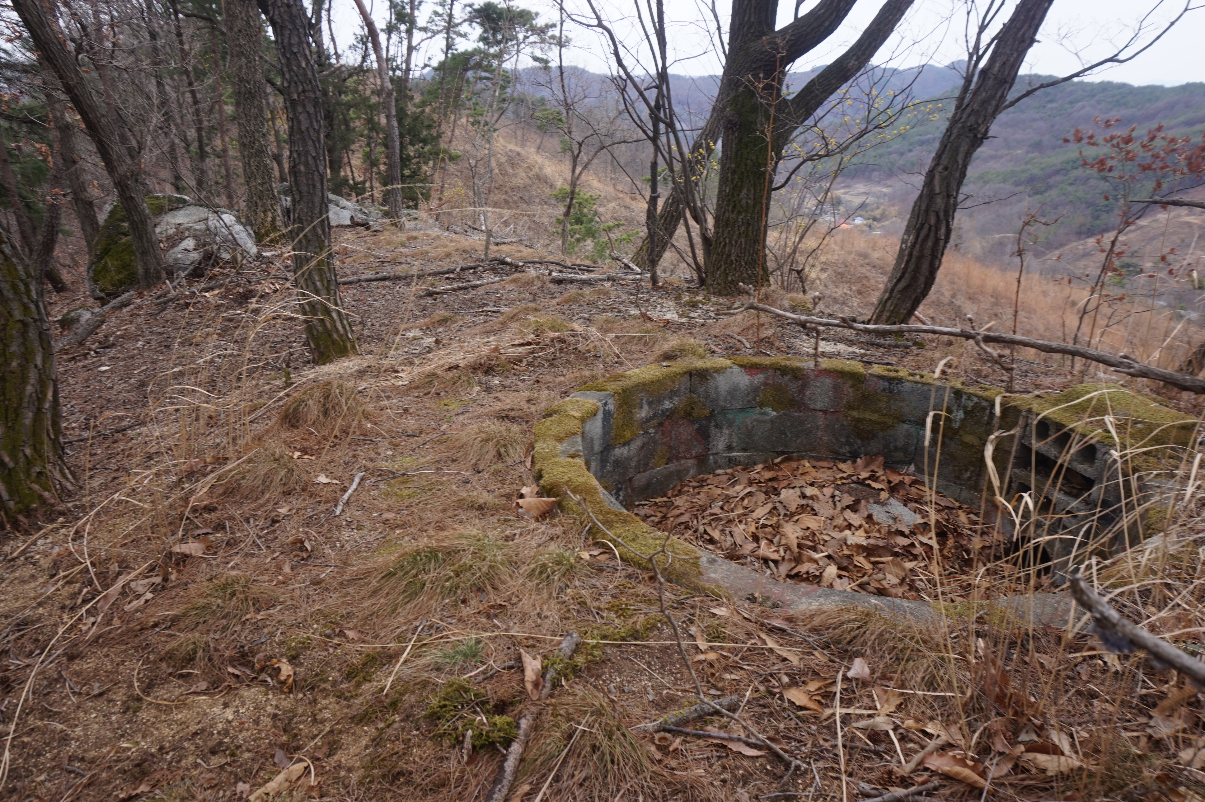 젖먹던 힘까지 짜내어 정상으로 올라서니 이끼가 덮인 군벙커와