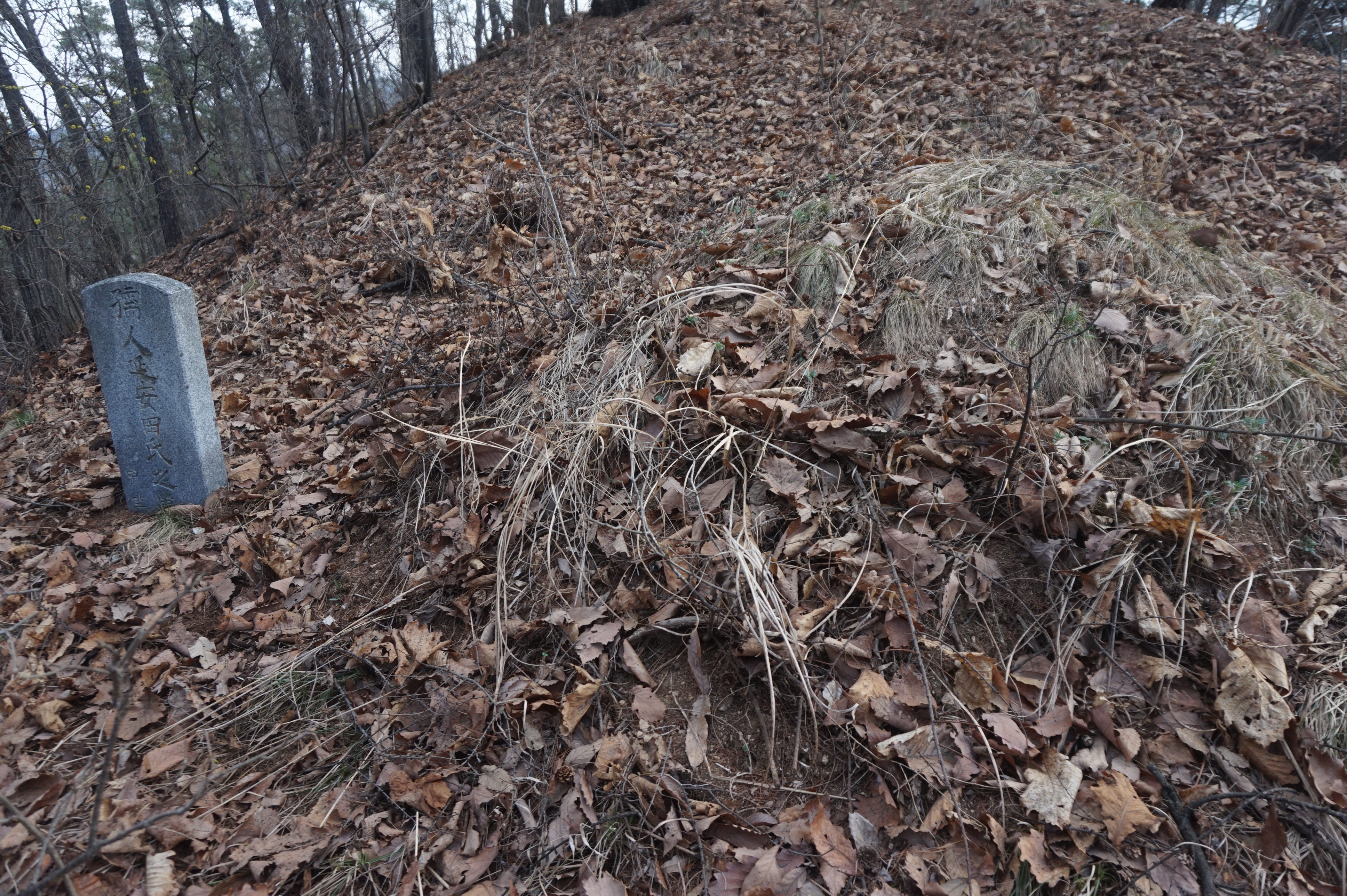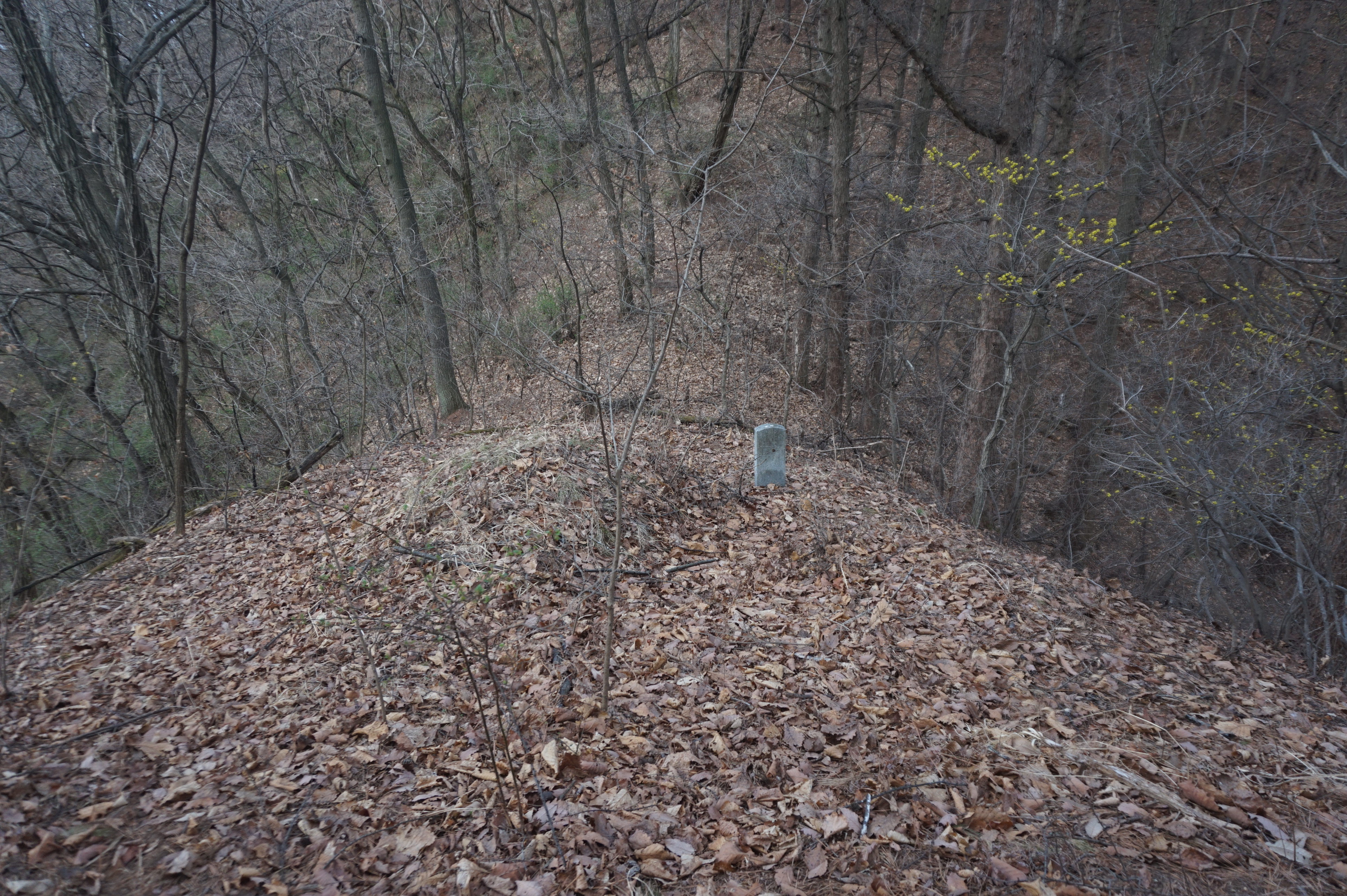 무명봉에서 안부로 내려서니 안부 직전에 묘지 1기가 보인다