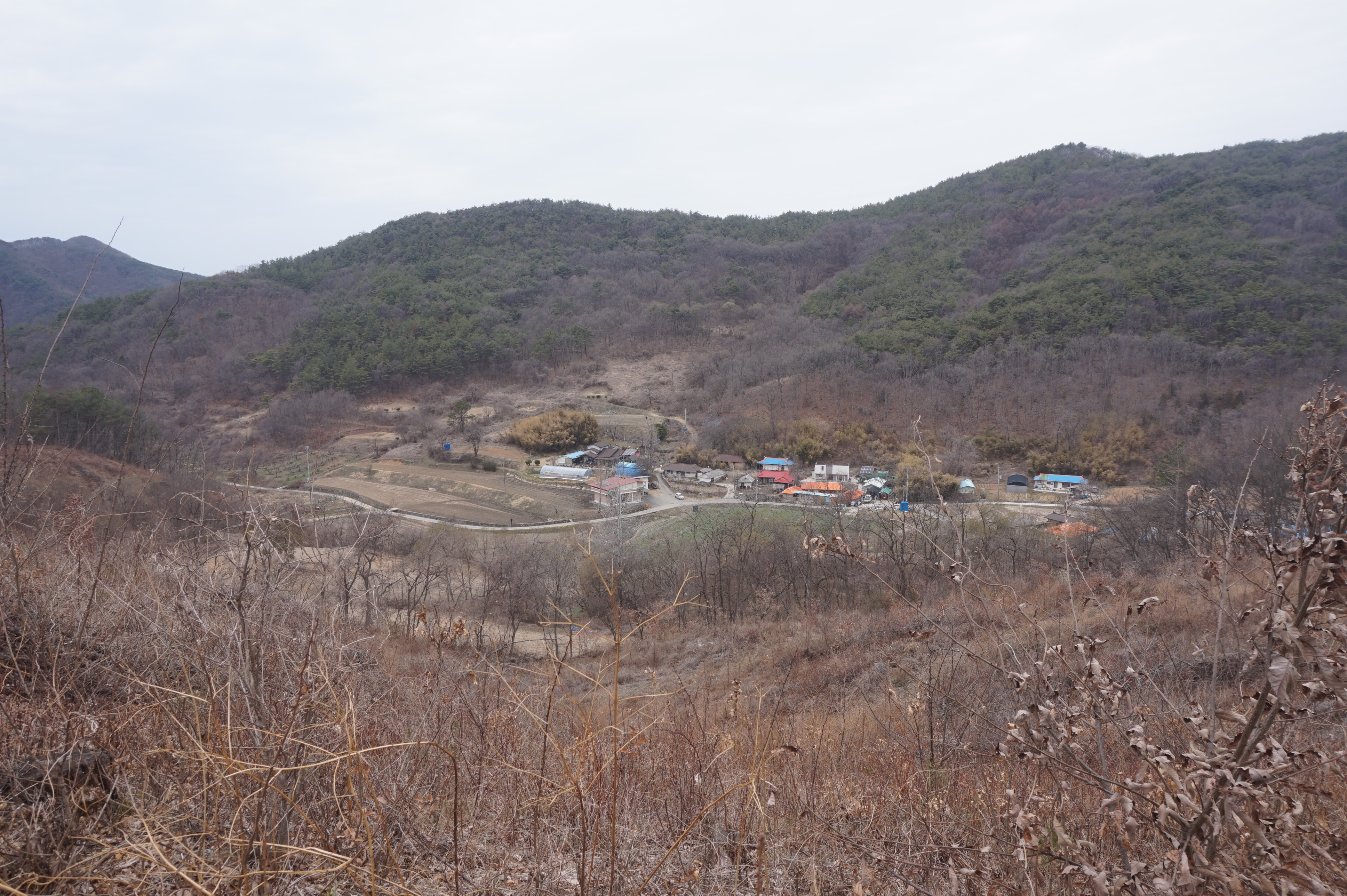 당재에서 바라본 옥천군 동이면 우산리 방향의 모습