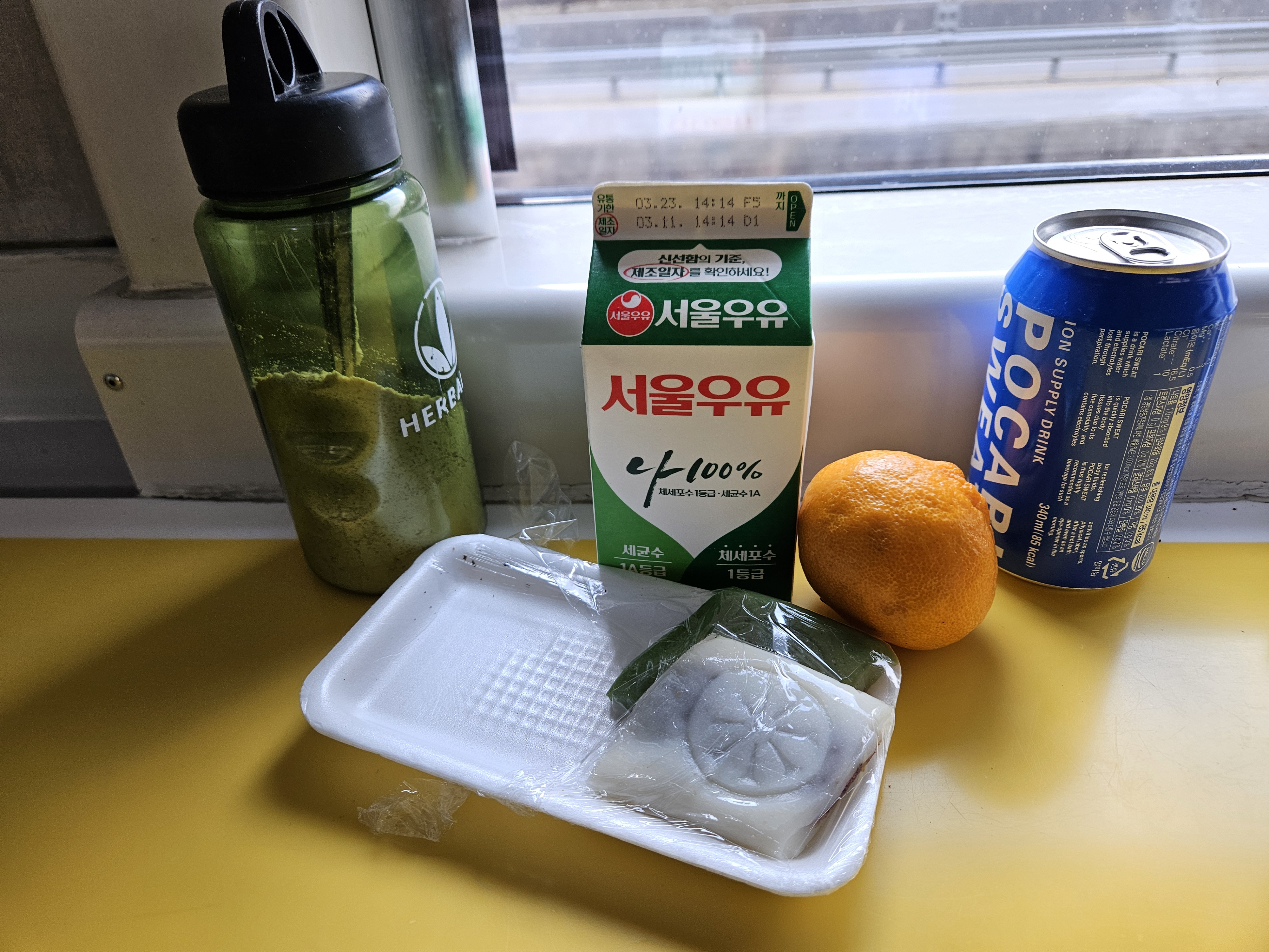 대전역에서 무궁화 열차로 갈아탄 다음에 아침에 산 햄버거로