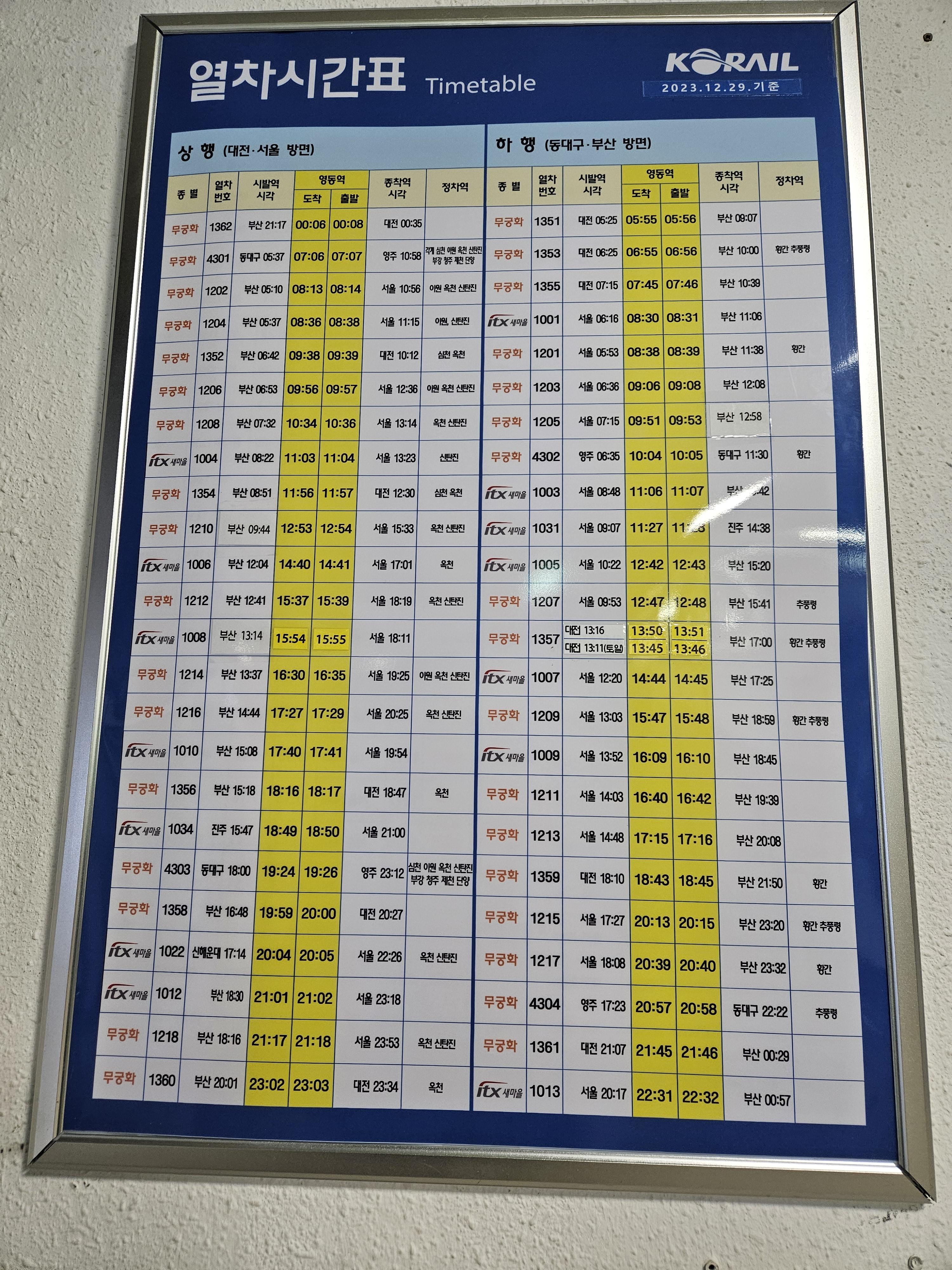 영동역 열차 시간표