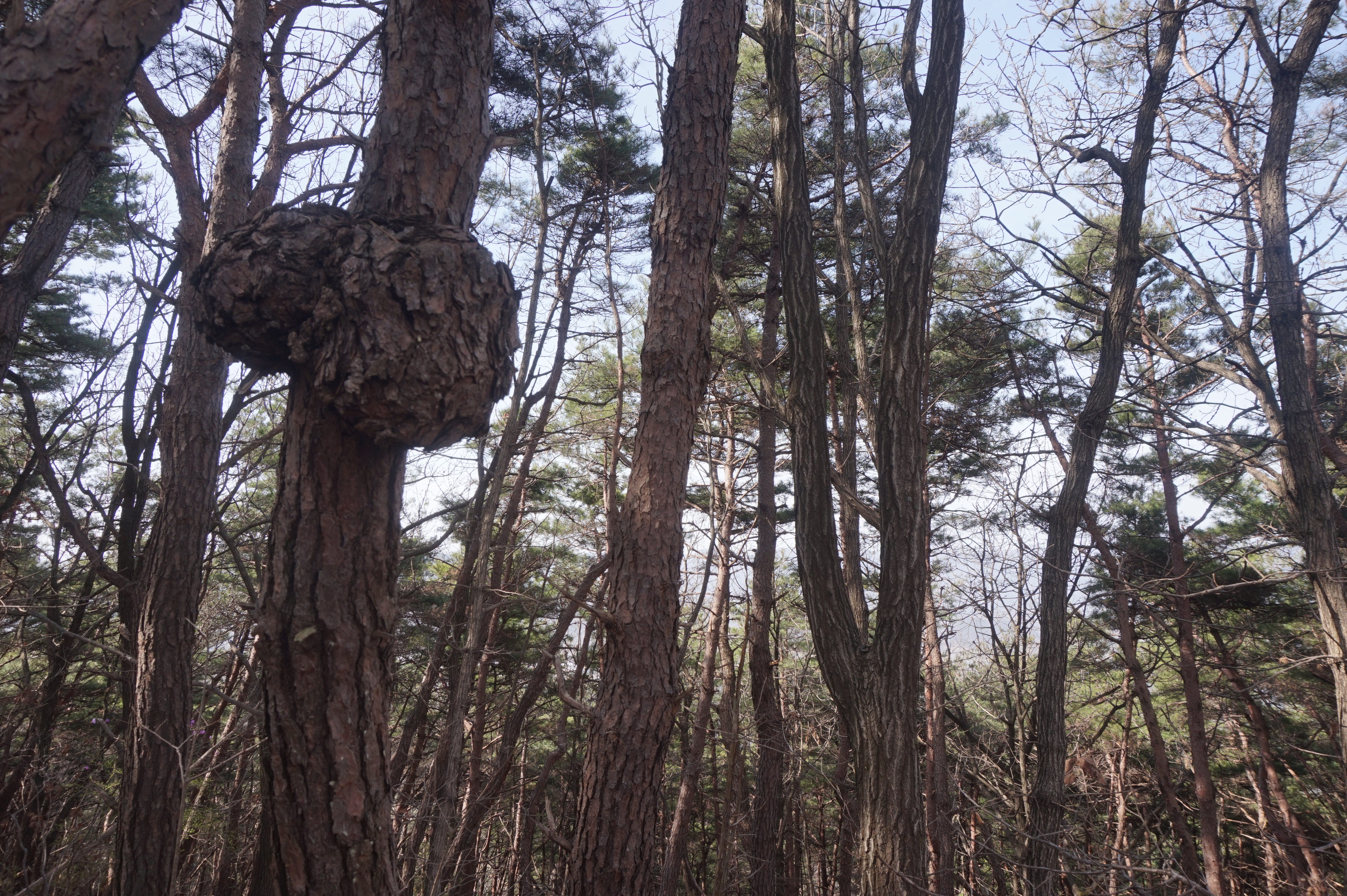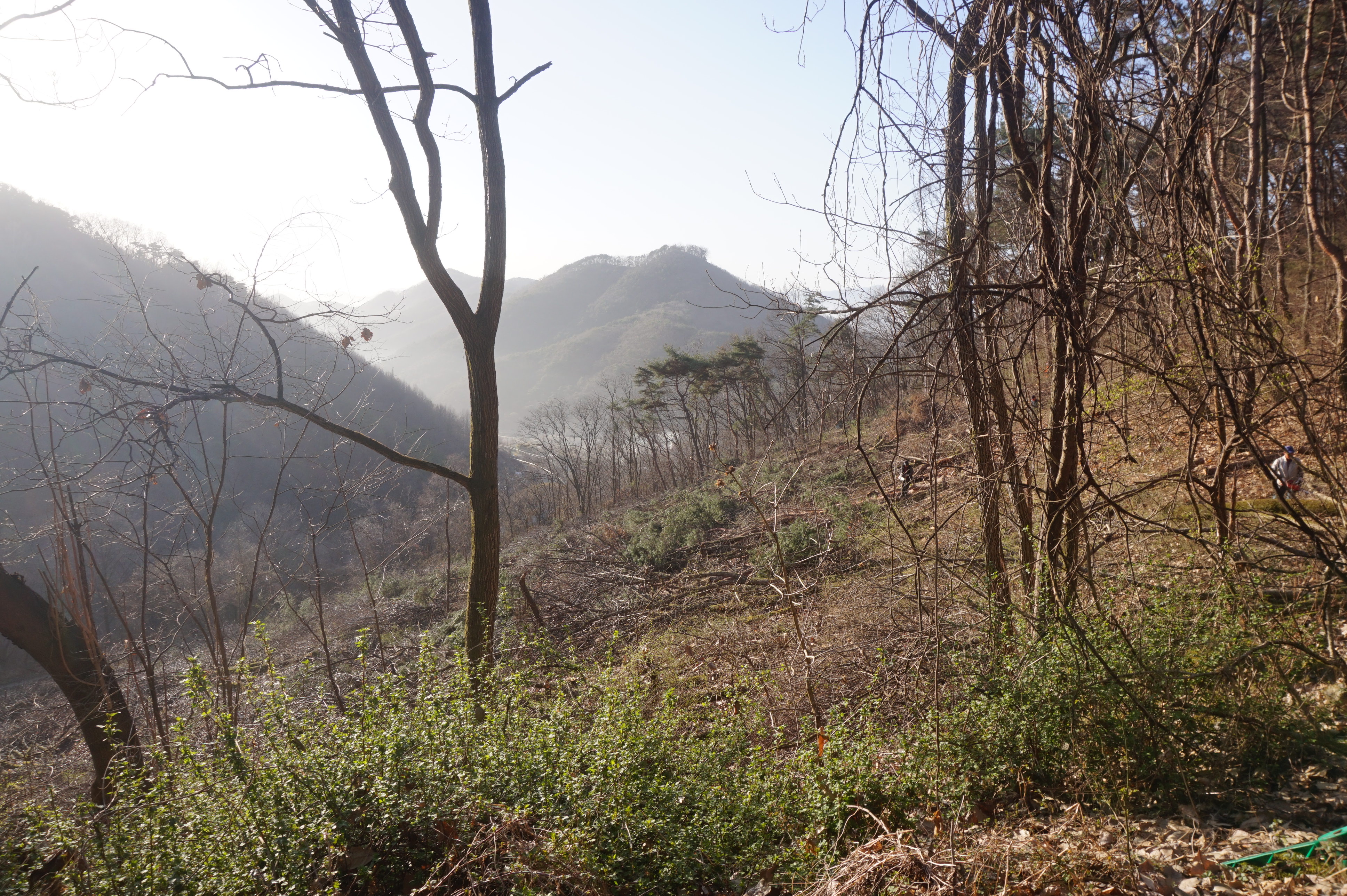 이른 아침부터 간벌을 하는 벌목꾼들의 전기톱의 기계음이 요란하다