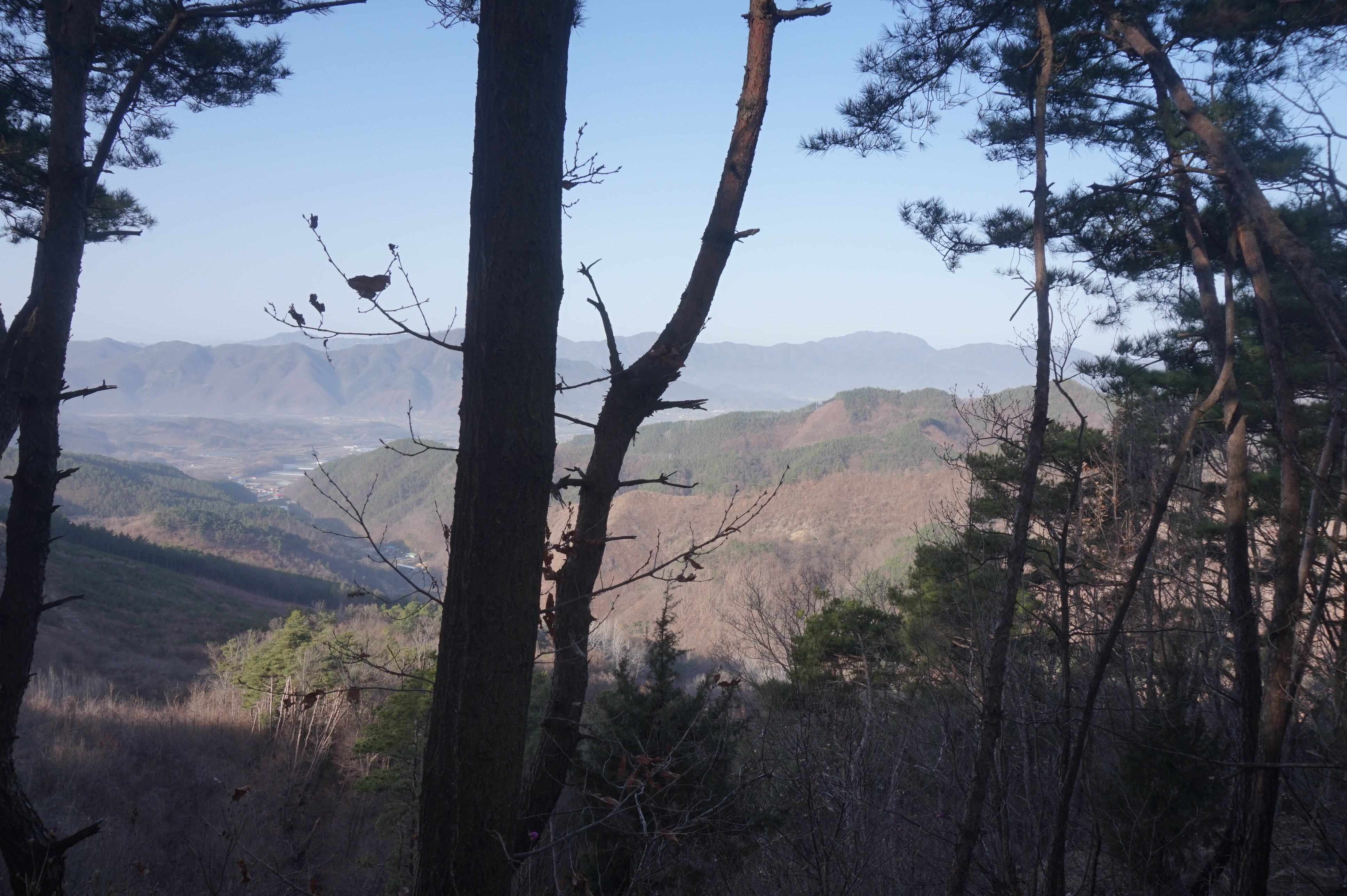 벌목지 아래로 보이는 영동군 심천면 길현리의 당재마을은