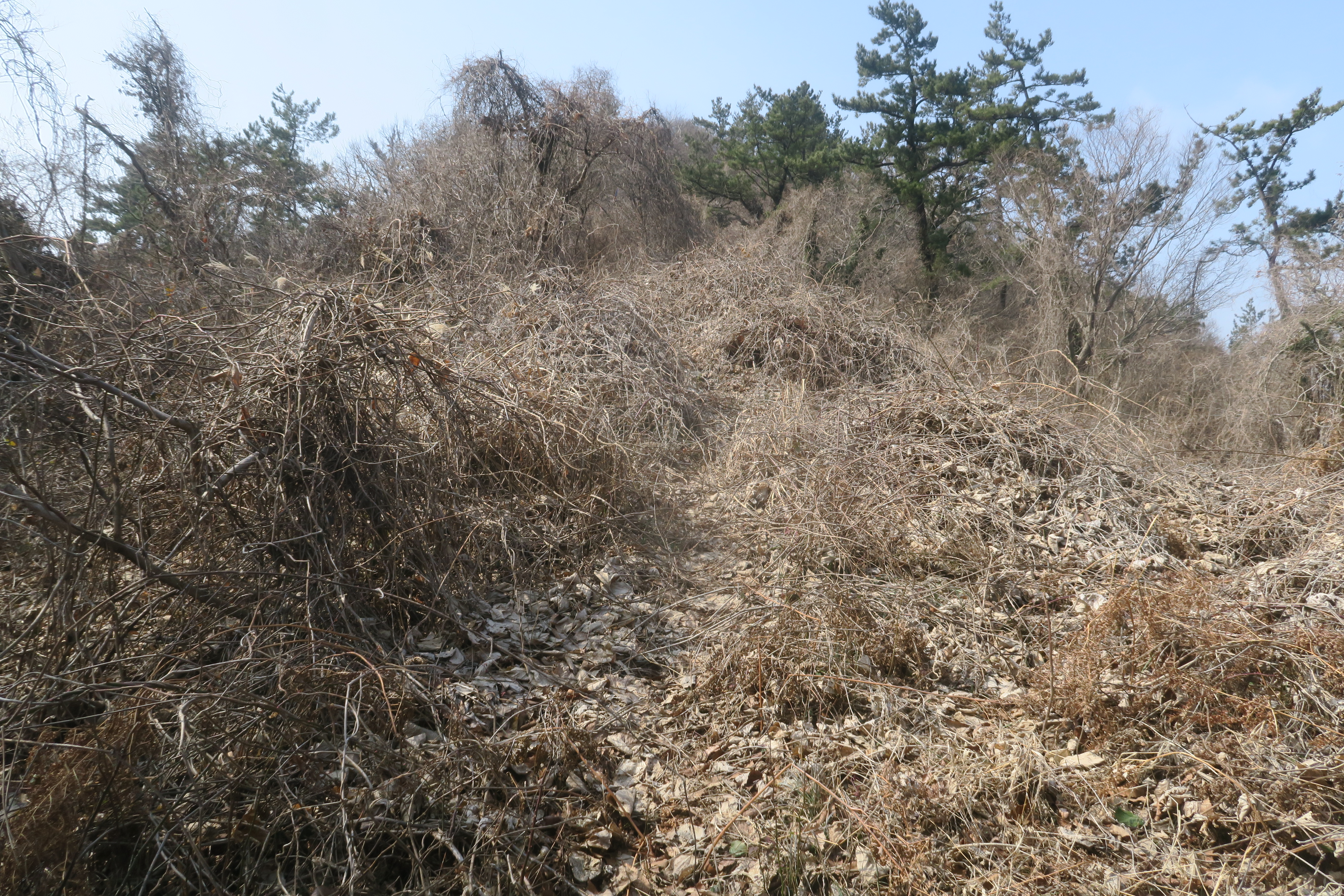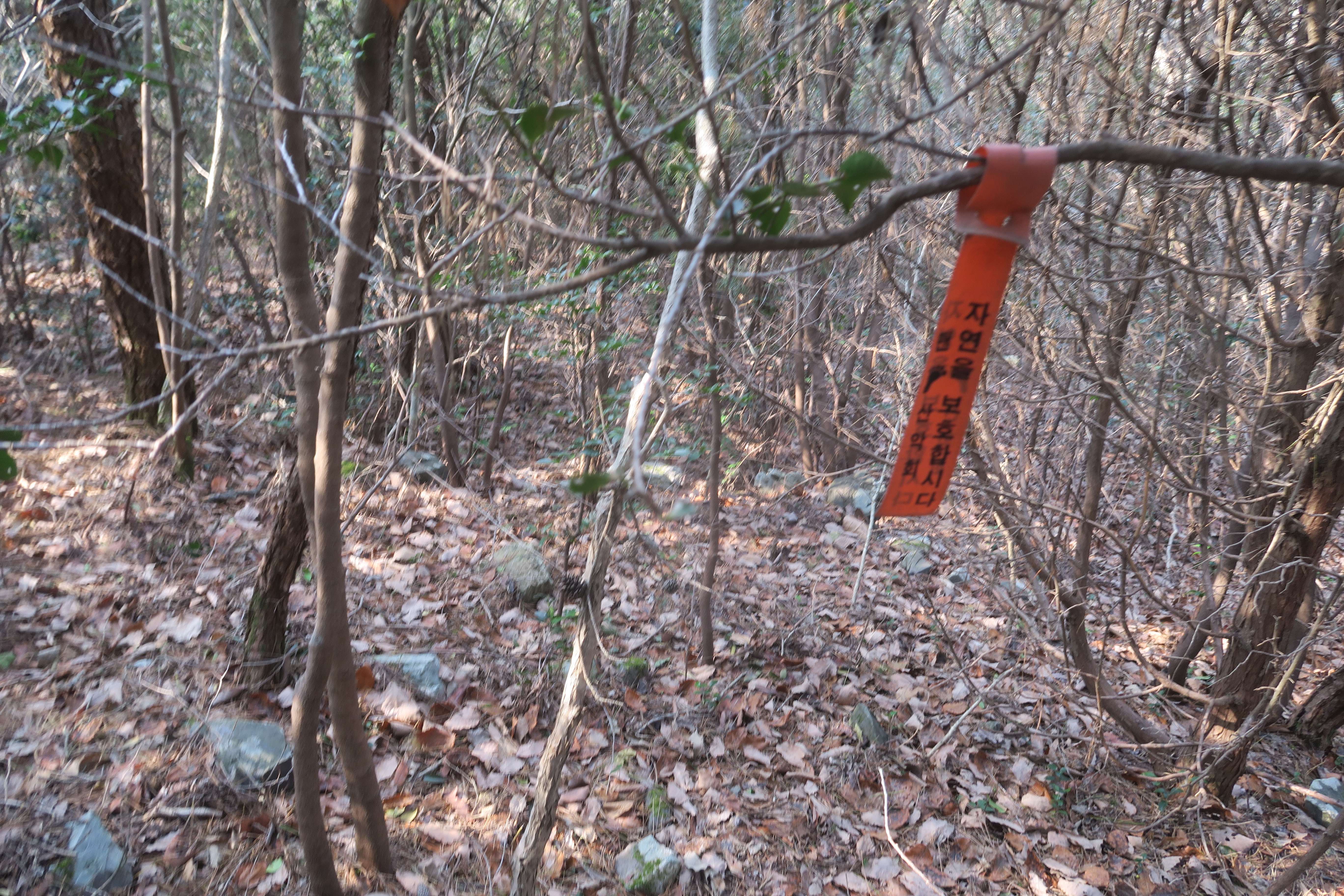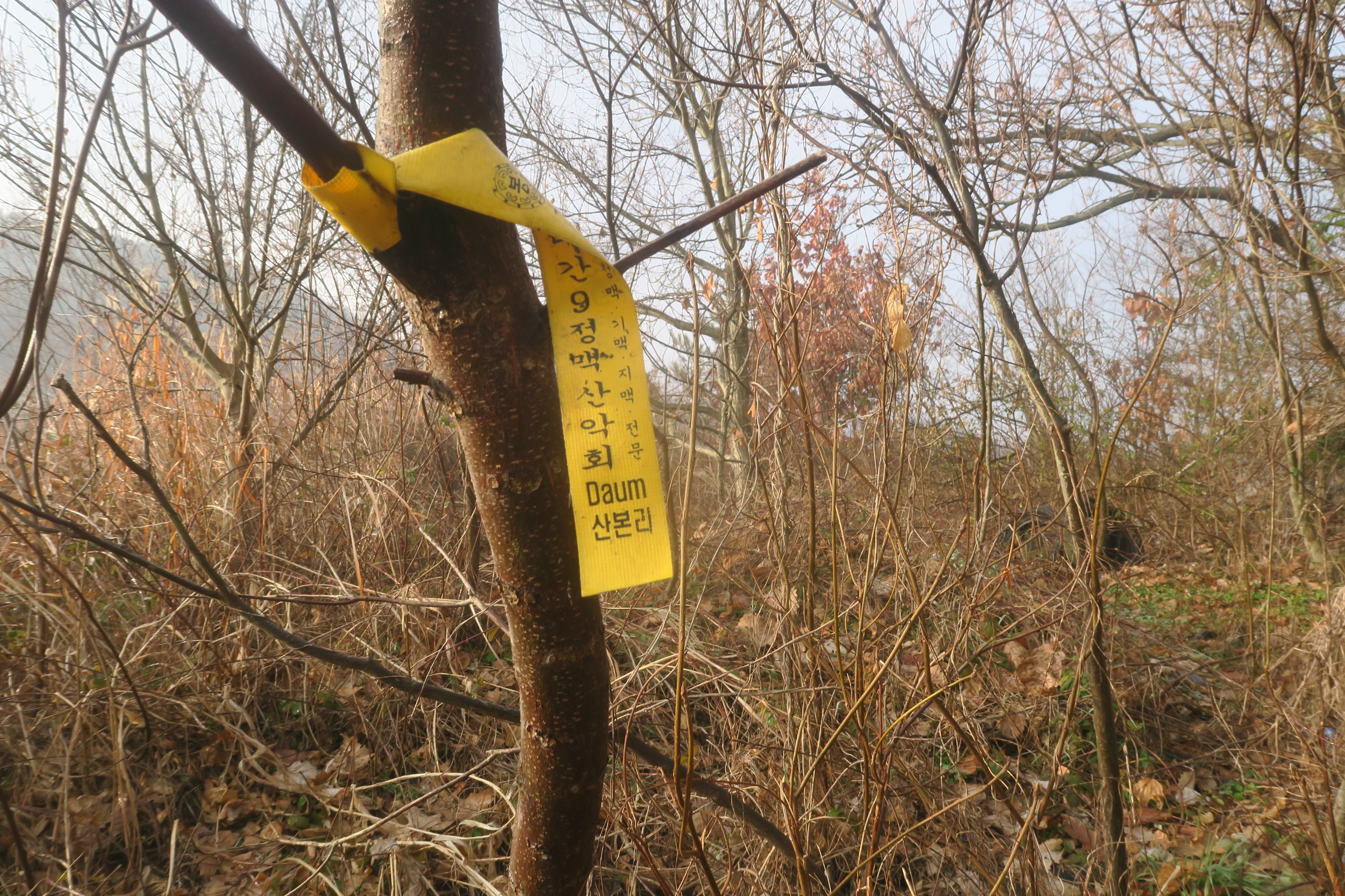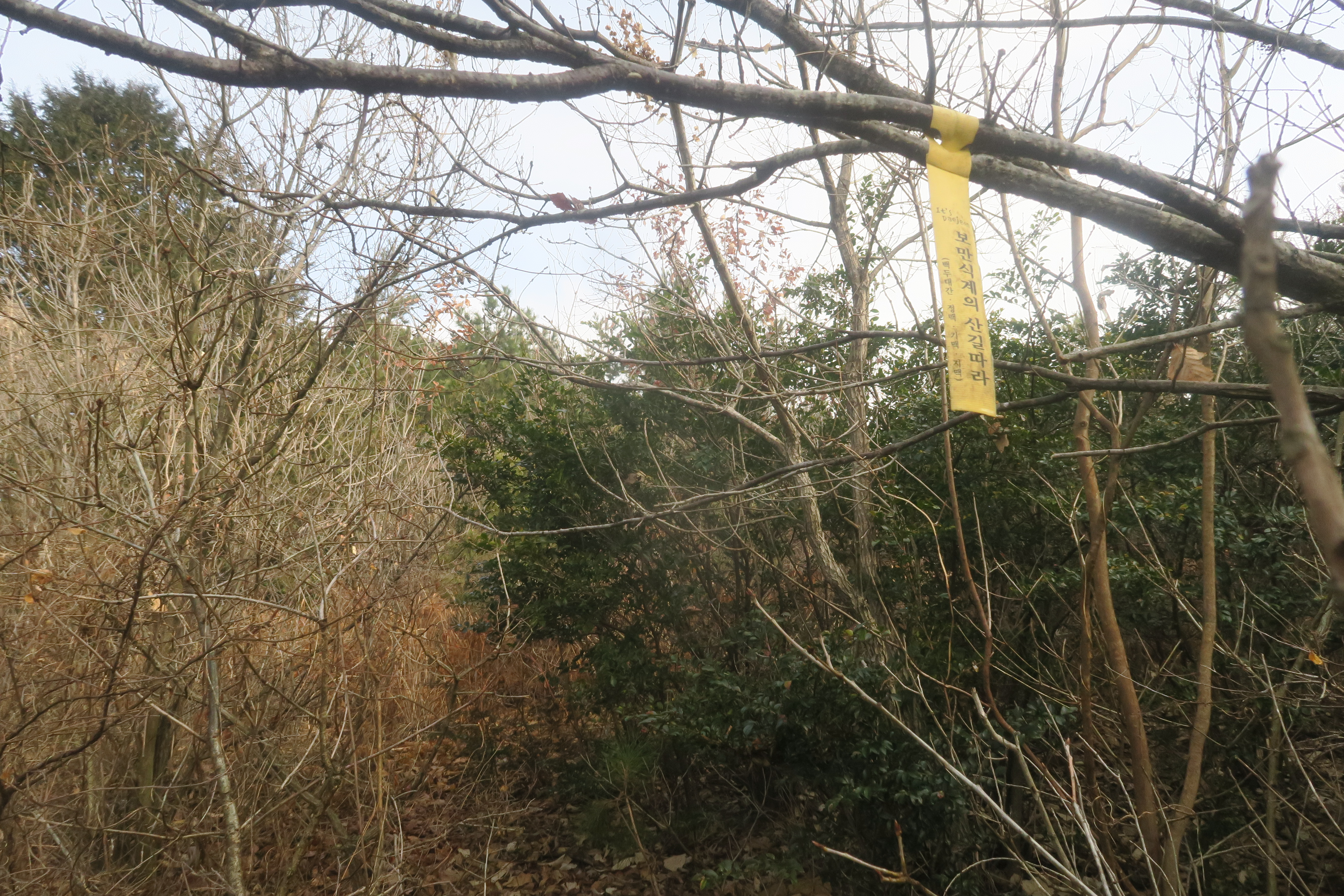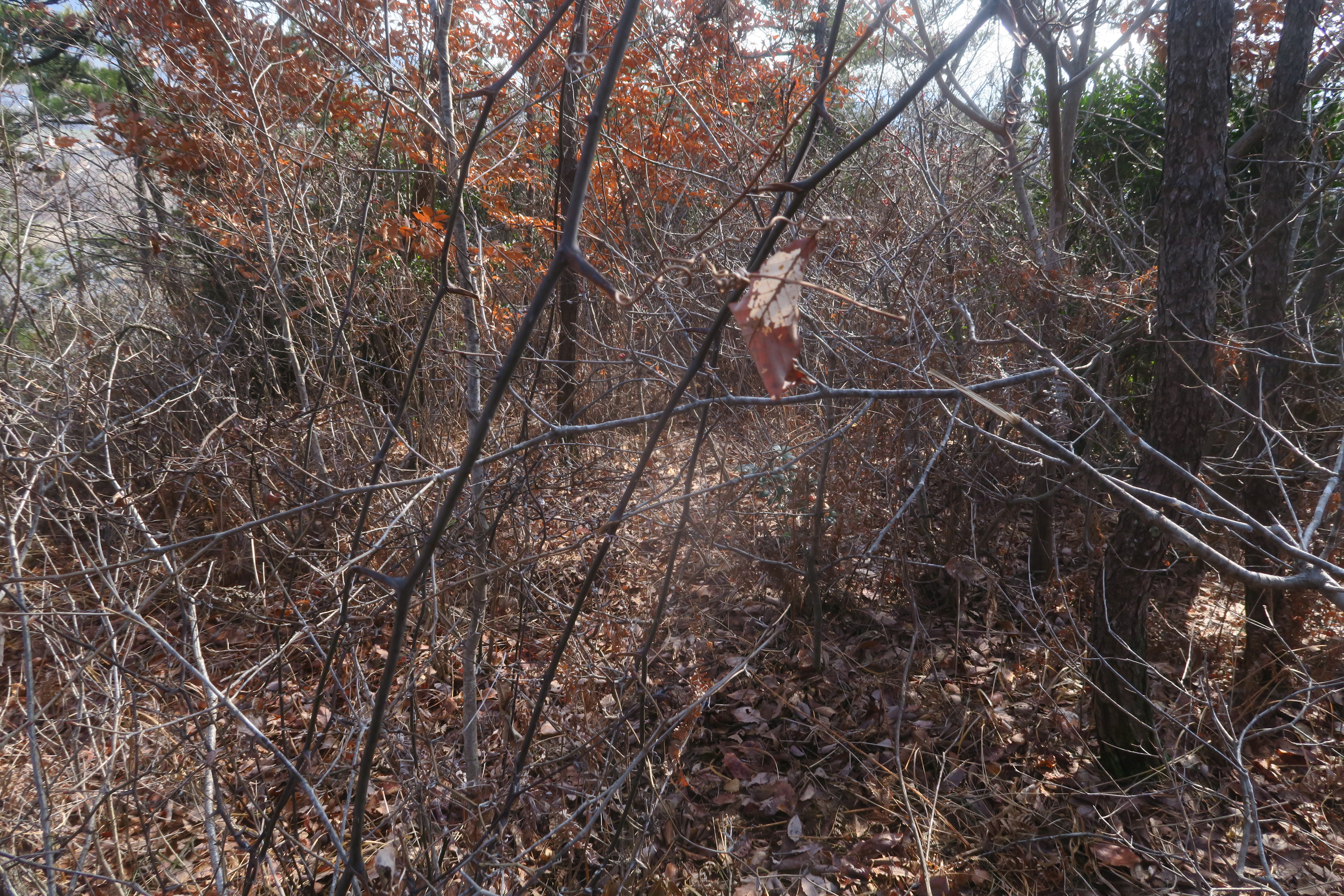 갑자기 등로가 사라지고 잡목의 강한 저항이 시작된다.